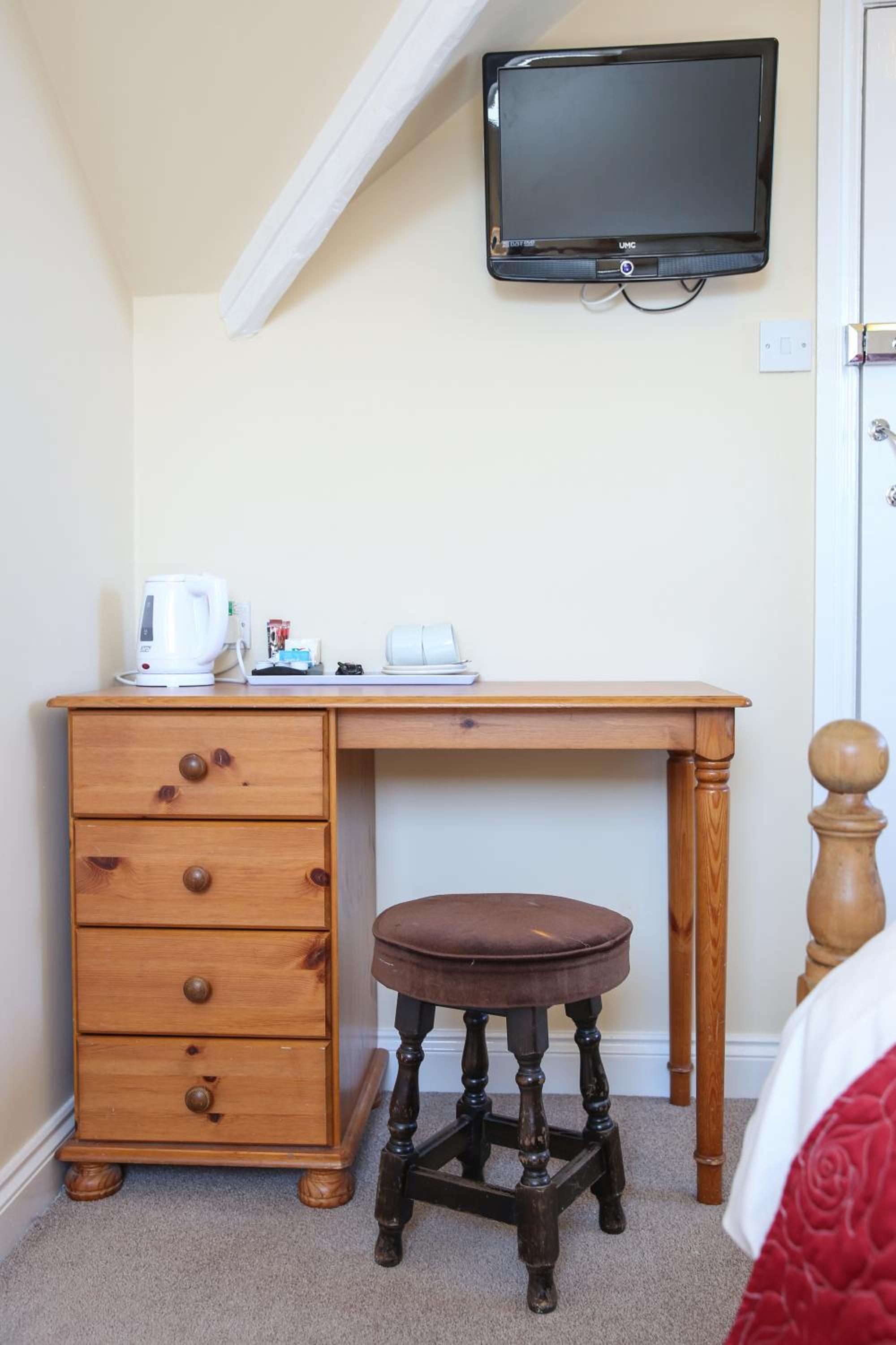 Comfortable Stay: Relax in en suite bedrooms with modern amenities, including a TV, hospitality tray, and wireless internet. Unwind in the charming wood-beamed bar area or the peaceful patio garden.