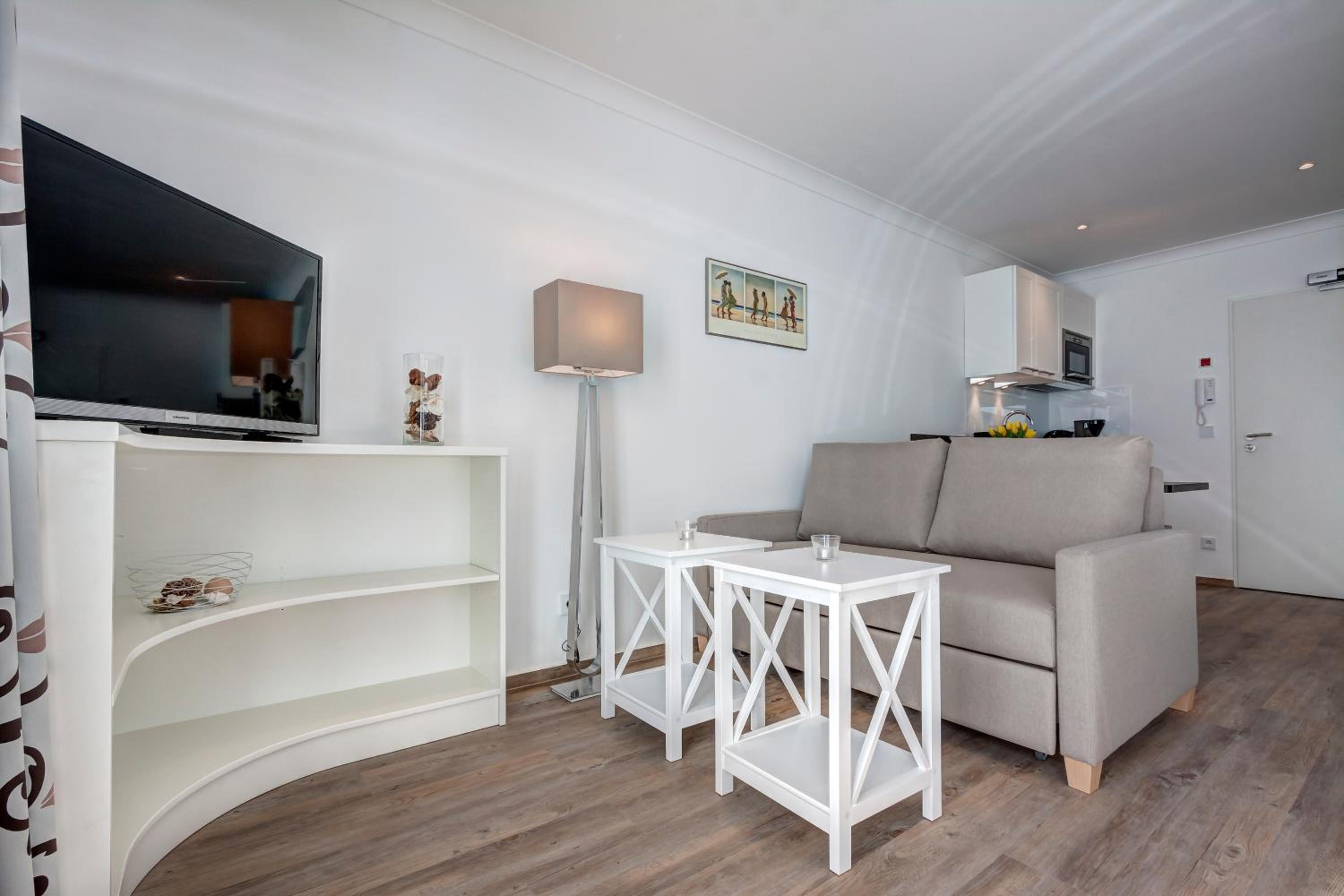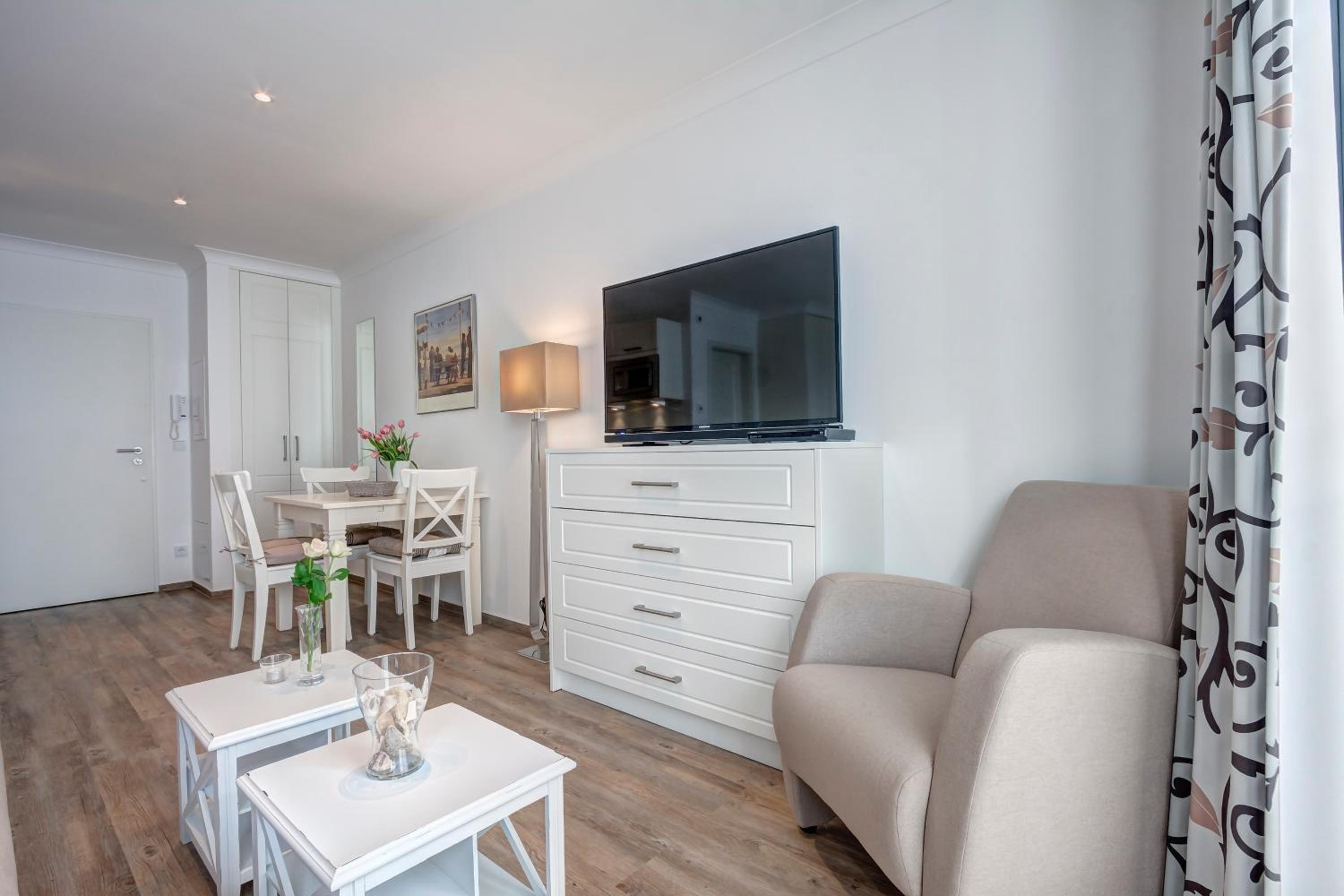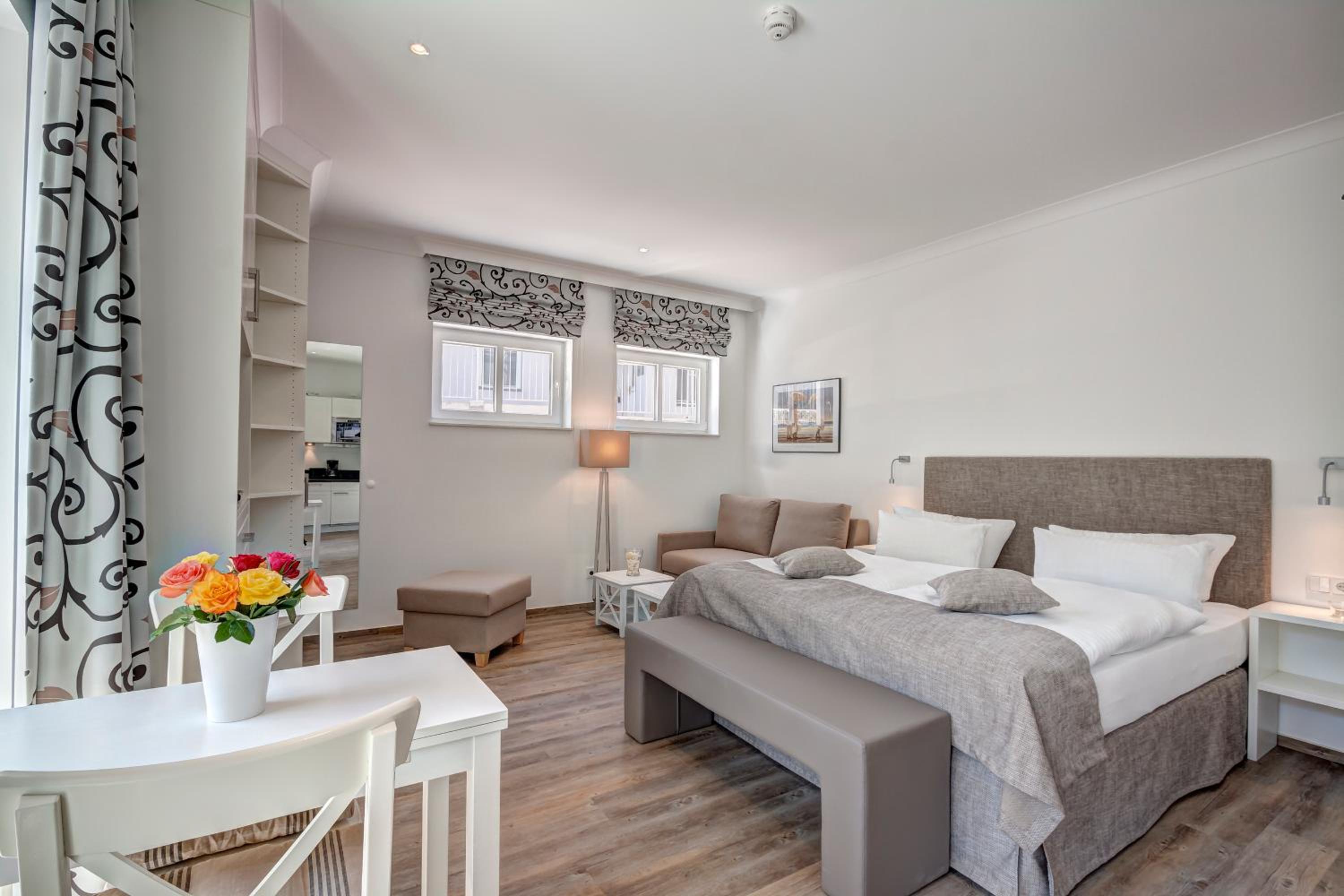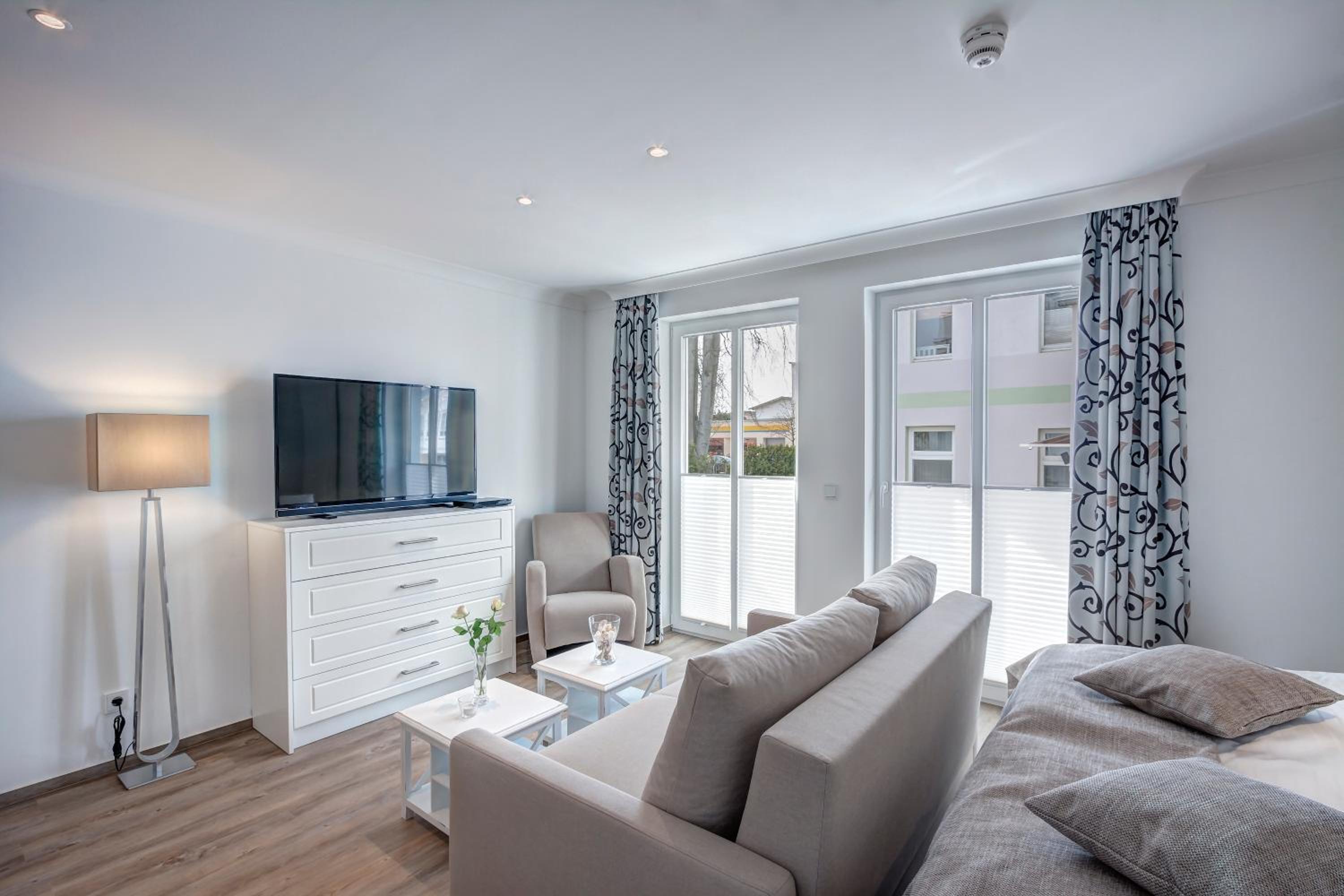 Aparthotel Villa Lea in Ahlbeck offers a luxurious stay with free WiFi and private parking. Each room is elegantly furnished with a flat-screen TV, a cozy seating area, and a coffee machine. Enjoy the comfort of slippers and a hairdryer in the private bathroom.