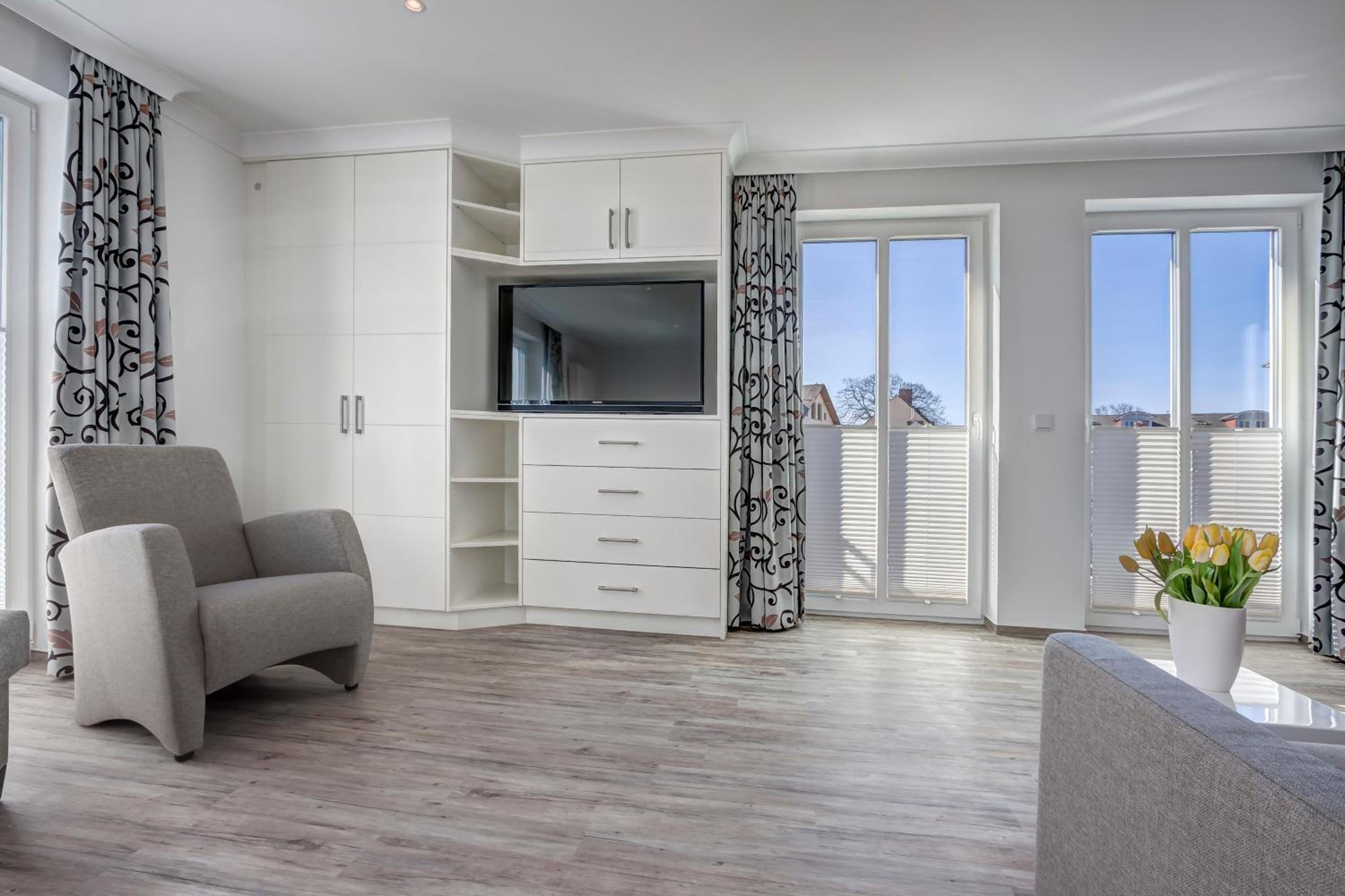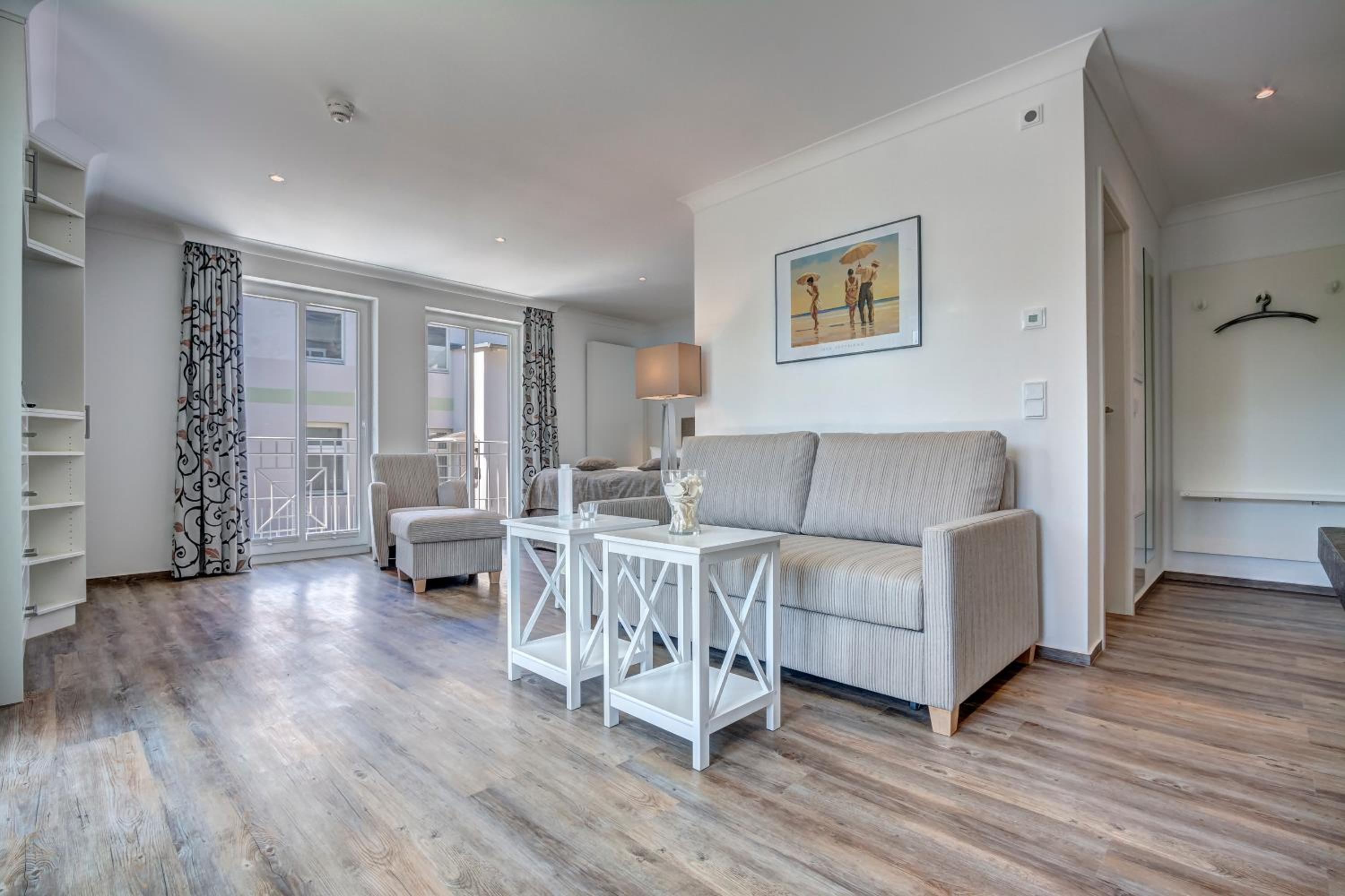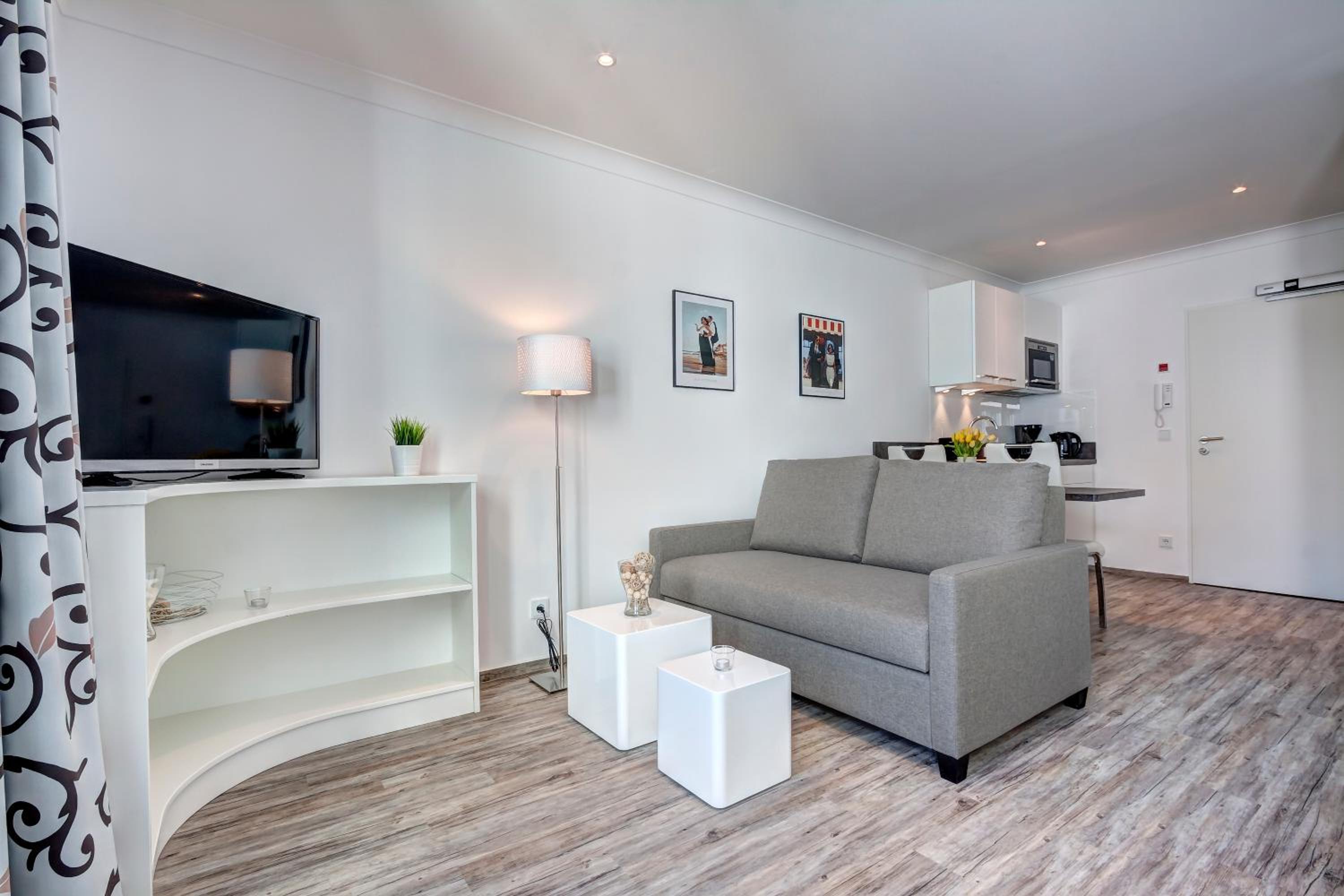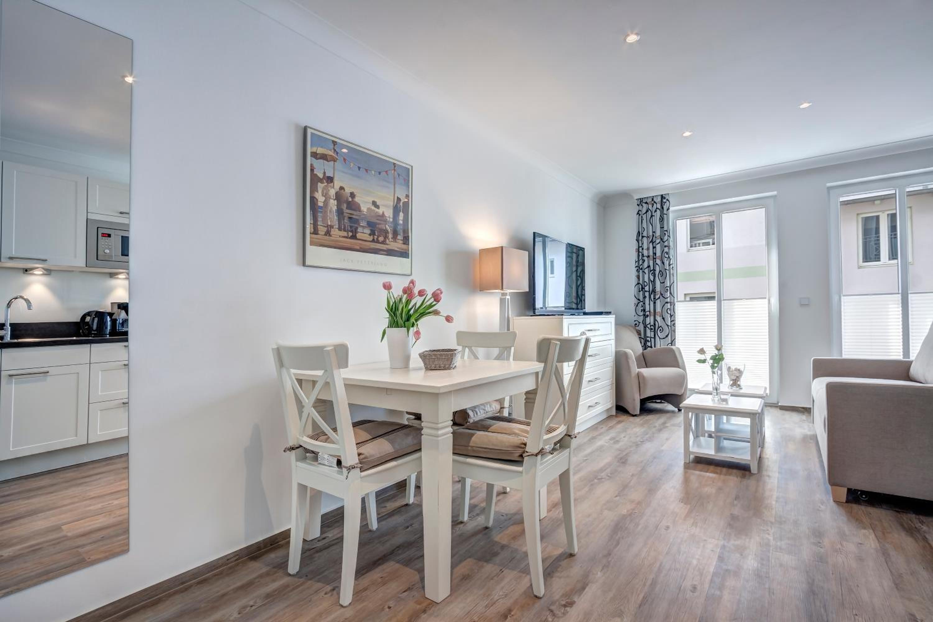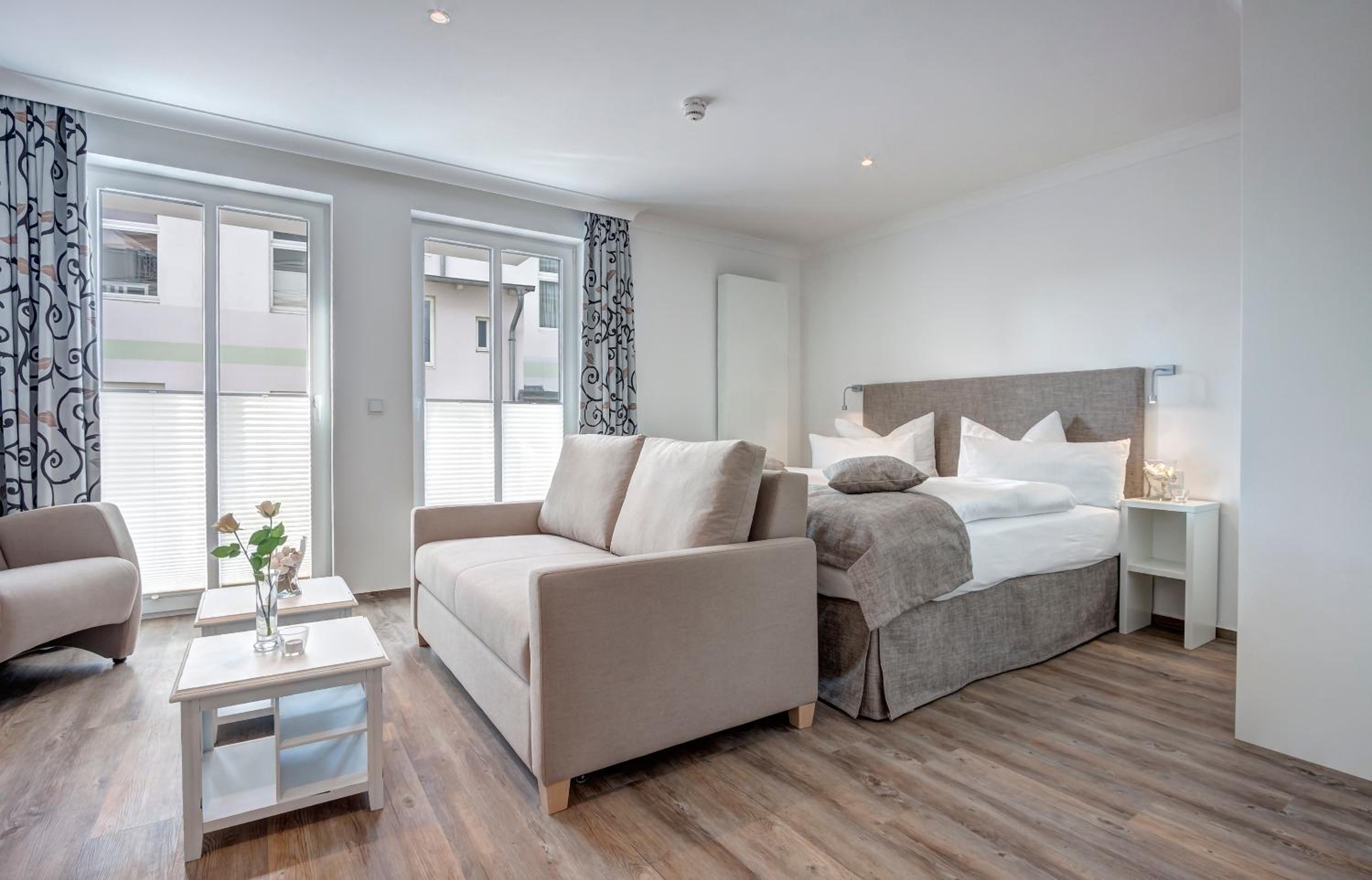 Aparthotel Villa Lea in Ahlbeck offers a luxurious stay with free WiFi and private parking. Each room is elegantly furnished with a flat-screen TV, a cozy seating area, and a coffee machine. Enjoy the comfort of slippers and a hairdryer in the private bathroom.
