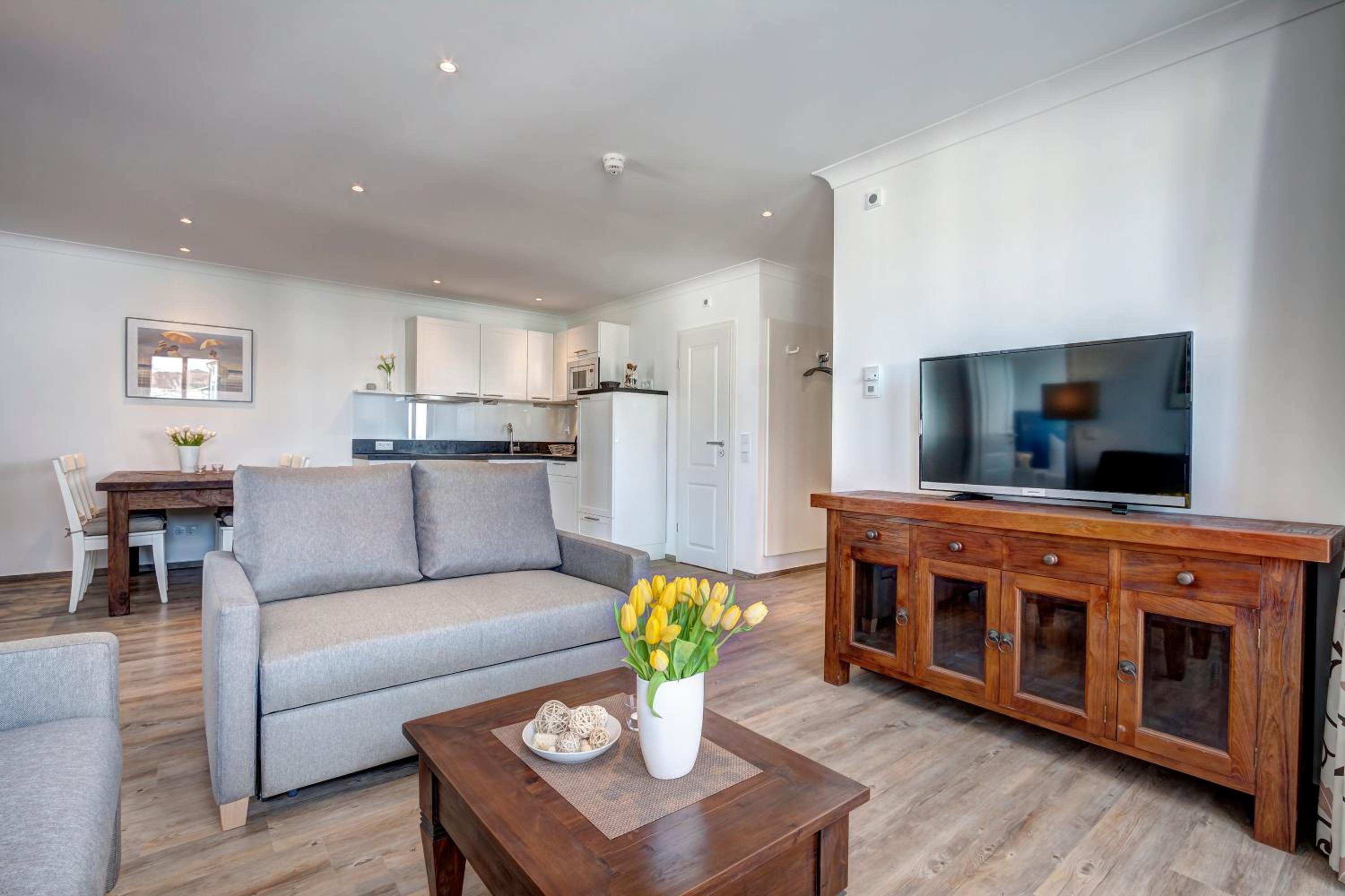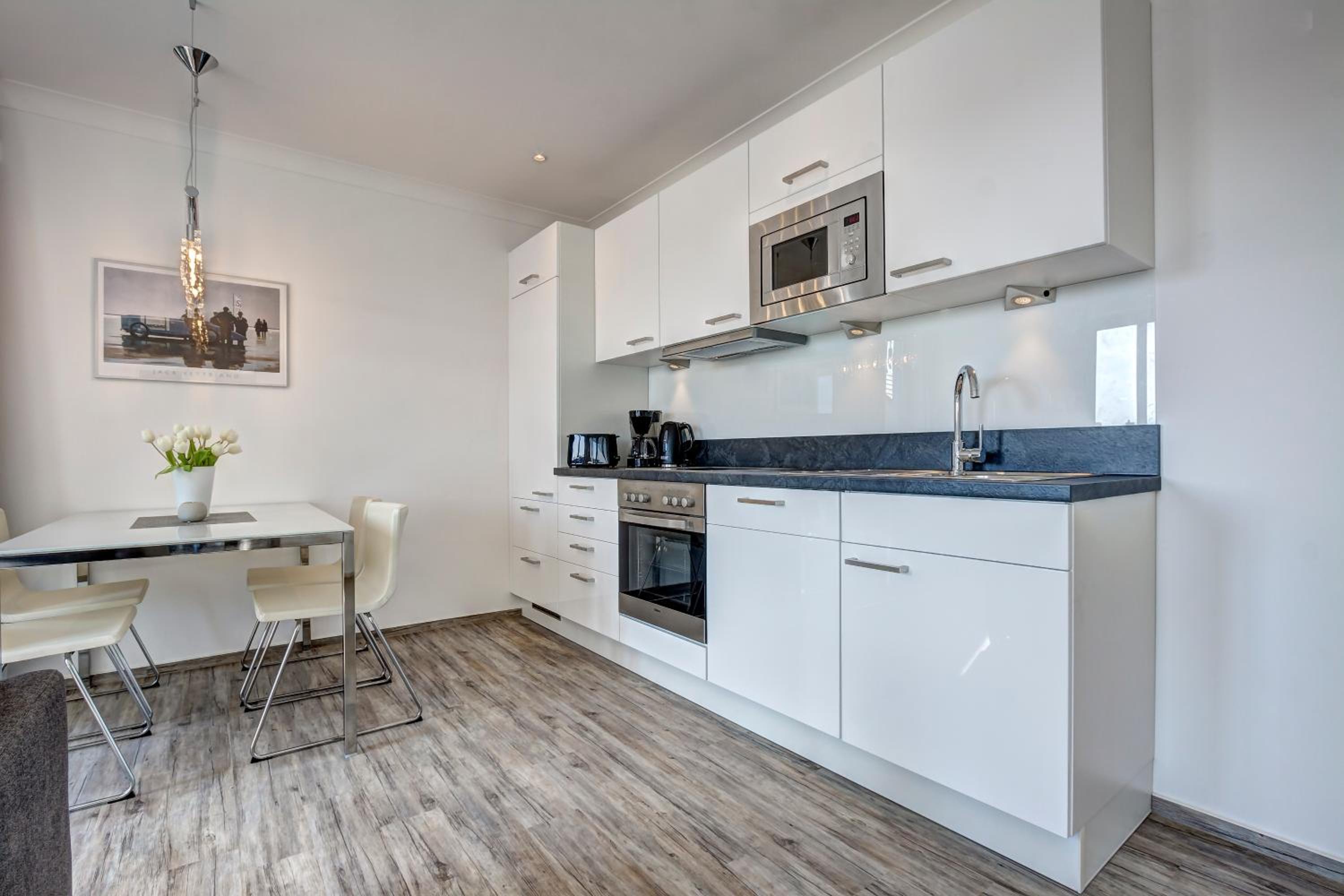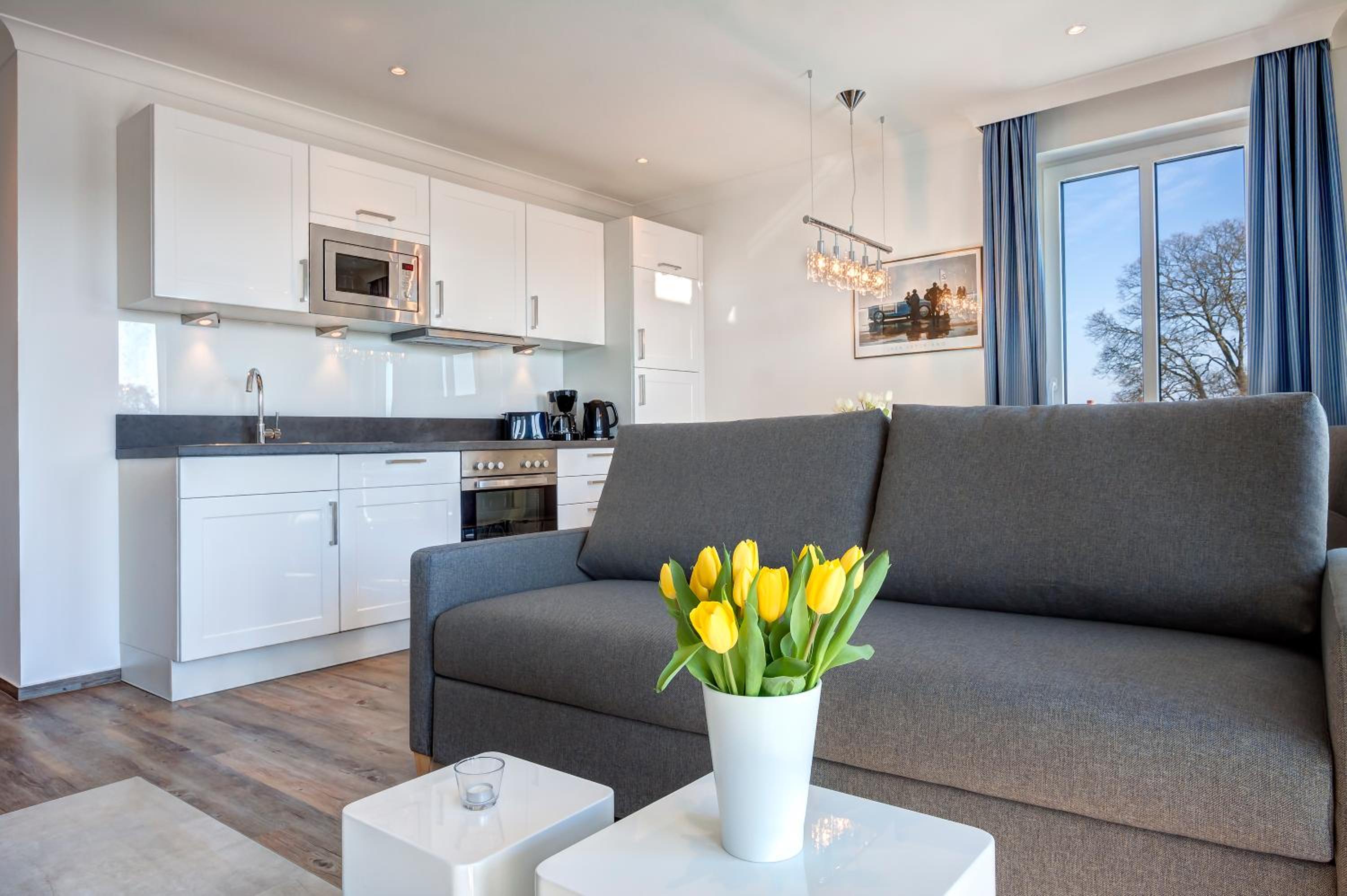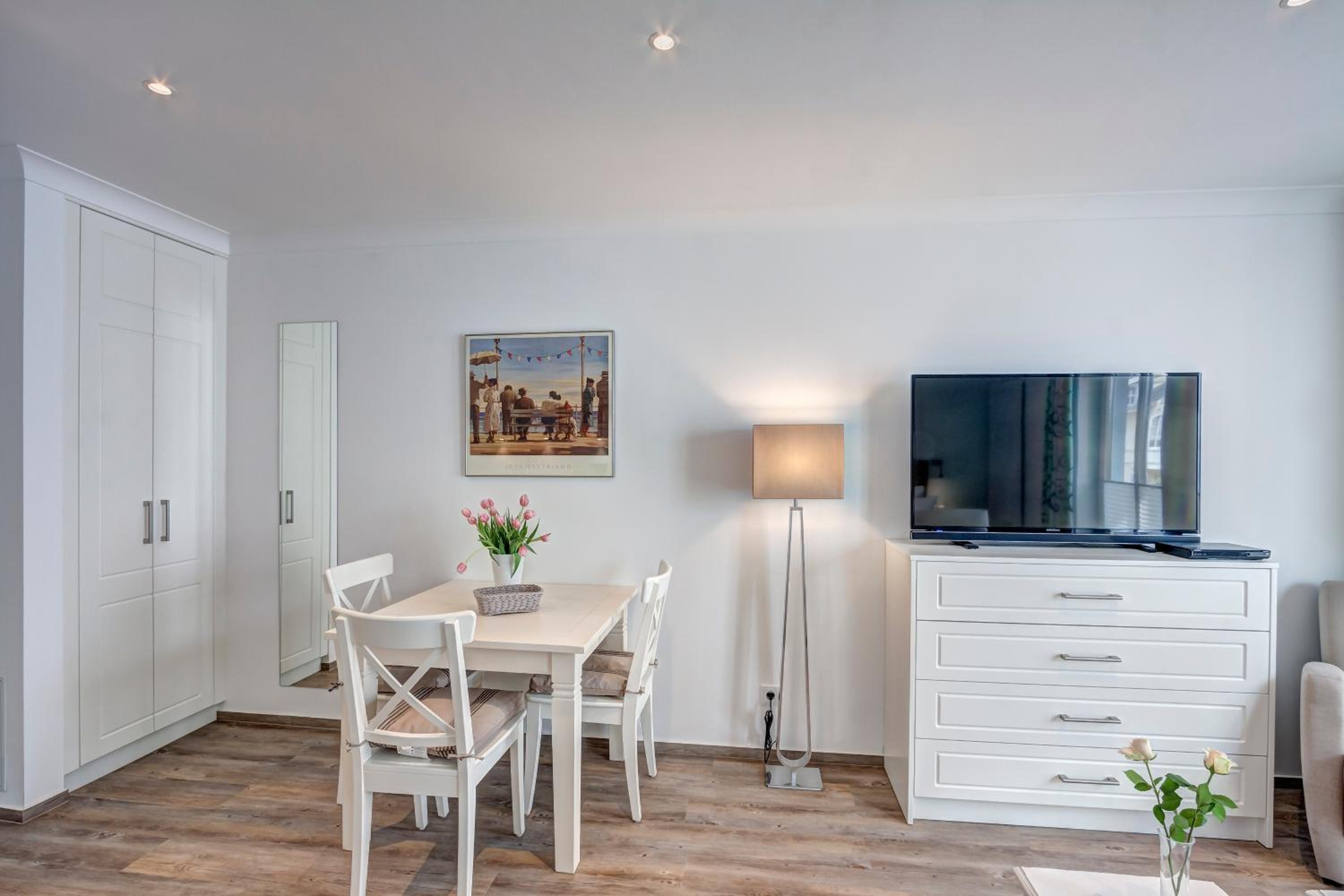 Aparthotel Villa Lea in Ahlbeck offers a luxurious stay with free WiFi and private parking. Each room is elegantly furnished with a flat-screen TV, a cozy seating area, and a coffee machine. Enjoy the comfort of slippers and a hairdryer in the private bathroom.