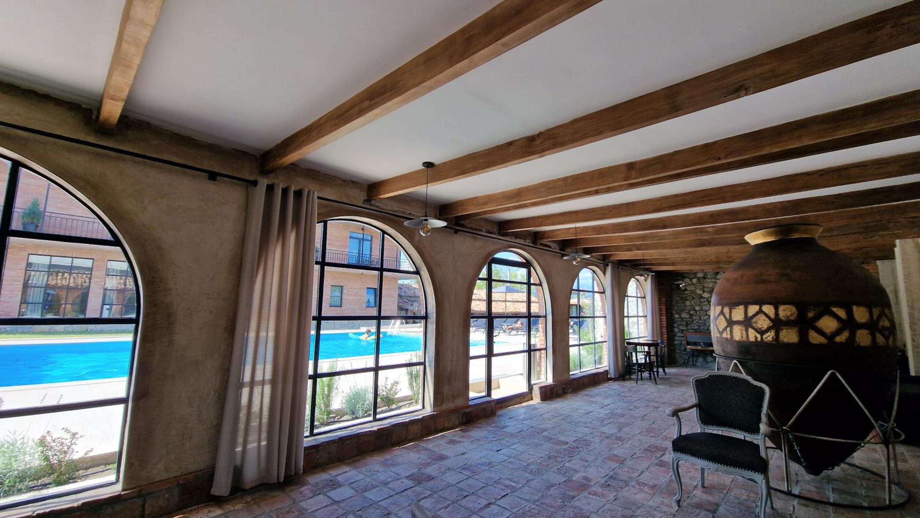 Chateau Marani is an absolutely wonderful place to stay. We came from the mountains and stayed for one night as we were heading for Kazbegi region the other day. We found a lovely room with a balcony and a great view to the wine and the neighbourhood. The pool was fantastic, not too much chlor and when we had snacks and dinner the restaurant offered delicious choices. The staff was absolutely amazing. Everyone was so friendly and helpful, we couldn’t have expected more. Our boys played the grand piano in the evening, cocktails and coffee were as excellent as the food.