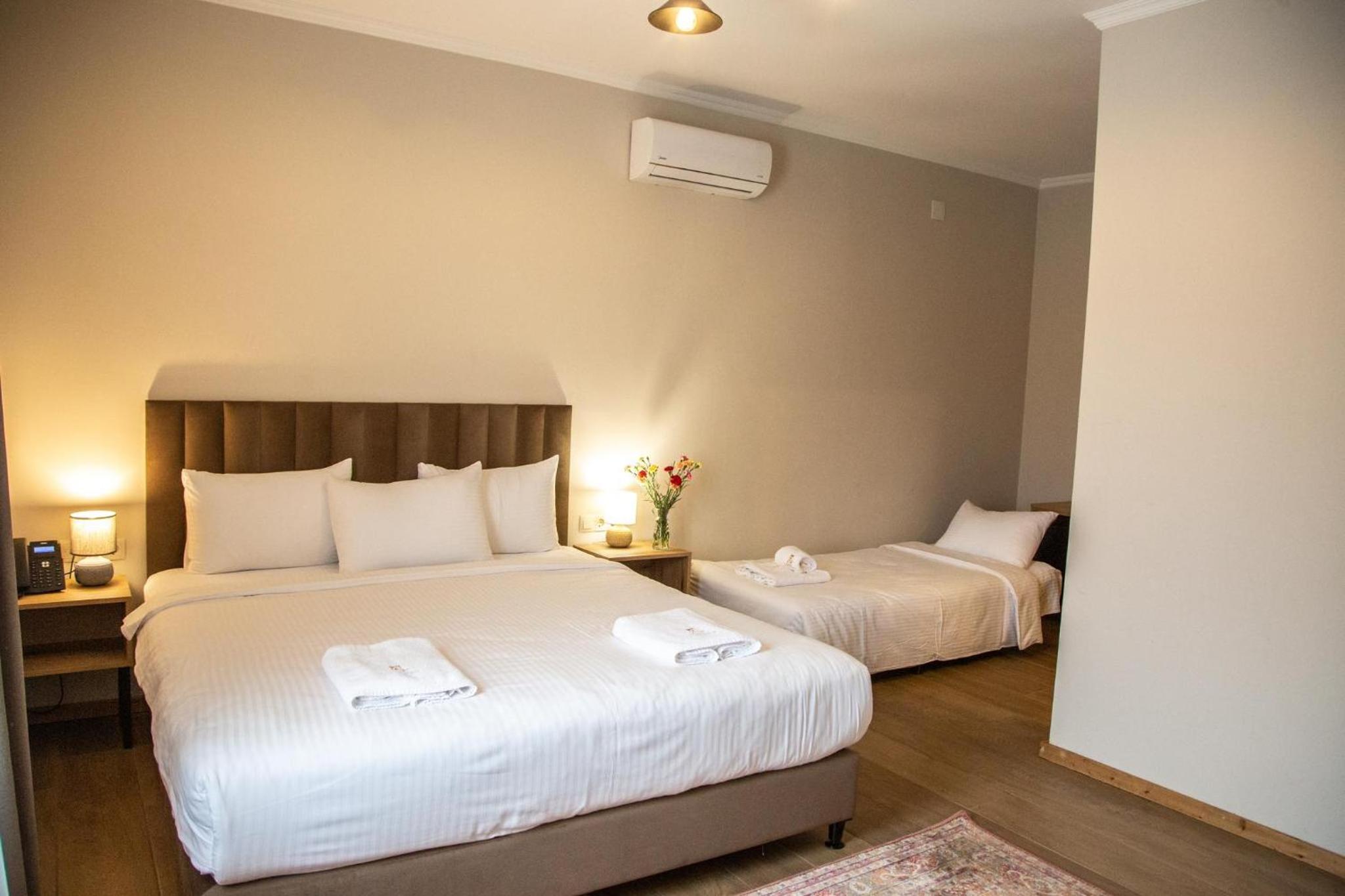 People 7 years old and over stay for GEL 80 per person per night when using an available extra bed.