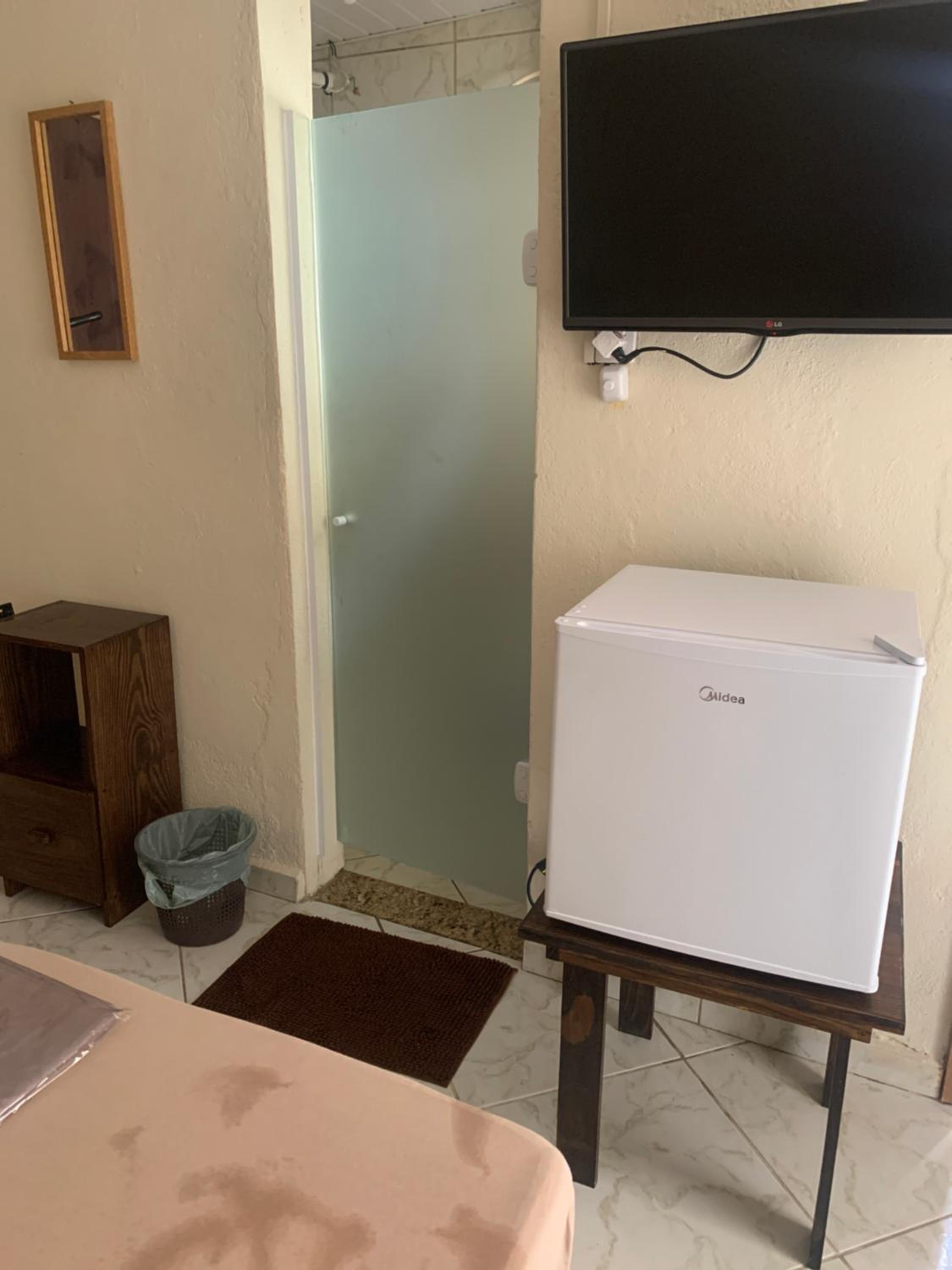 Sinal da Tv e tapete molhado no banheiro, porém nada que se deva levar em consideração para um dia de hospedagem.