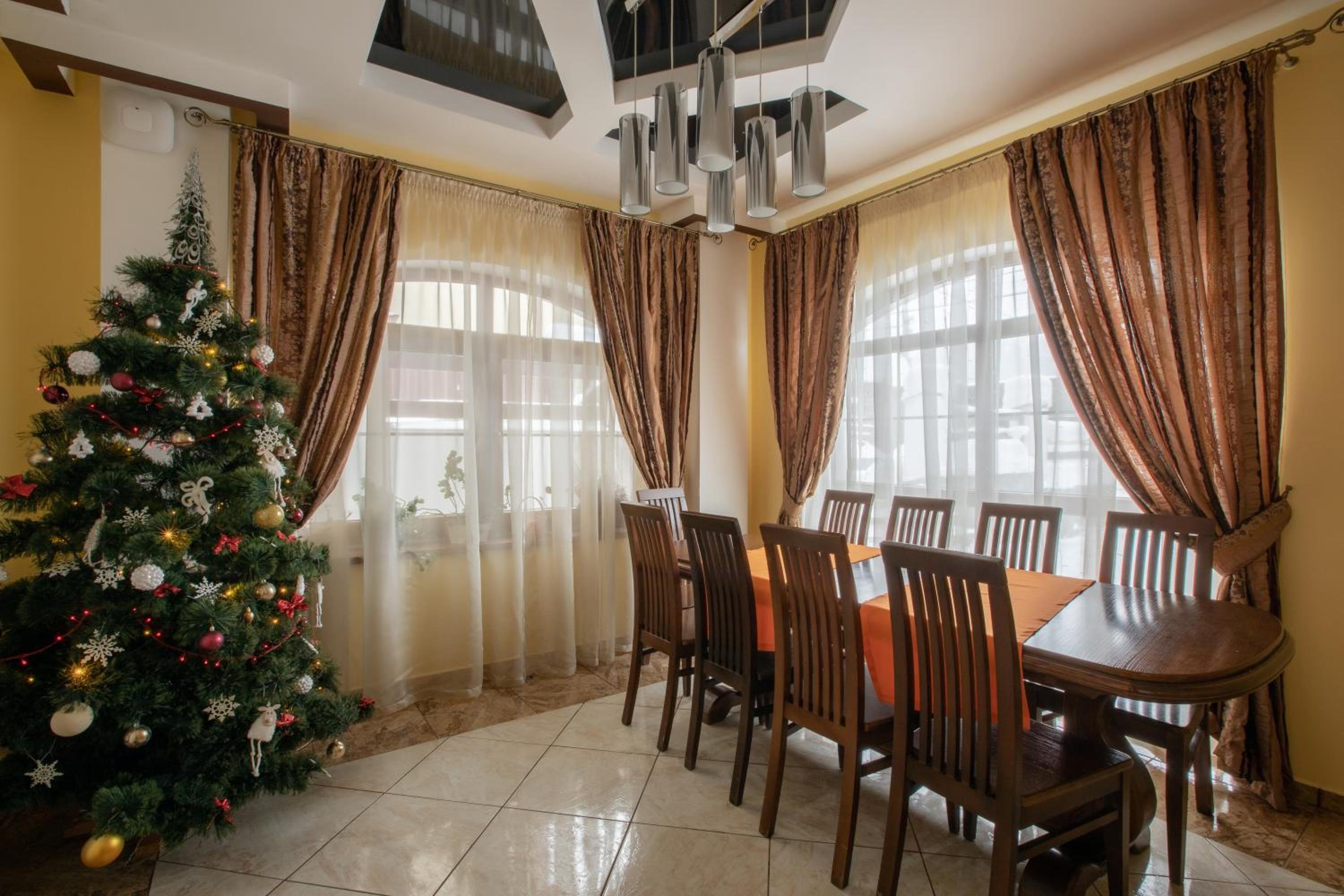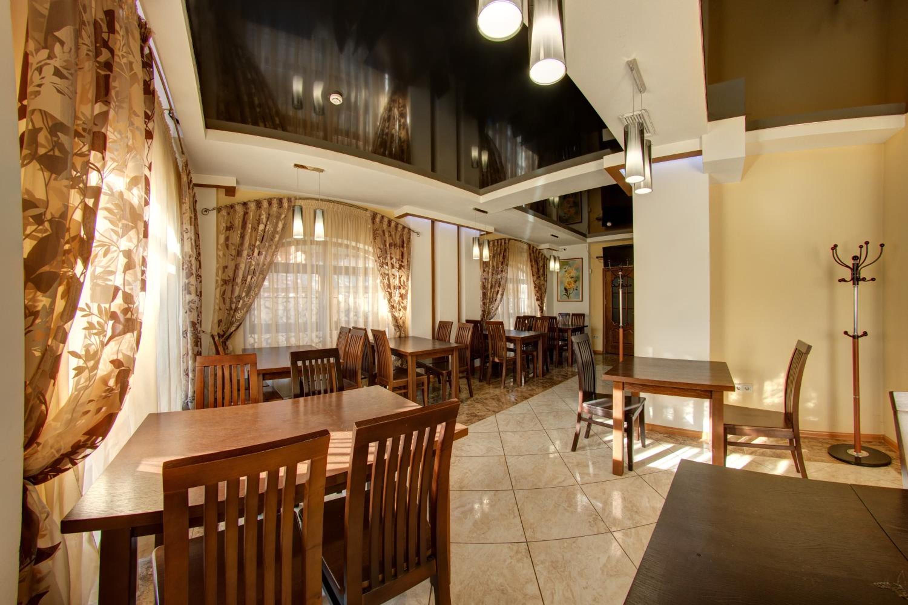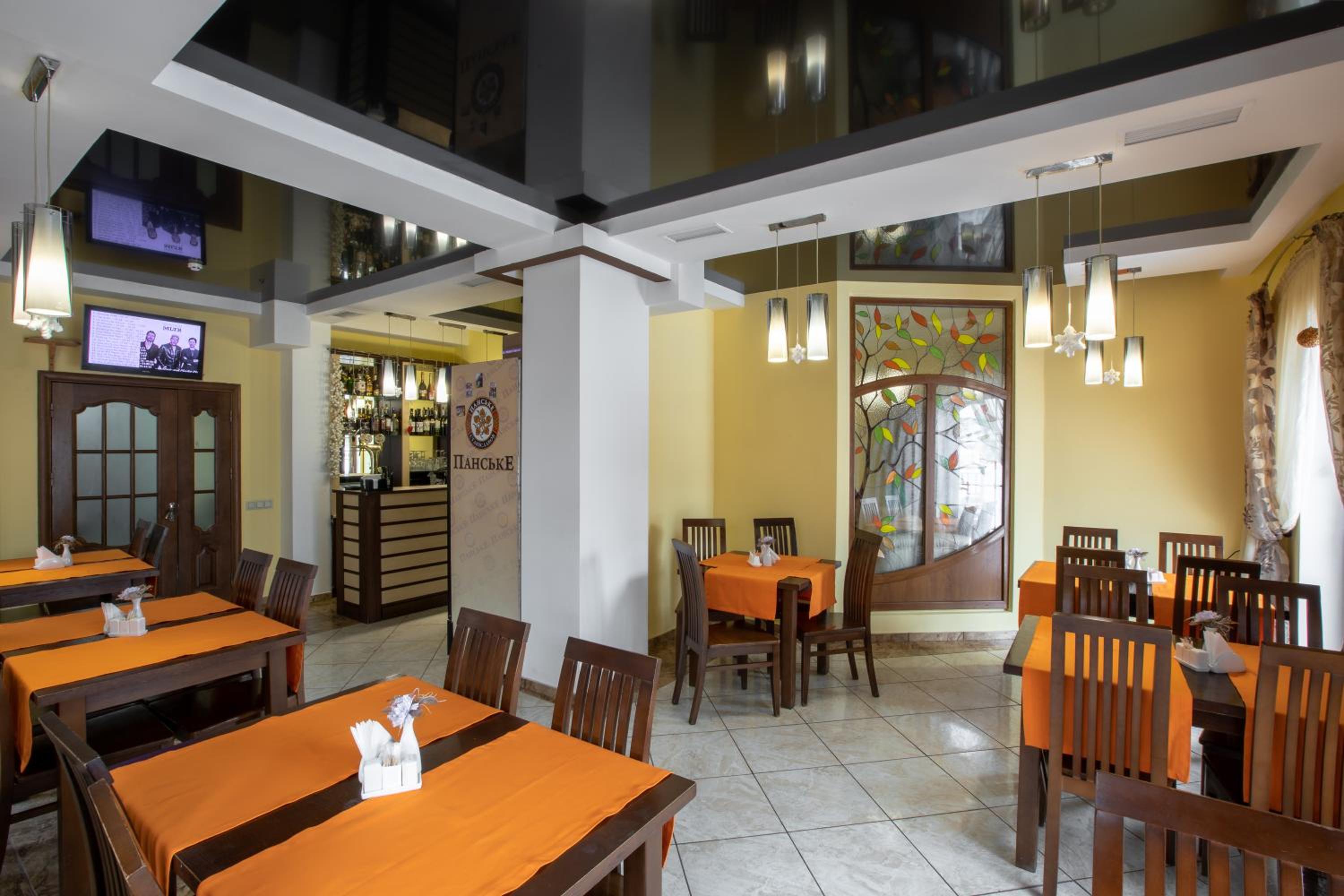 Indulge in traditional Ukrainian cuisine at our restaurant, and sip on hot beverages at the cozy on-site bar.
