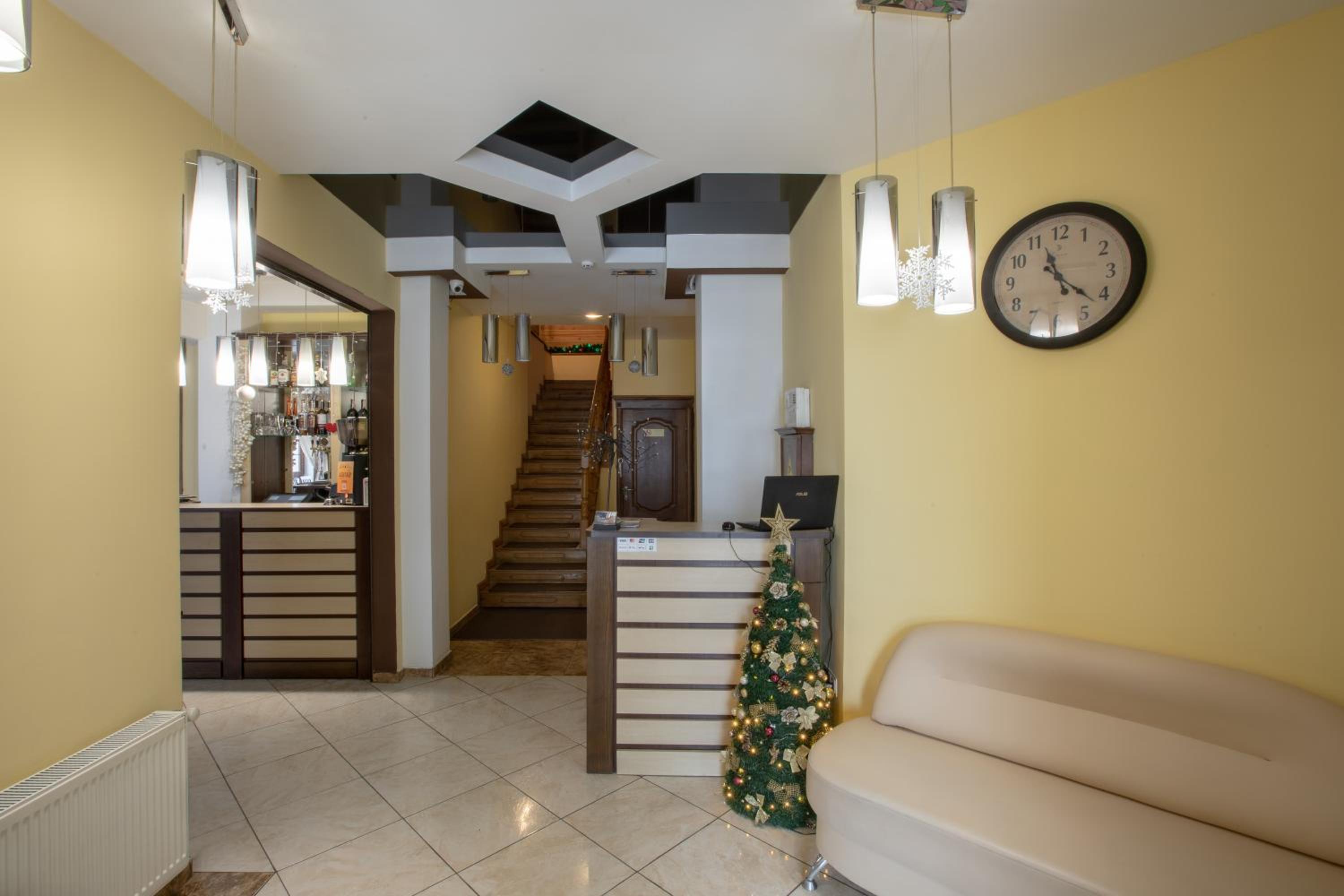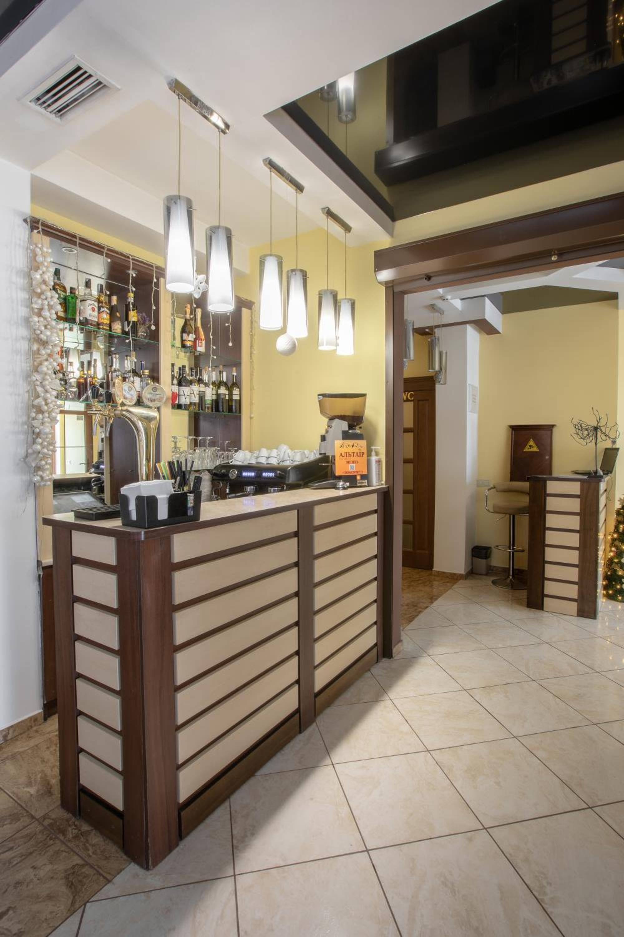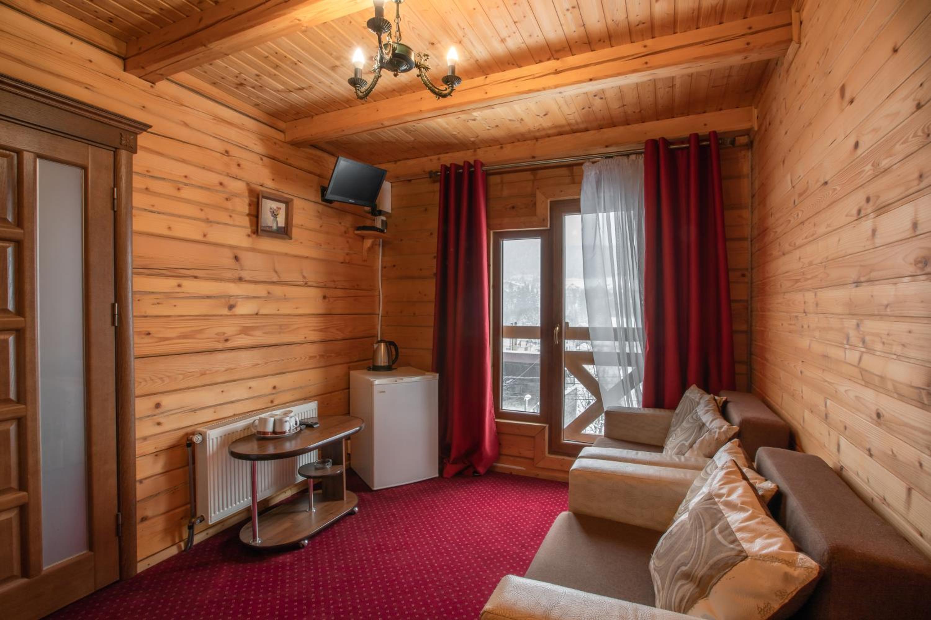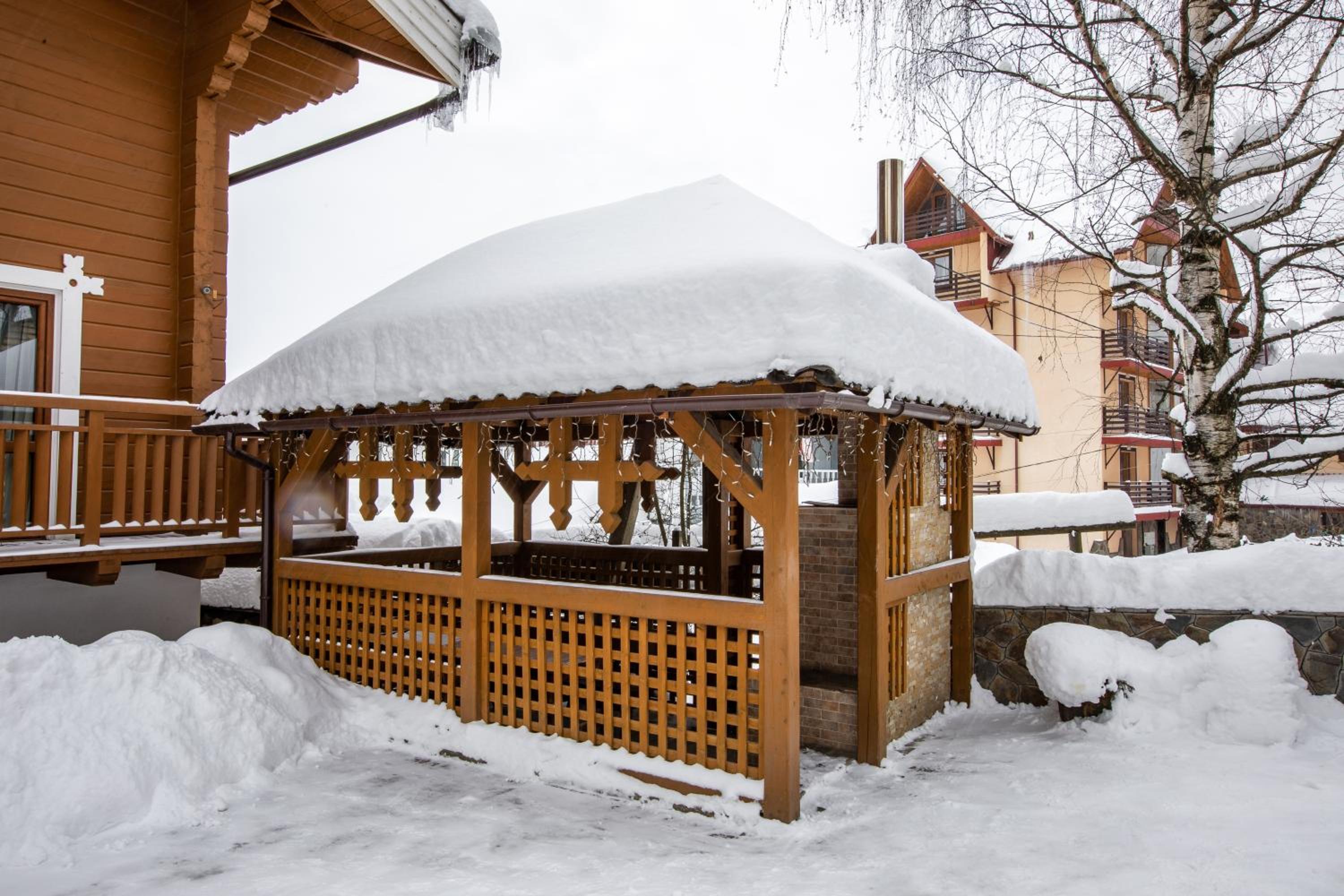 Indulge in traditional Ukrainian cuisine at our restaurant, and sip on hot beverages at the cozy on-site bar.