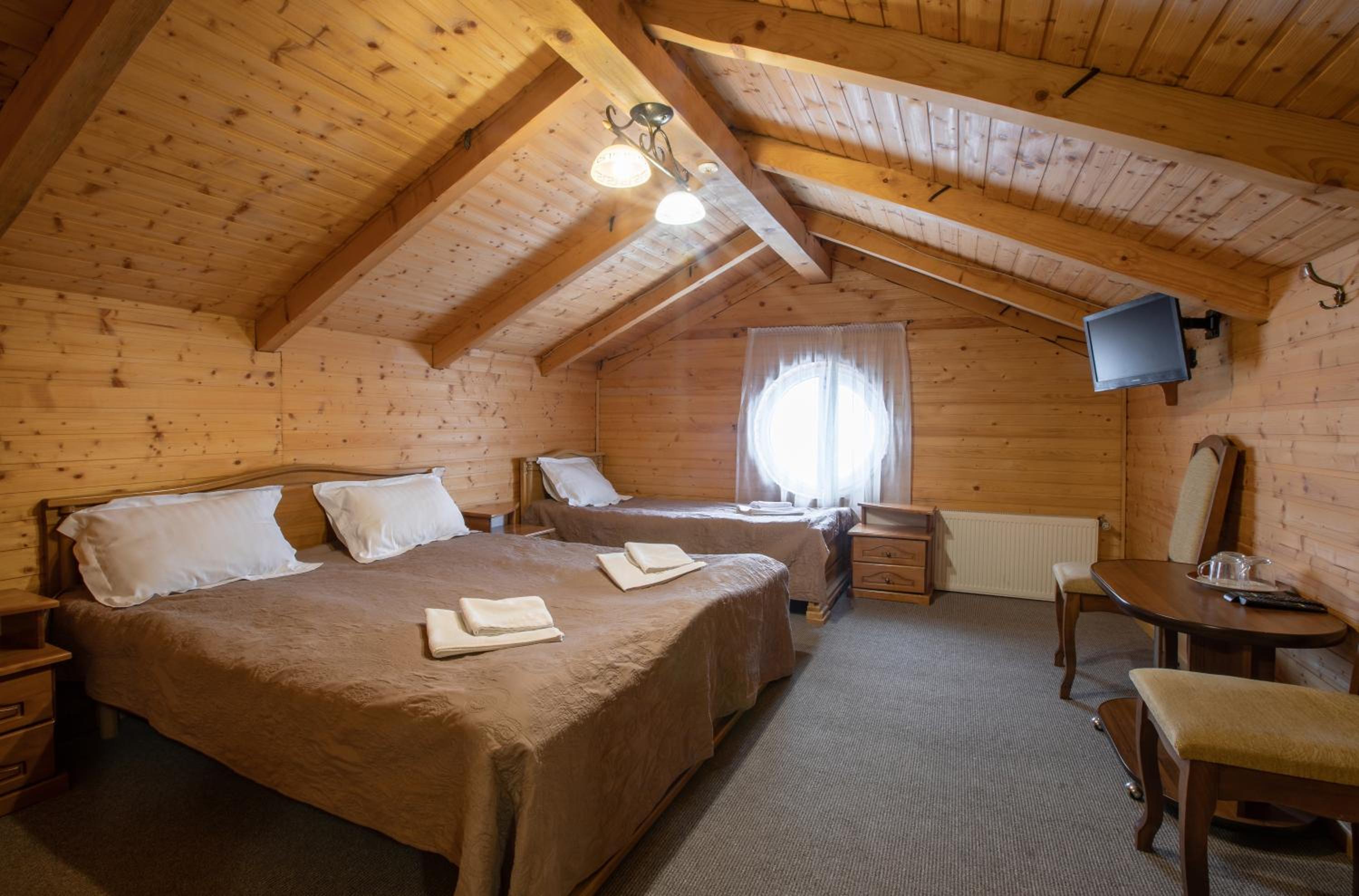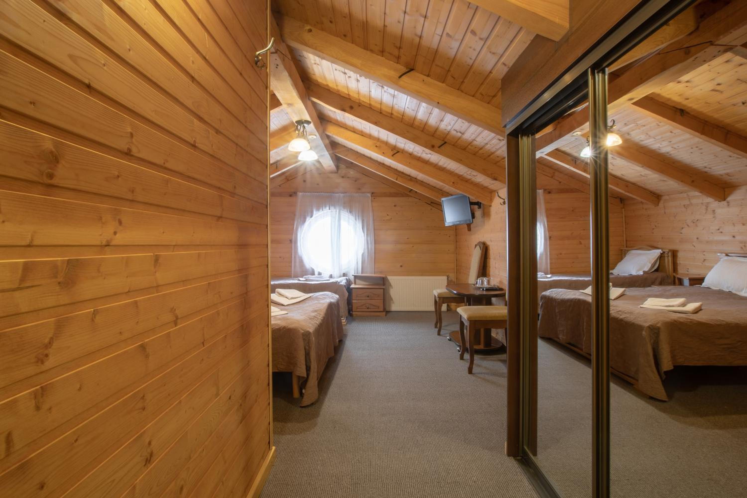 Адміністраторка трохи затуркана. Спочатку взяла більше грошей ніж треба(аби я не сказала чи хтось би мені повернув...), з парковою тинялися всюди, бо в готелі мала парковка та таку кількість відвідувачів, з банею замовляла на 2 години, адміністраторка вирішила шо буде лиш 1. В номері спочатку 2 дні було дуже спекотно, аж все пересушувало, потім норм.