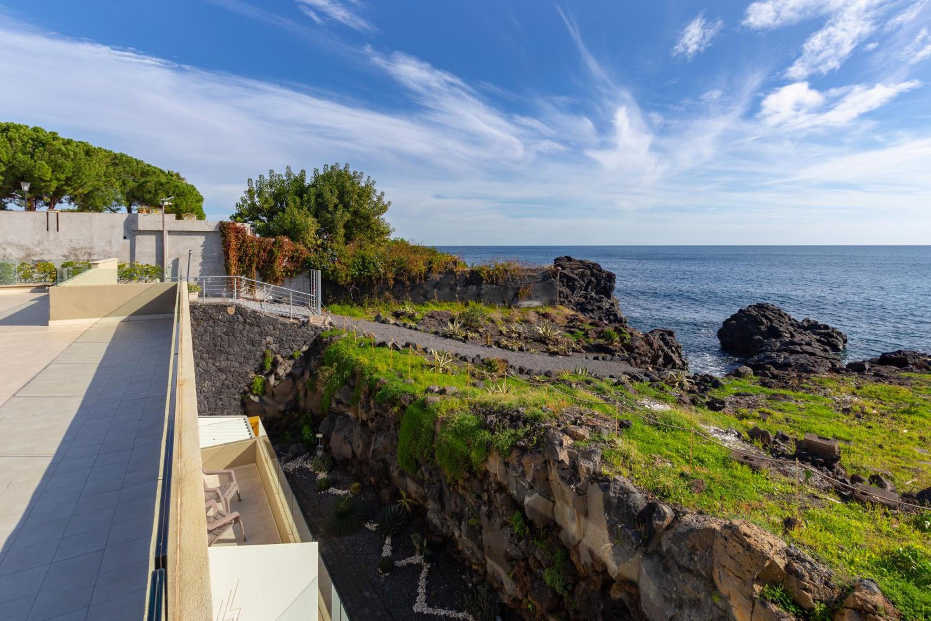 Das Hotel ist direkt am Meer, man hat aber keinen Zugang zum Meer, da die Küste dort aus felsigem Lavagestein besteht. Es ist nicht im Zentrum von Catania, ein Bus fährt von dort nach Catania und Aci Castello (sehr schön). Das Hotel stellt ein paar Parkplätze kostenlos zur Verfügung. Diese sind für große Fahrzeuge leider etwas kurz. Die Zimmer meiner Geschwister hatten keinen Meeresblick, aber eine große Terrasse. Das Hotel hat eine große Dachterrasse mit Meerblick für alle Gäste. Die Zimmer waren aufgrund der Fensterfront sehr hell und besassen eine Küchenzeile. Das Personal war sehr freundlich und sehr hilfsbereit. Das Frühstück war sehr gut, ist aber nicht mit den opulenten Buffets der 5 Sterne Hotels vergleichbar. Ich habe beim Frühstück nichts vermisst. Besonders loben muss ich die sehr guten Betten und die begehbare Dusche. Nur der Vollständigkeit halber: Zimmer und Hotel waren sehr sauber und leise.