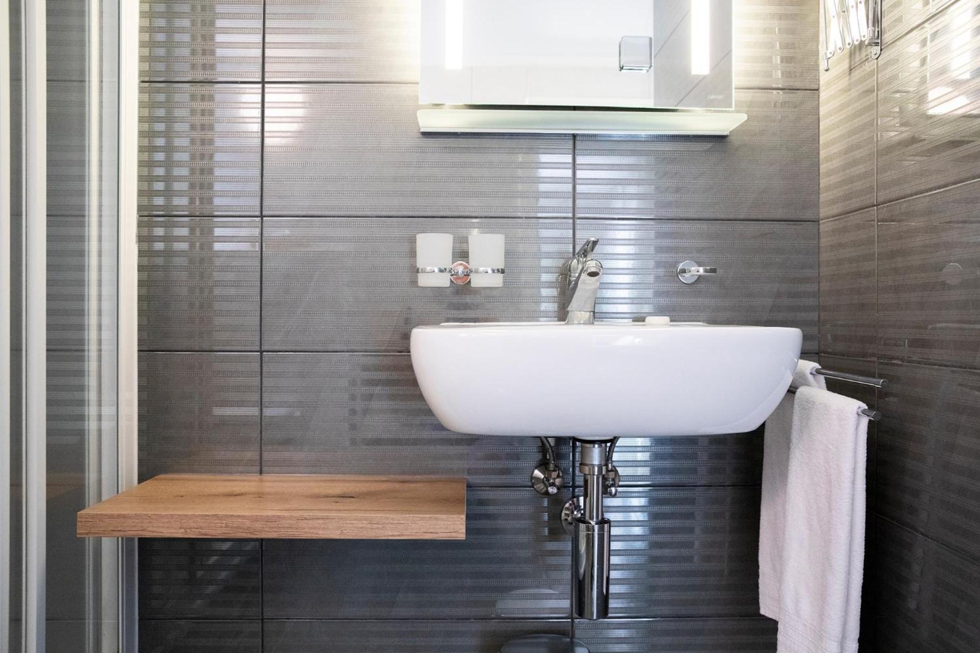 Wasserdruck in der Dusche. Ging 5‘ bis mal warmes Wasser kam!