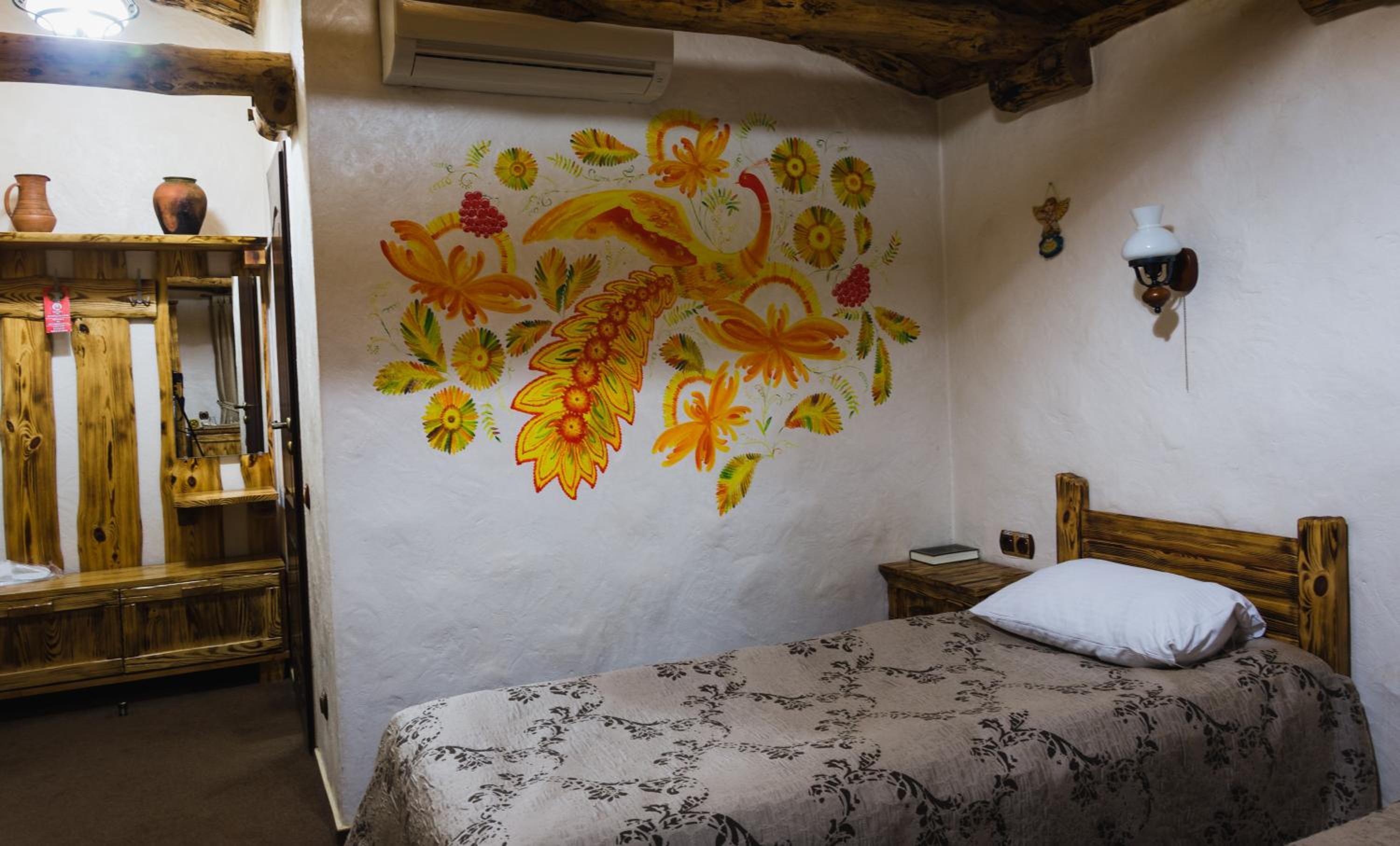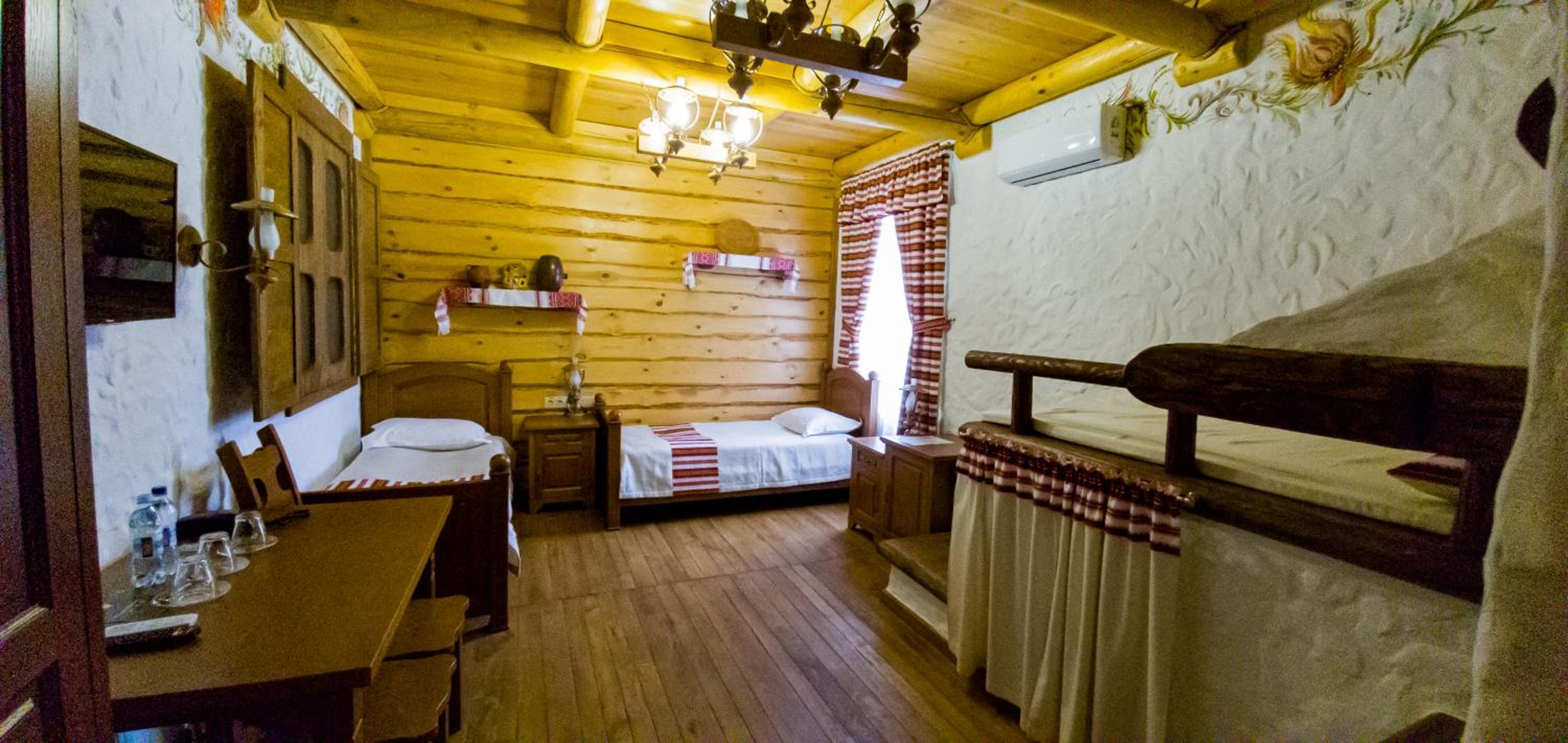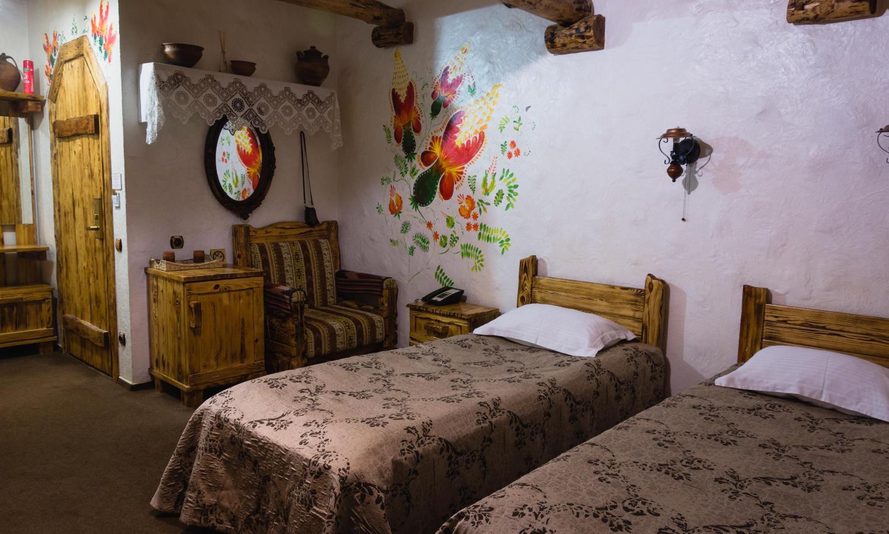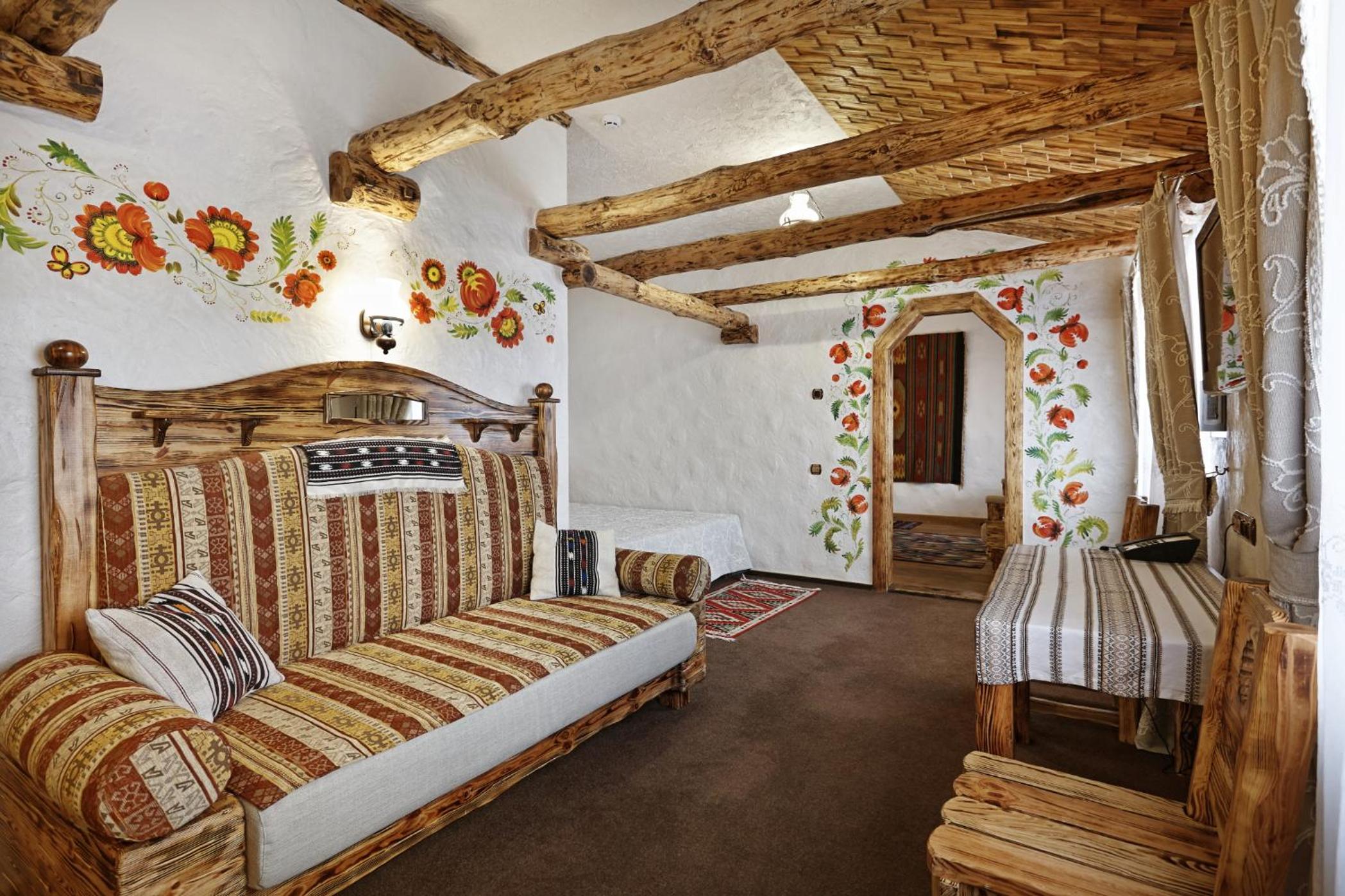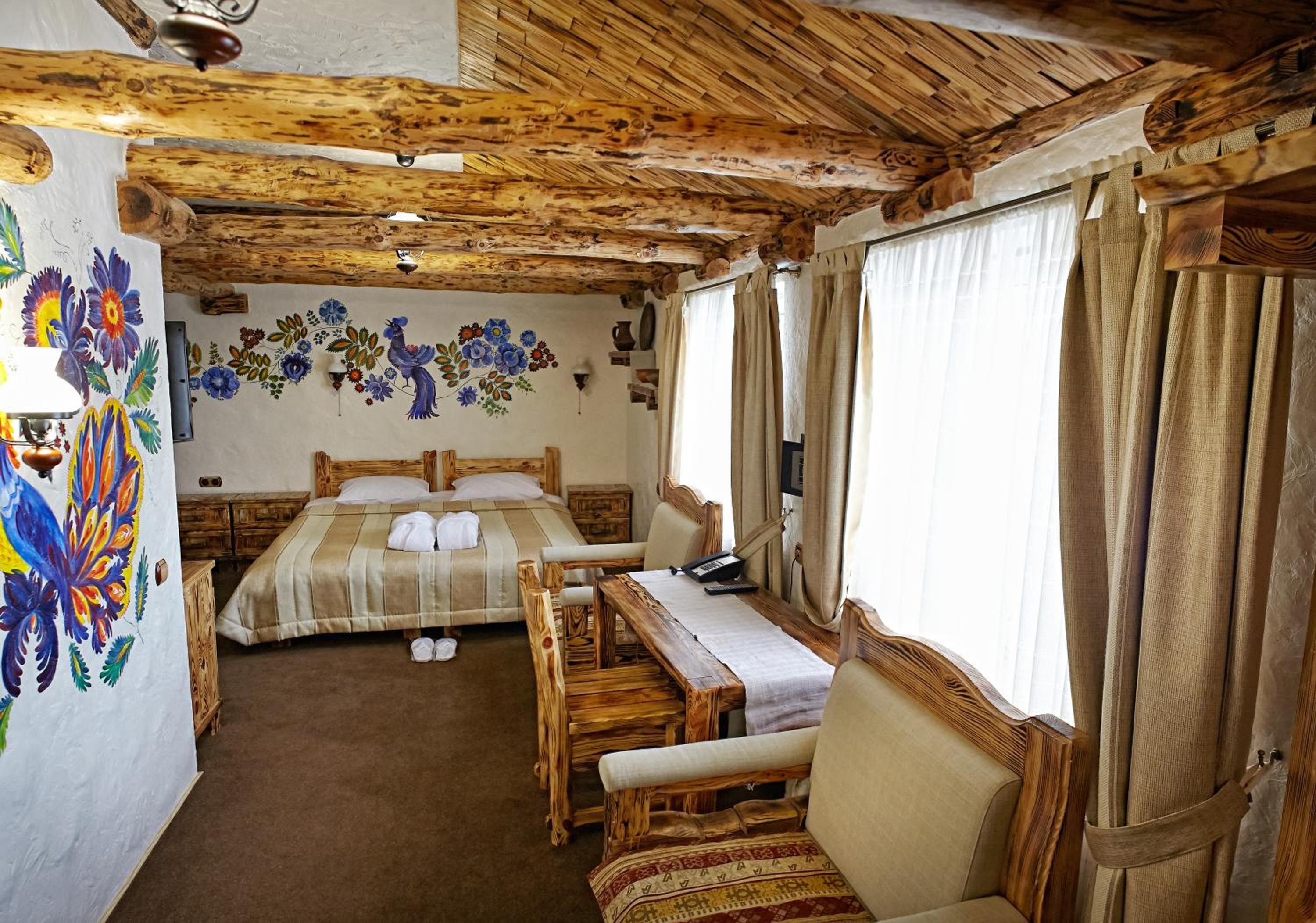 Each uniquely decorated room at Pidkova comes equipped with modern amenities such as a kettle, fridge, hairdryer, and slippers, ensuring a comfortable stay for every guest.