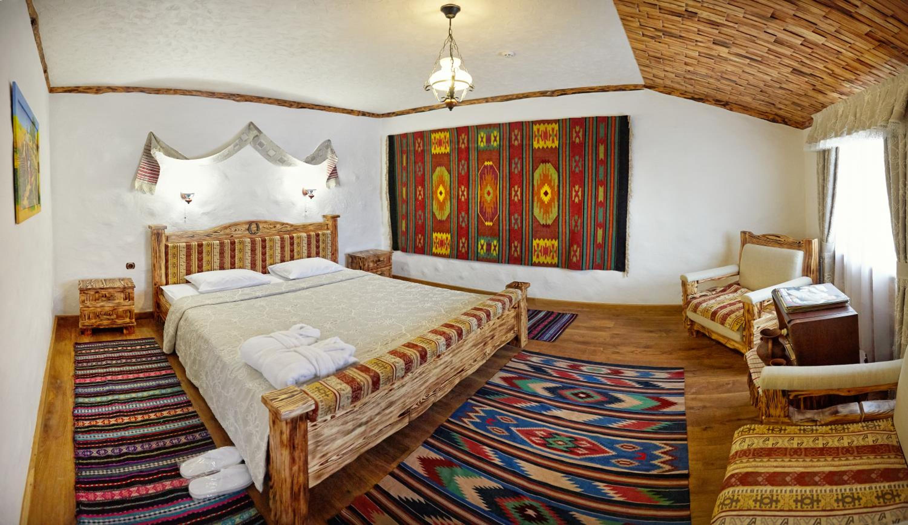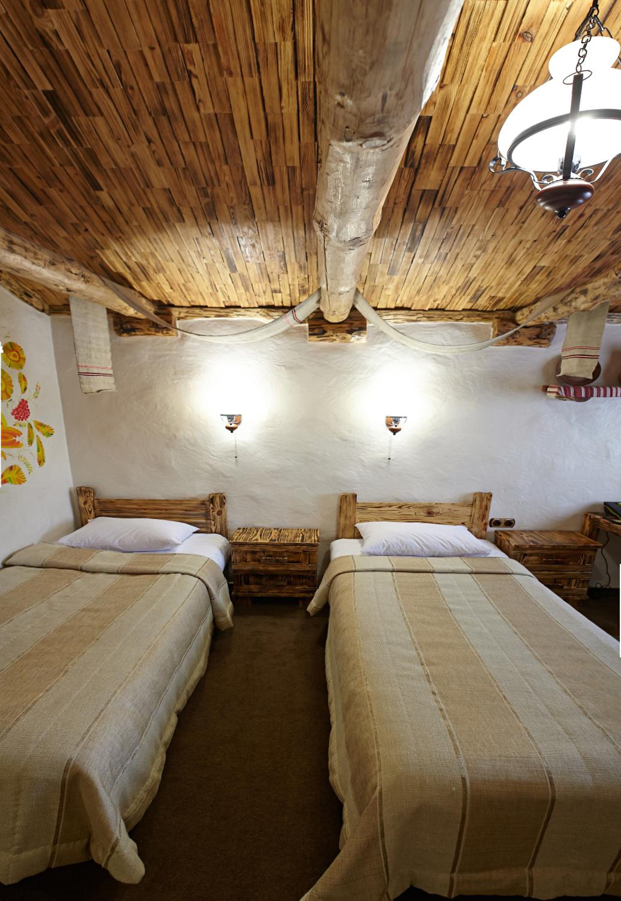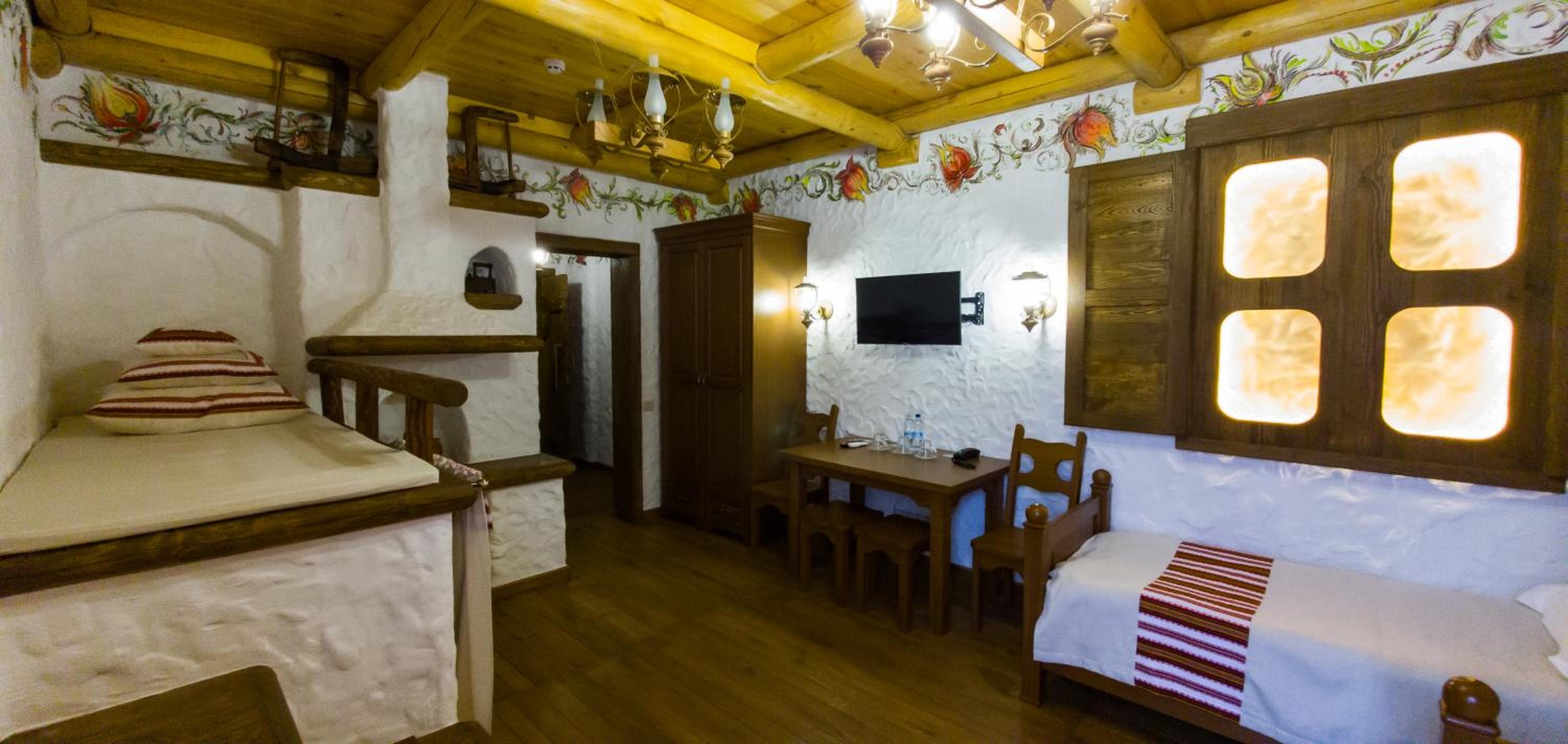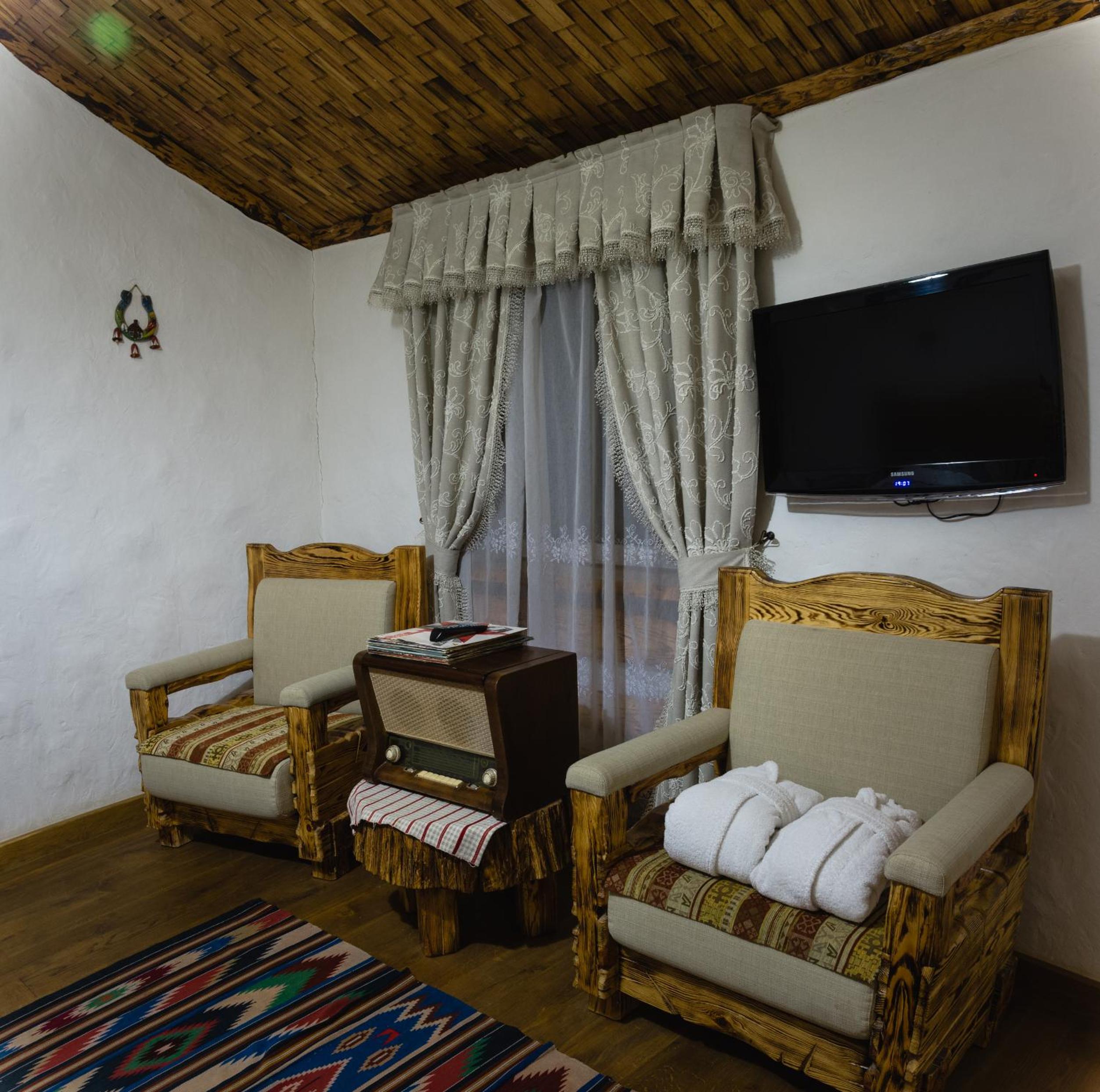 Each uniquely decorated room at Pidkova comes equipped with modern amenities such as a kettle, fridge, hairdryer, and slippers, ensuring a comfortable stay for every guest.