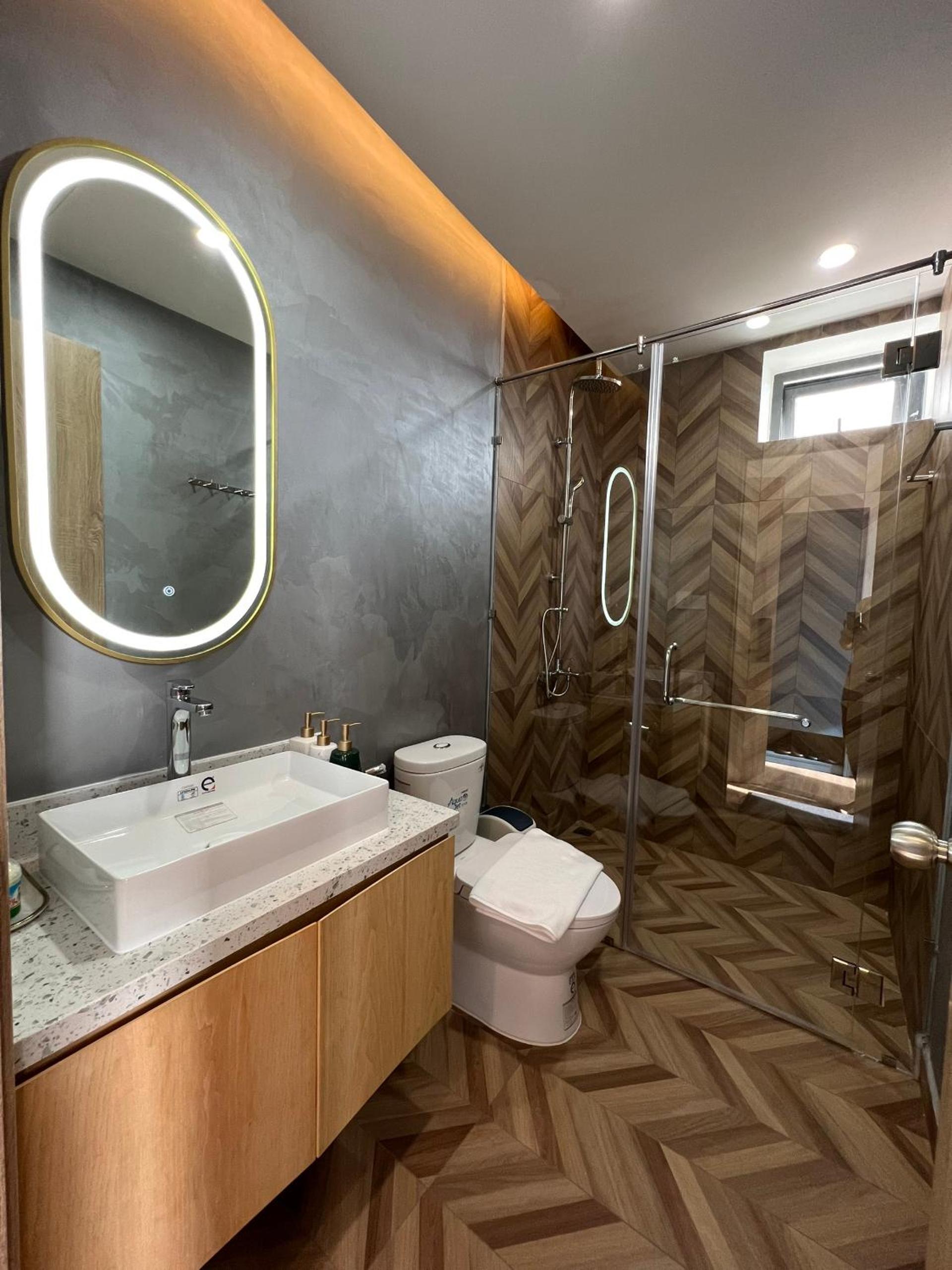 Phòng hơi có mùi ẩm mốc, nước nóng hơi lâu.