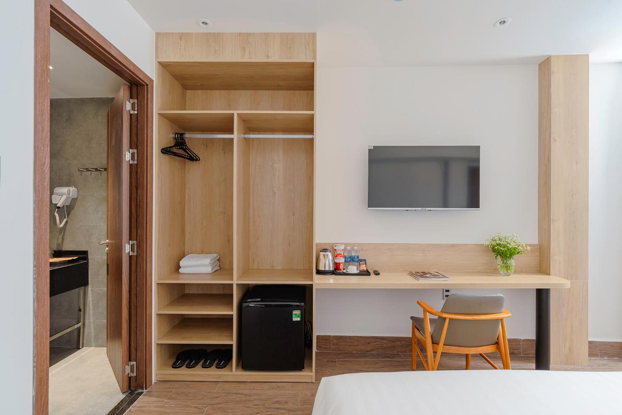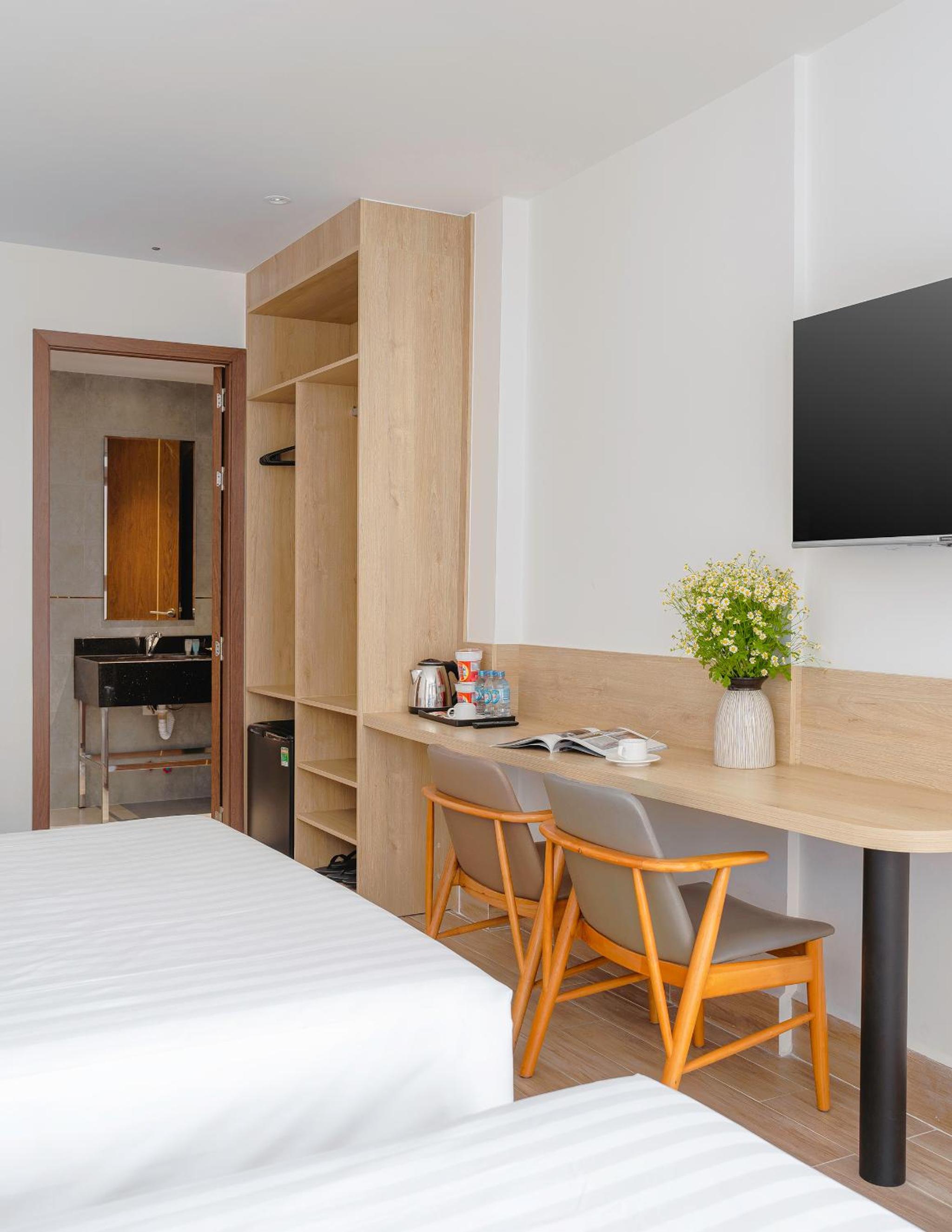 Phòng mình thuê 850 nhưng cảm thấy chưa xứng đáng với giá tiền lắm. Nội thất cũ, view xấu, không có khăn nhỏ