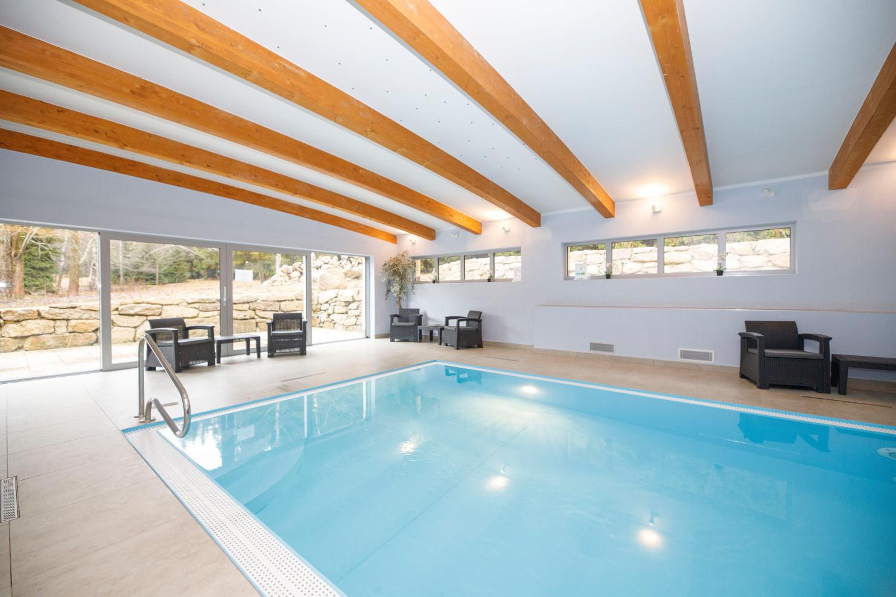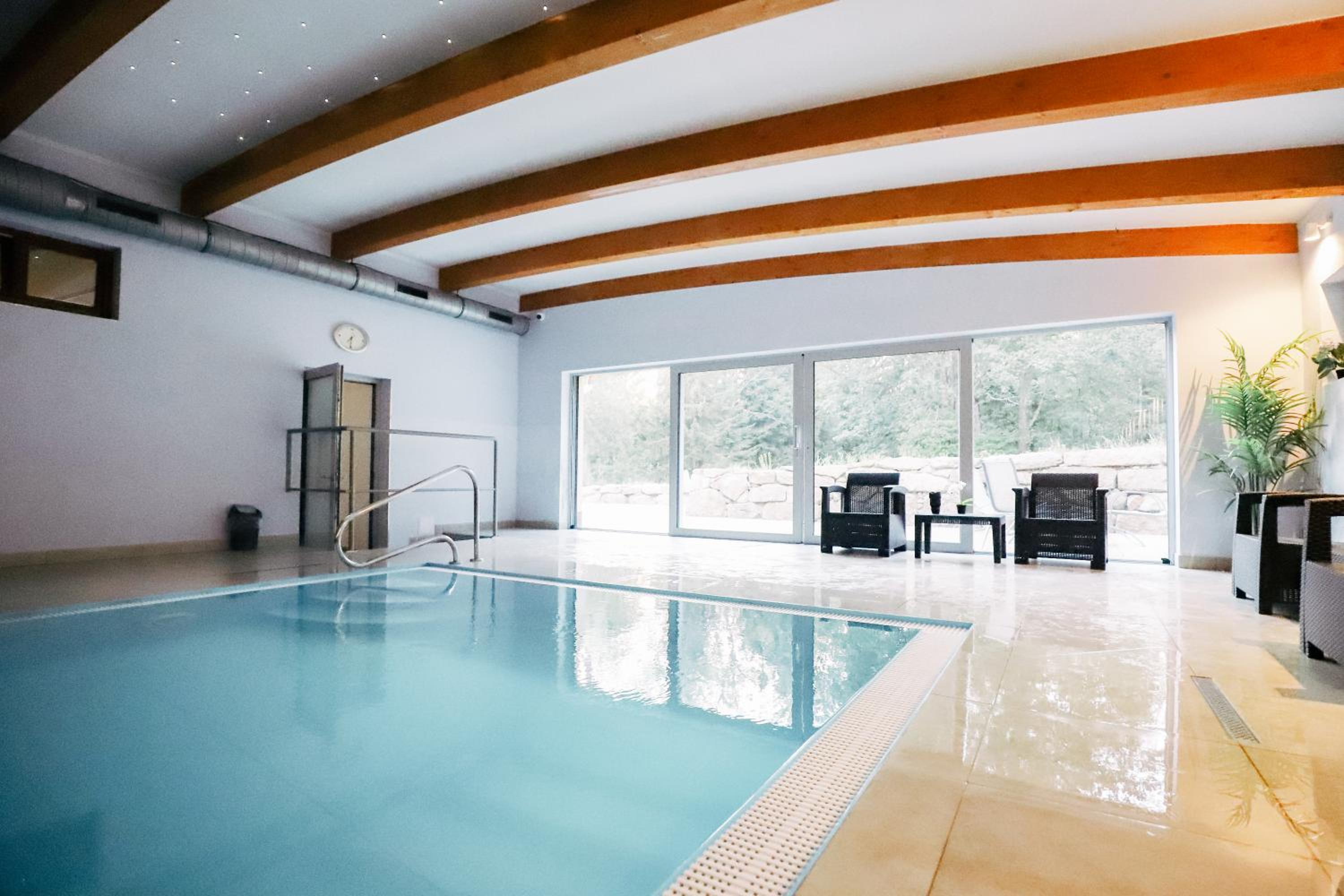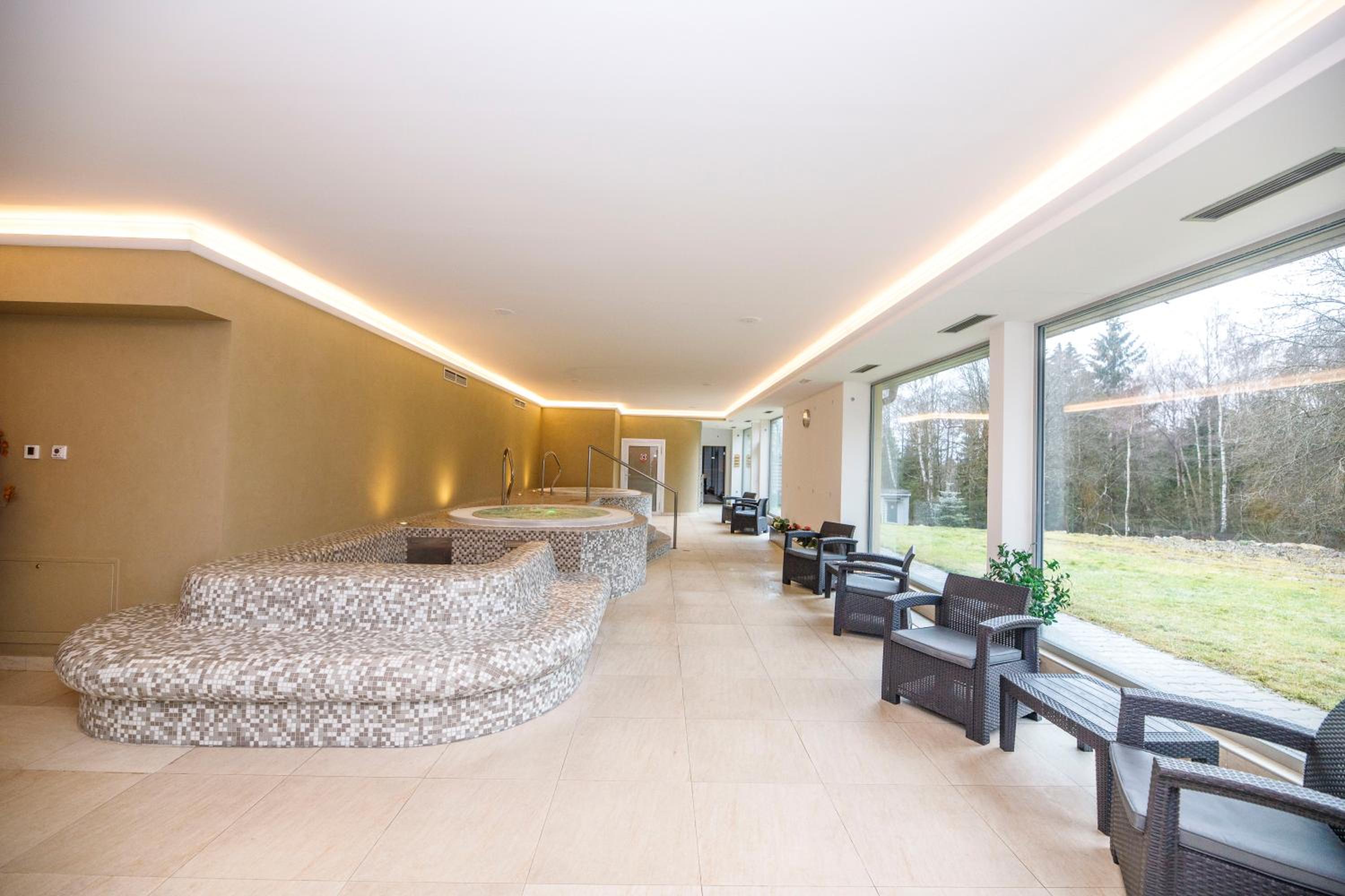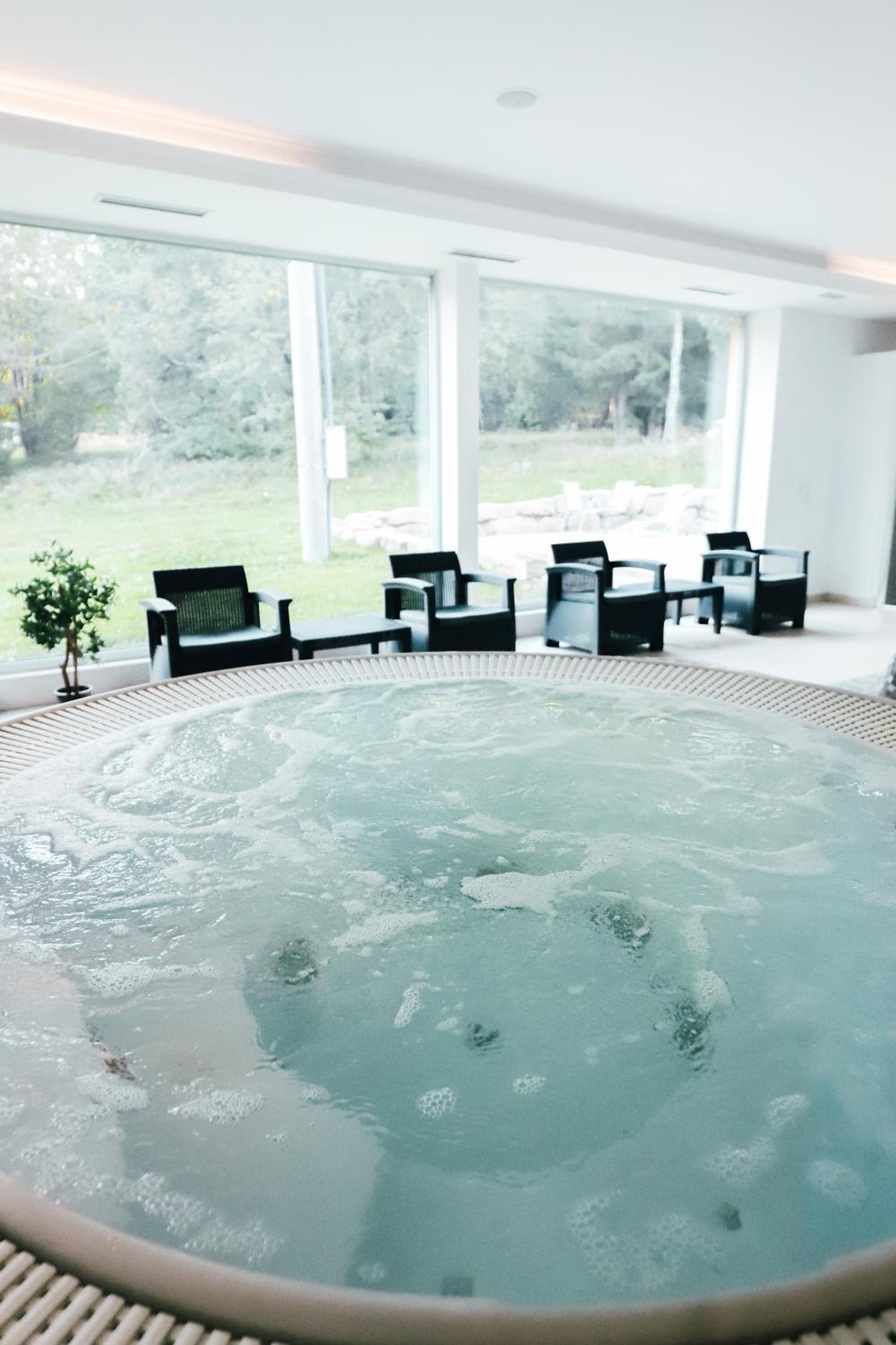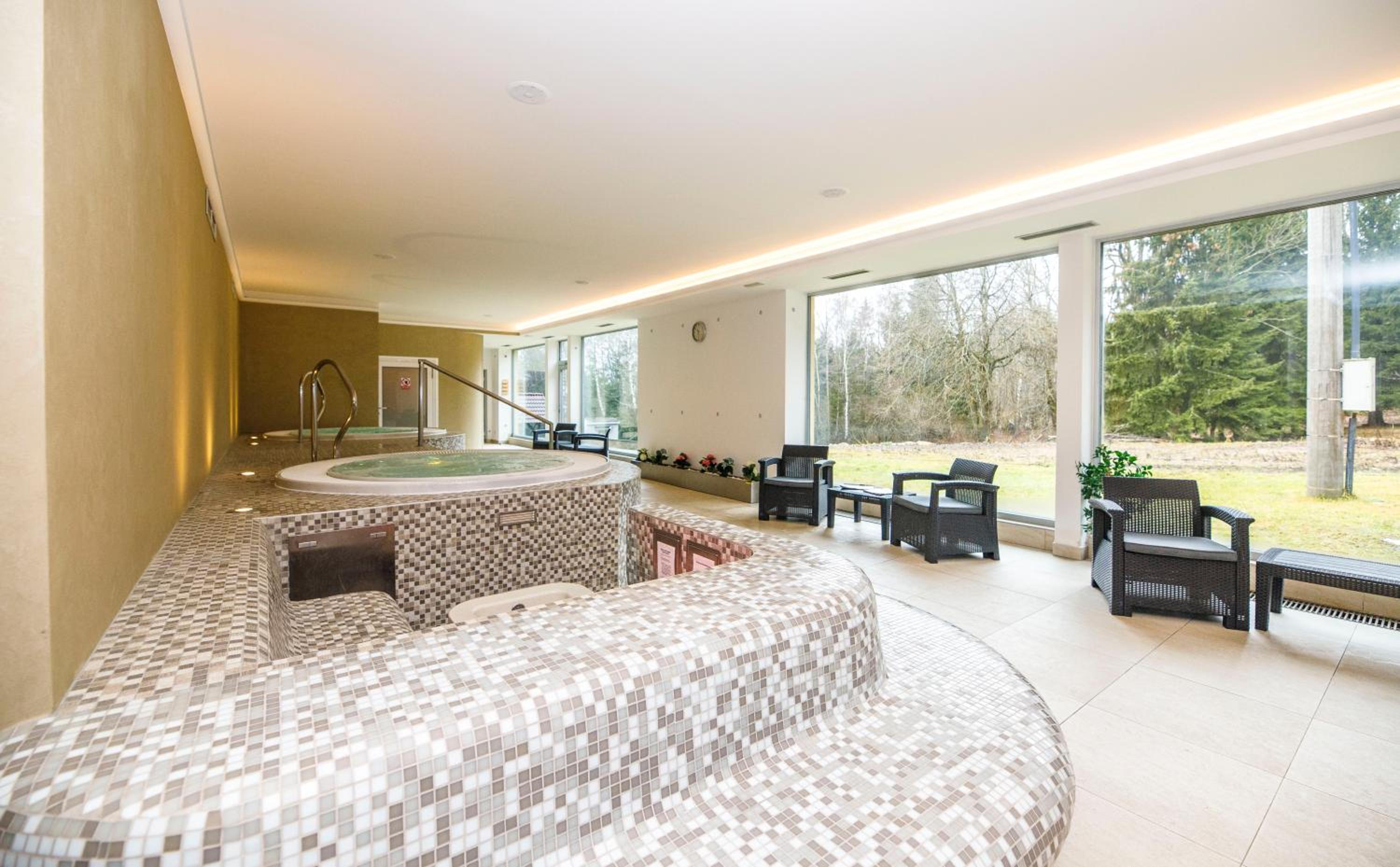 Kameralny hotel w lesie-cisza, spokoj, duzo sciezek do spacerowania. Basen, sauny, jaccuzi i mozliwisc zamowienia masazu. Sniadania urozmaicone, bardzo dobre obiady. Przemily personel. Czysto. Polecam na spokojny wypoczynek