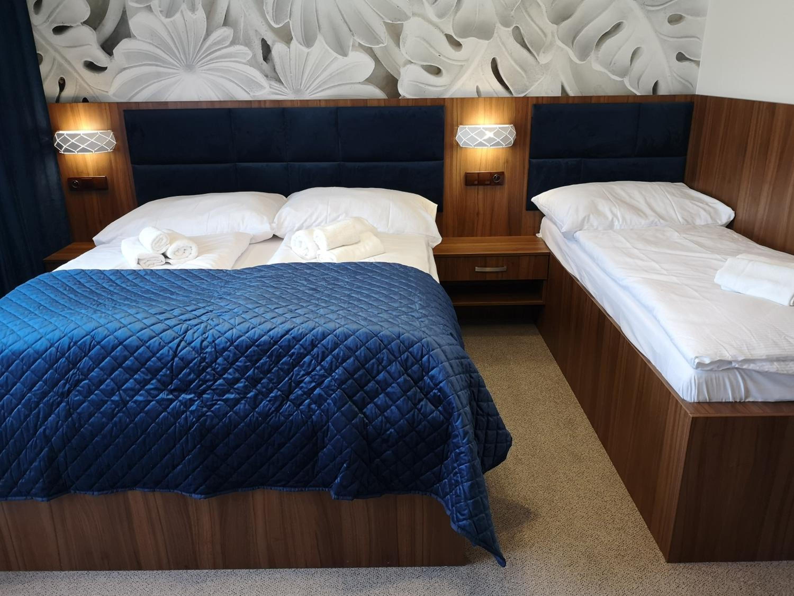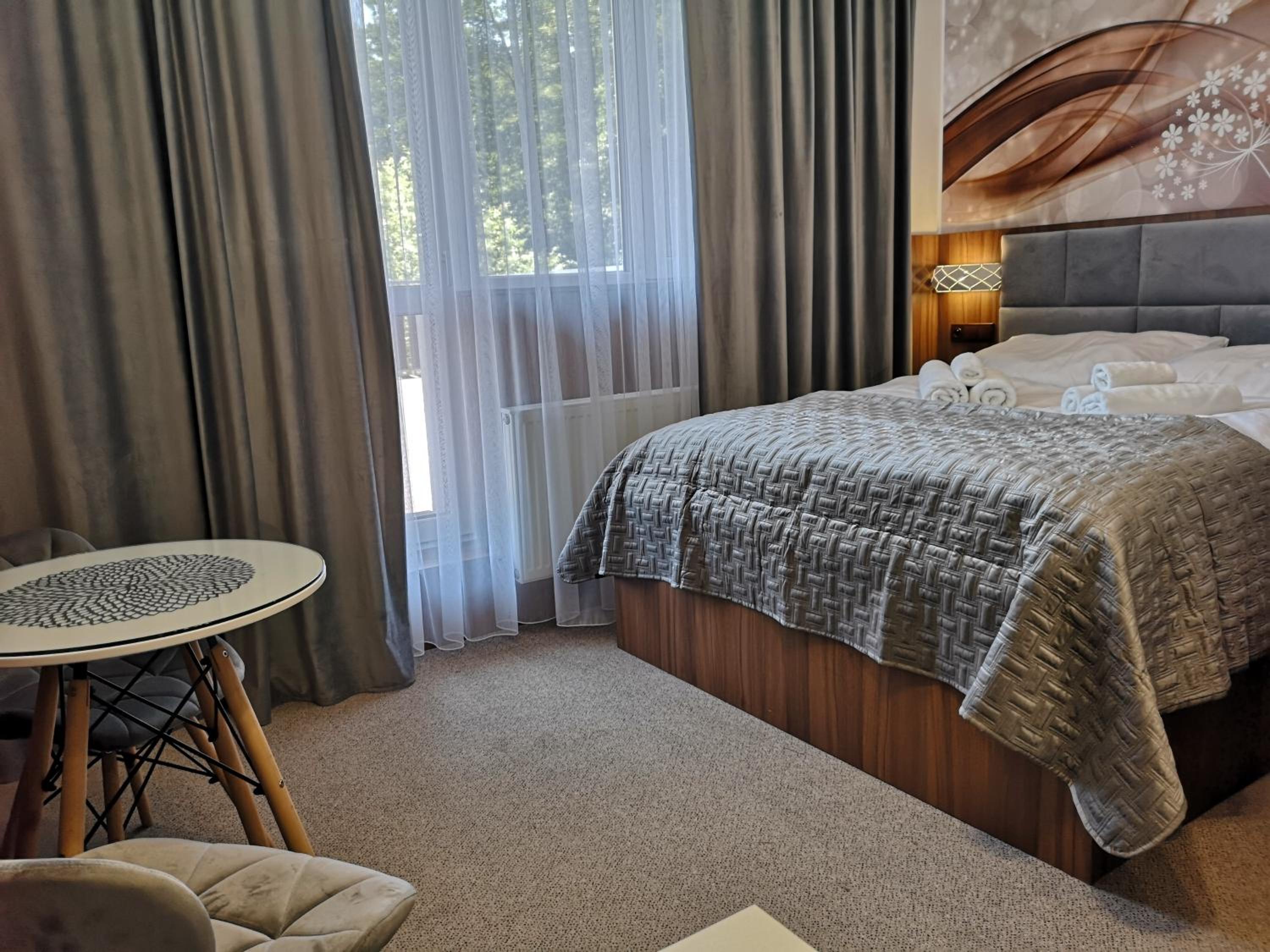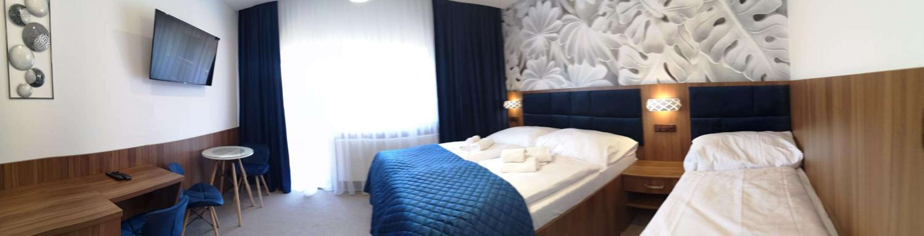Nowoczesny pokój z bardzo wygodnymi łóżkami, pyszne jedzenie w hotelowej restauracji