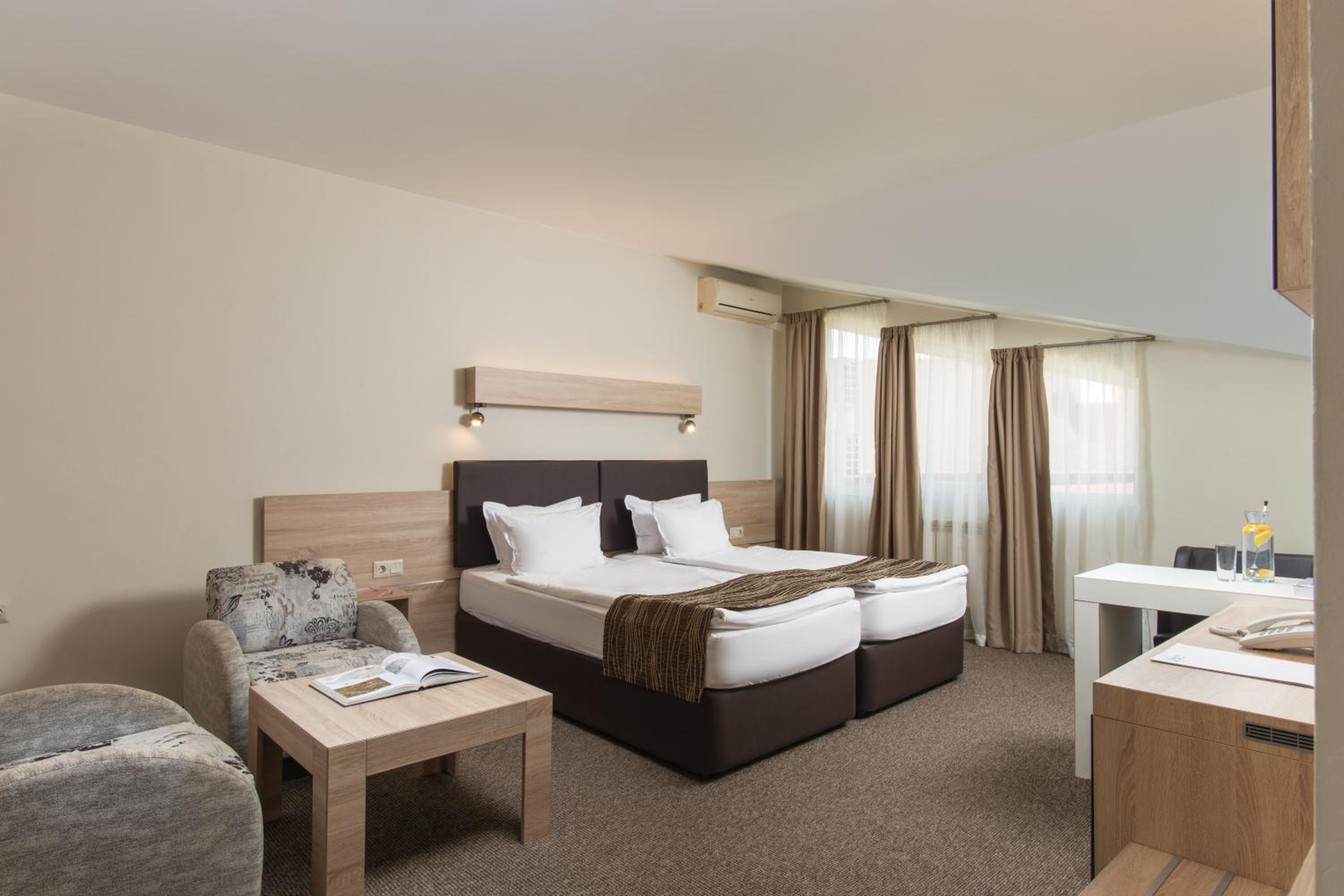 Hotel Complex Jasmin offers 54 rooms and 7 luxury flats, all elegantly furnished with modern amenities including mini bars and TV sets. The comfortable stay is complemented by the beautiful views of Vitosha Mountain.