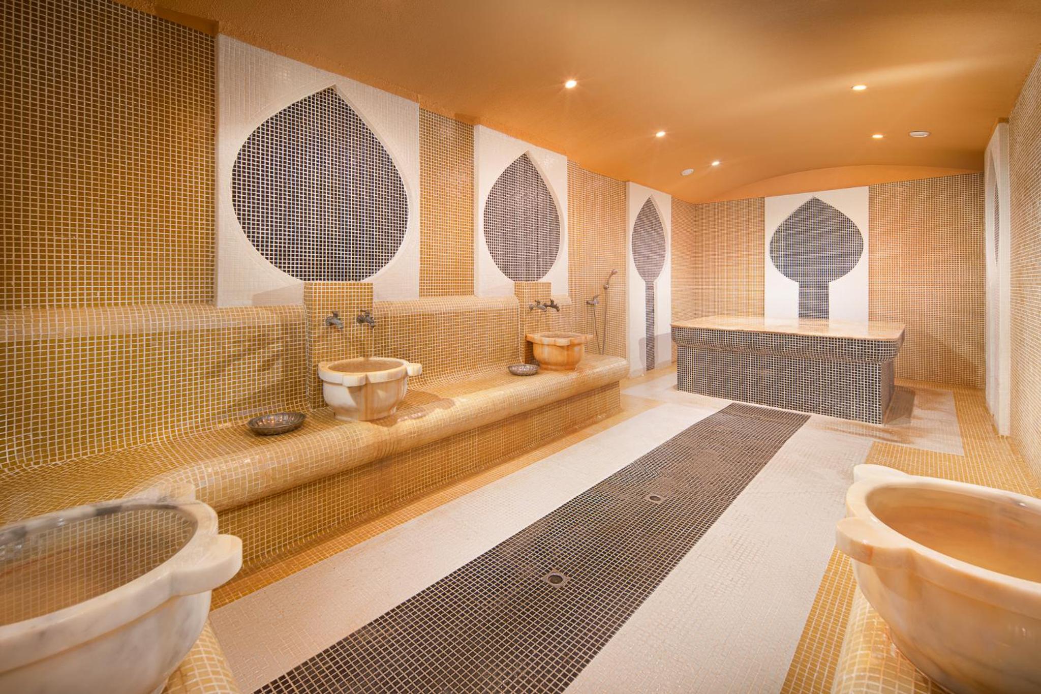 Unwind in style at our hotel with indoor and outdoor swimming pools featuring natural thermal water. Pamper yourself at the spa center offering a sauna, hammam, and rejuvenating massage services.