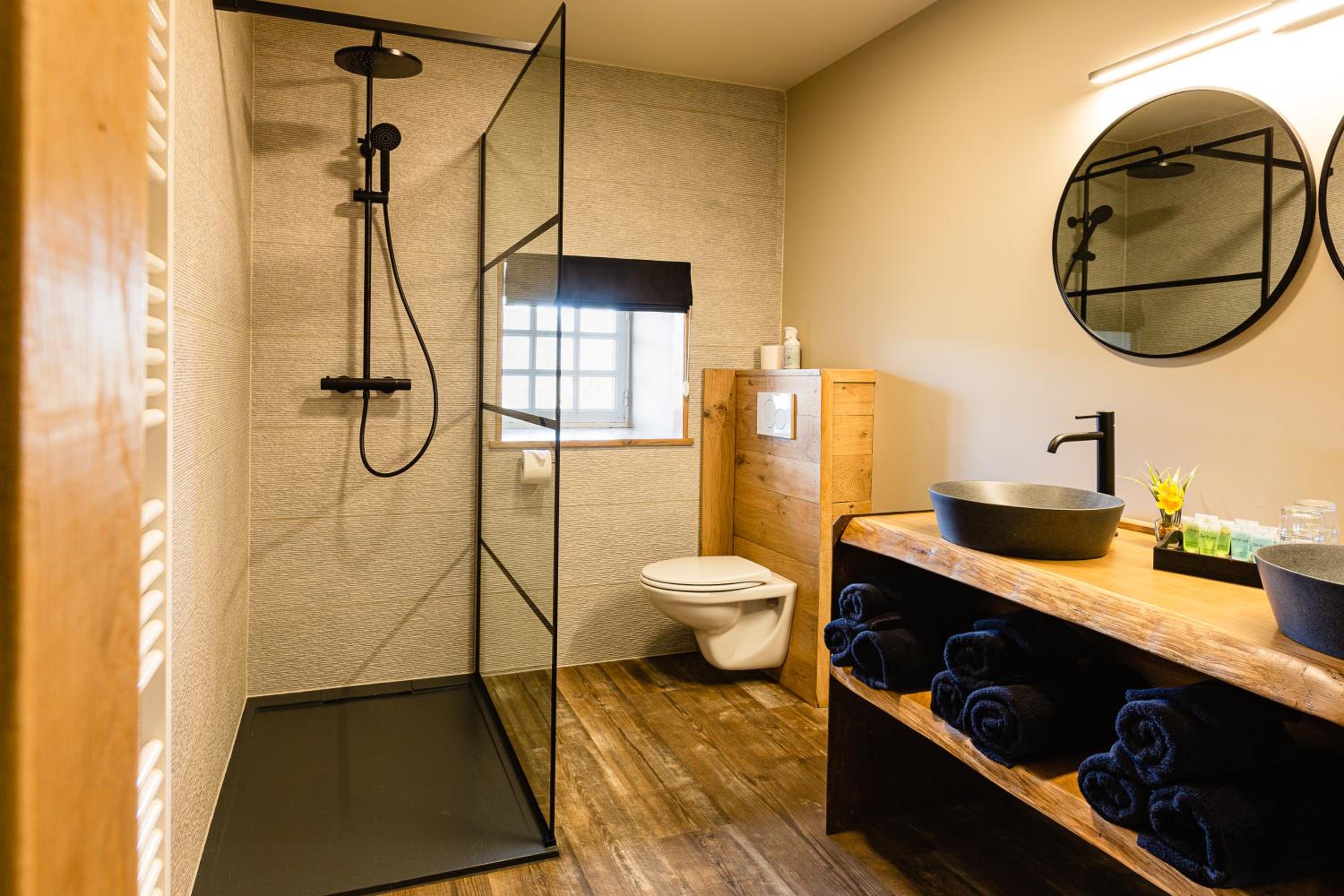 Het restaurant en ontbijt waren altijd zeer lekker en er is variatie. Ook hadden wij een kamer die ruim genoeg was voor 2 personen en sprak de uitbater ook Nederlands. De inrichting, decoratie, uitzicht, terras maken de accomodatie gezellig en sfeervol. Ook wanneer er last-minute een vraag werd gesteld in verband met reservatie/ontbijt werd meteen gekeken om dit nog te kunnen regelen de dag zelf of de avond voordien. Bediening in het restaurant is ook zeer vriendelijk en behulpzaam. Ook de TV op de kamer was een pluspunt. Durbuy was niet zo ver om te rijden, we zijn er ook gaan Kajakken, hebben een namiddagje Durbuy gedaan om te verkennen. Hier konden we ook minigolfen en waren er diverse eetlocaties of terrasjes om te drinken. Hier is parking wel wat lastiger te vinden.