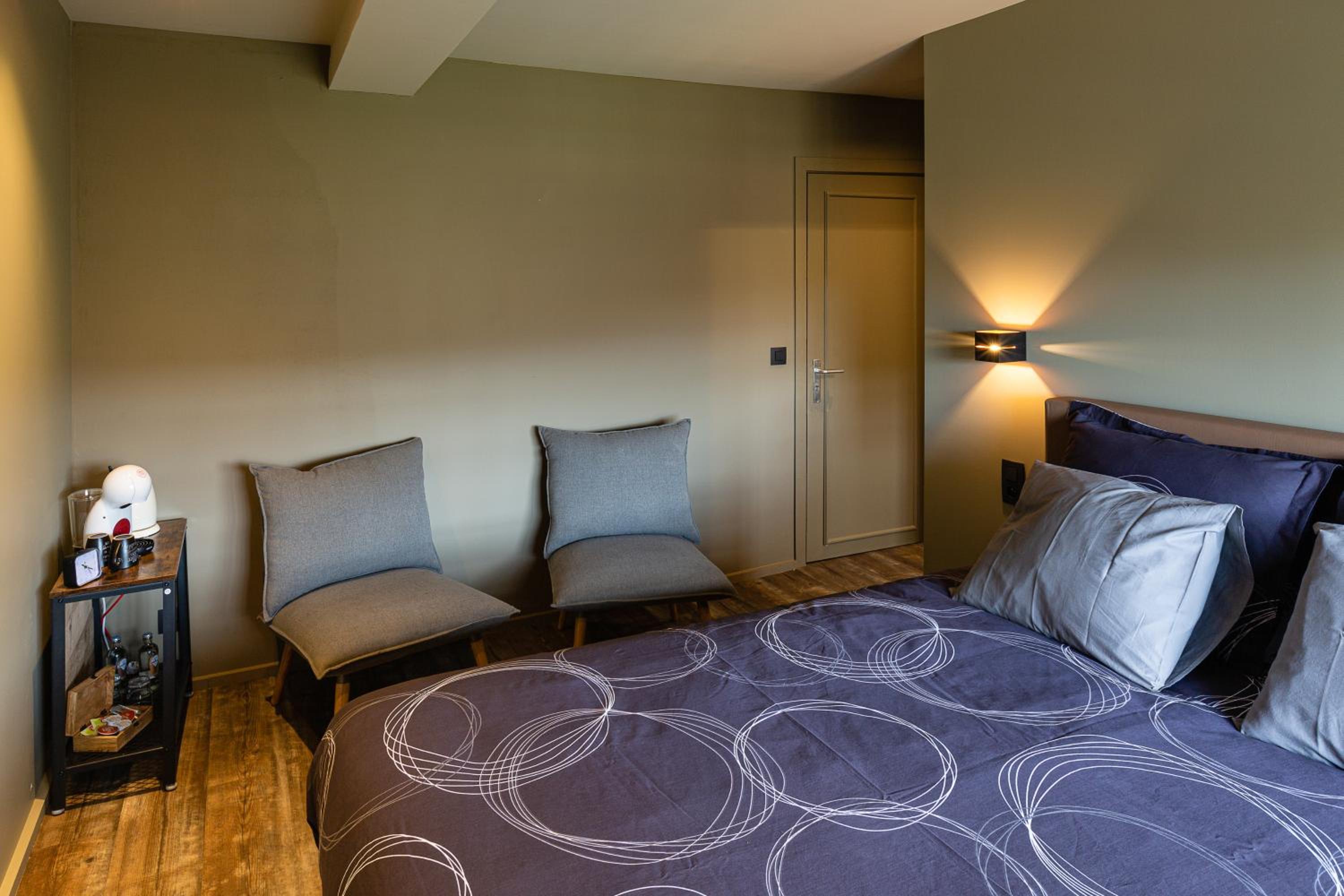 Het was zeer warm weer en hierdoor hadden wij persoonlijk de behoefte aan een airco/waaier,... om de kamer te kunnen laten koelen want het werd er zeer warm om te kunnen slapen. Zo wouden we dan graag 's Avonds/ 's Nachts als het wat afgekoeld was de ramen open zetten maar aangezien er geen vliegenraam voorzien is, kwamen er dan allemaal muggen in onze kamer binnen met veel muggenbeten als gevolg. Wat wij ook aangenaam vinden is om in de vroege avond gezellig samen iets te gaan drinken en een spelletje te spelen. Wij zagen op de site dat dit mogelijk was om nog iets te drinken maar volgens ons kon dit enkel in het restaurant wat elke avond volzet was. Dit hadden we misschien wel moeten navragen. Maar 2 avonden was het zo dat we dit wouden doen maar dan al tegen 18u/19u op de kamer zaten aangezien er geen plek was en het druk was voor het personeel. Op onze laatste avond (3de avond) zijn we dan iets gaan eten in het restaurant maar naar ons gevoel ervaarde het personeel een hoge druk en hierdoor voelden we ons ook iets minder welkom en hebben we snel gegeten zonder iets te blijven drinken na het eten. Het eten zelf was wel zeer lekker het personeel deed echt zijn/haar best om aan de wensen van de klanten zo snel mogelijk te voldoen. Een nadeel wat wij zowel op hotel als in Durbuy zelf ervaarden was de hoeveelheid aan wespen maar hier kon het hotel zelf niks aan doen naar onze mening. Wat we persoonlijk ook minder aangenaam vonden, was dat er parking aan het hotel is maar als je eens een namiddagje weg bent staat die vol met restaurant gasten waardoor gasten van het hotel verder in de straat moeten parkeren en zich 's Avonds laat nog moeten verzetten omdat we liever hebben dat de auto niet gewoon op de openbare weg stond maar op de privéparkinh van het hotel. Misschien is er een optie dat dit aangegeven kan worden naar de restaurant gasten toe dat er bepaalde plekken voorzien zijn voor gasten van het hotel.