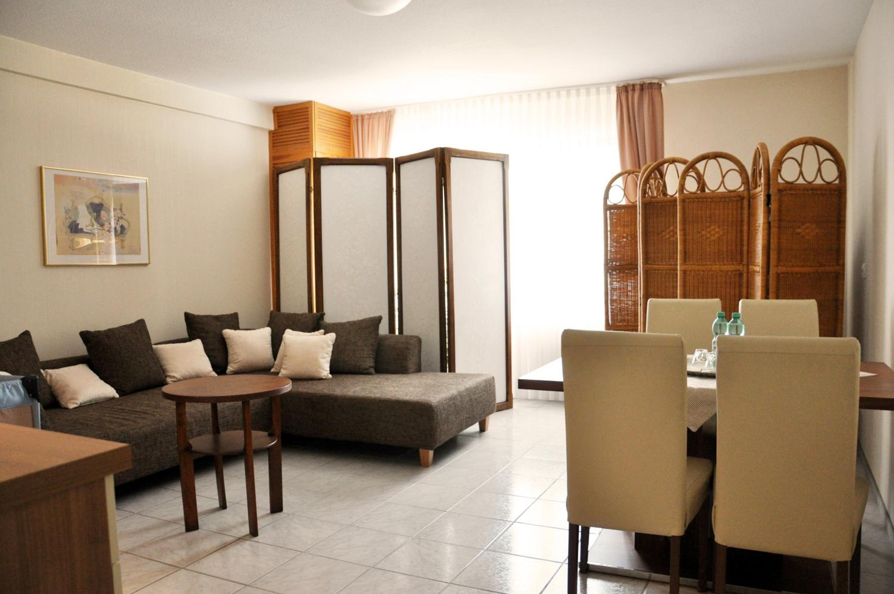 Rustig gelegen. We kregen het zeer ruime appartement toebedeeld. De bedden waren comfortabel en het ontbijt was prima!