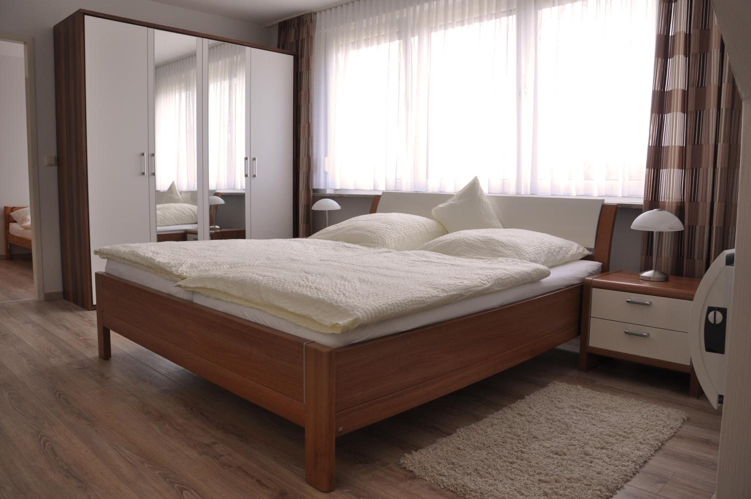 Onze kamer ( mijn man en mij) was raar ingedeeld, vanaf buiten stapte je de badkamer in, dan een deur en onze slaapkamer die erg krap was, maar voor 2 nachten prima. Verder is de inrichting van zowel het appartement als onze kamer wel aan een modernere stijl toe, ik waande me in de jaren 60