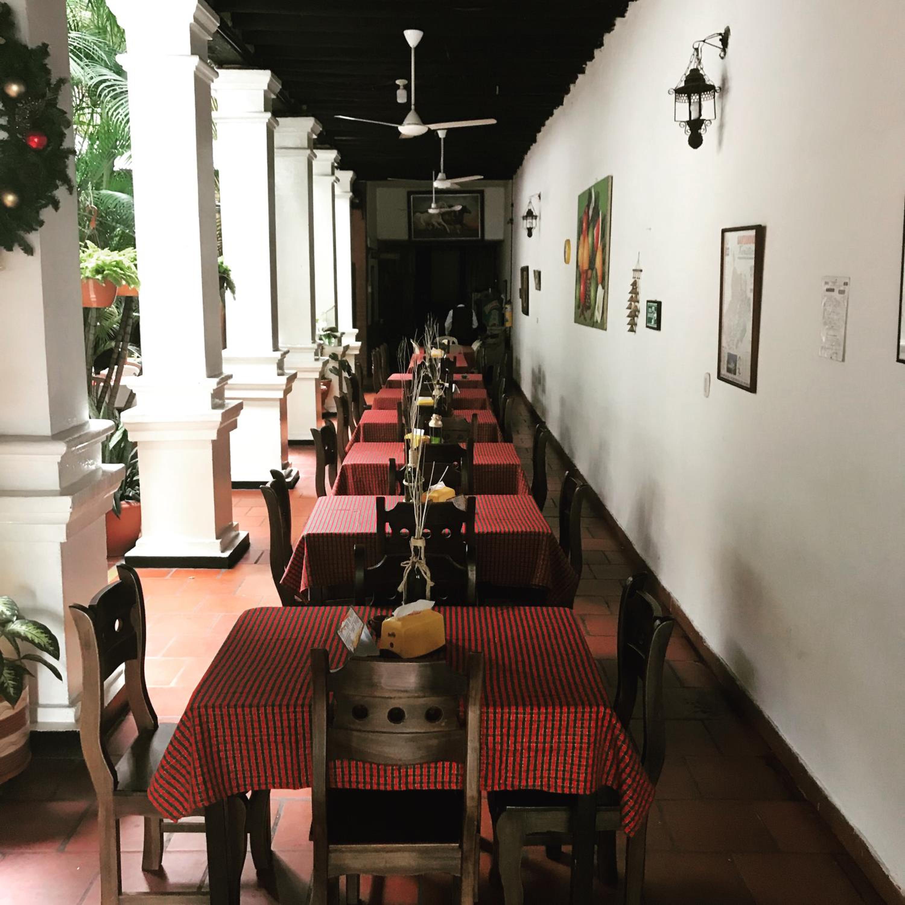 Located directly on the main square in Giron and close to many restaurants, bakeries and shops. A colonial building with an expansive open courtyard on the first level used for dining. Second floor rooms circle the first level courtyard.