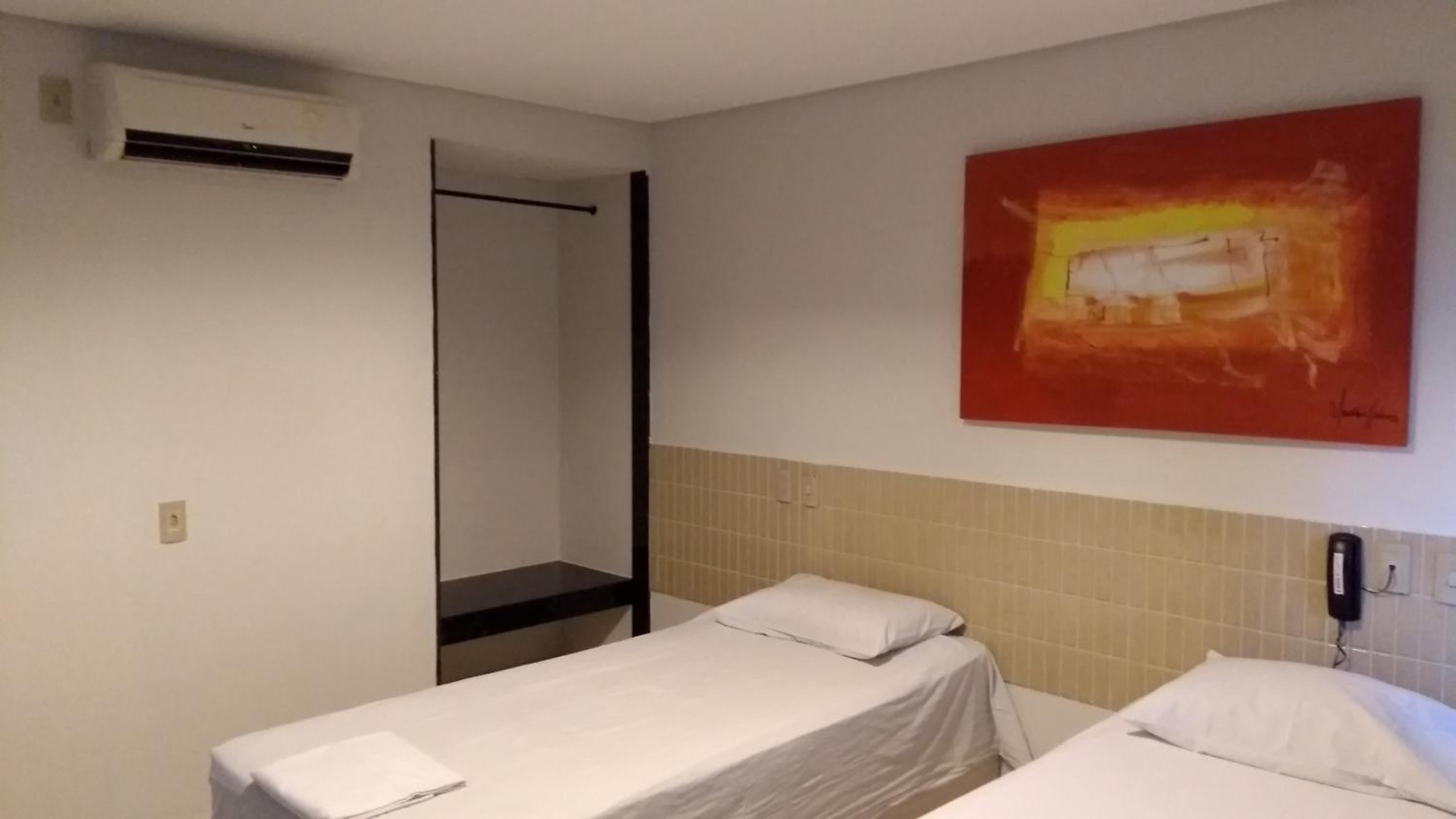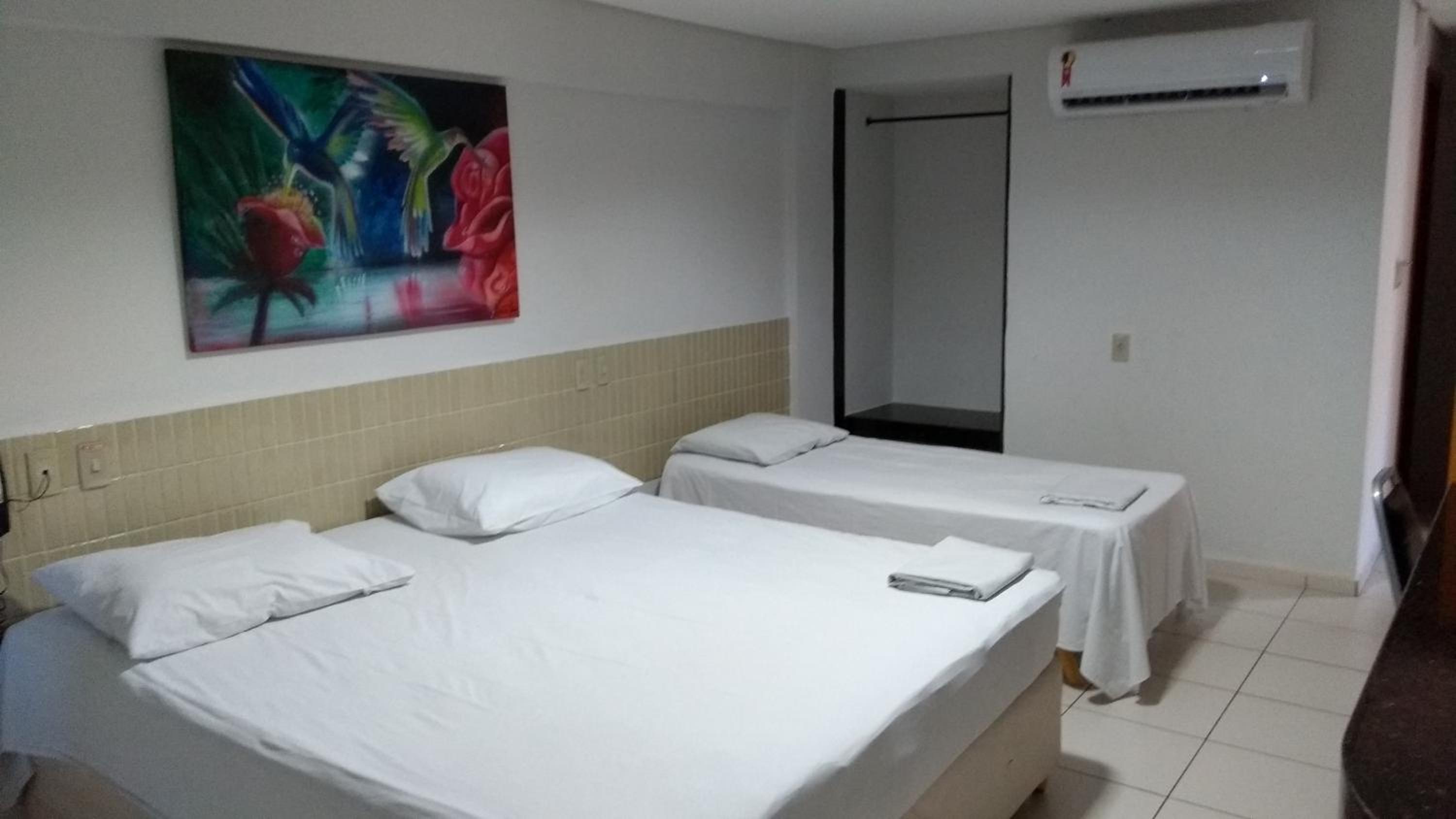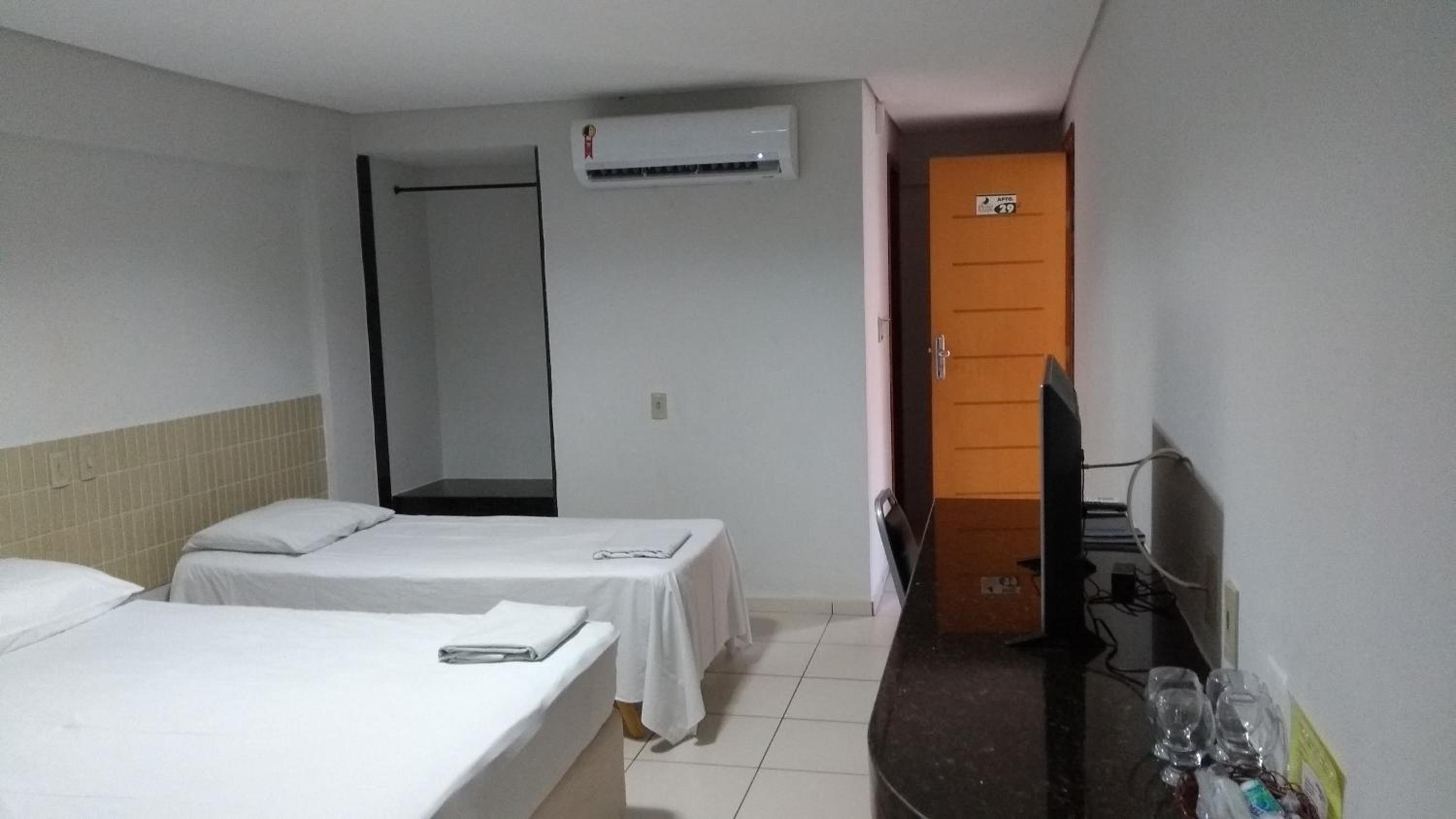 Each room at Hotel Parnaiba is thoughtfully equipped with modern amenities including air conditioning, a flat-screen TV, and a private patio overlooking the city. Guests can unwind in comfort with cozy bed linens and towels provided.