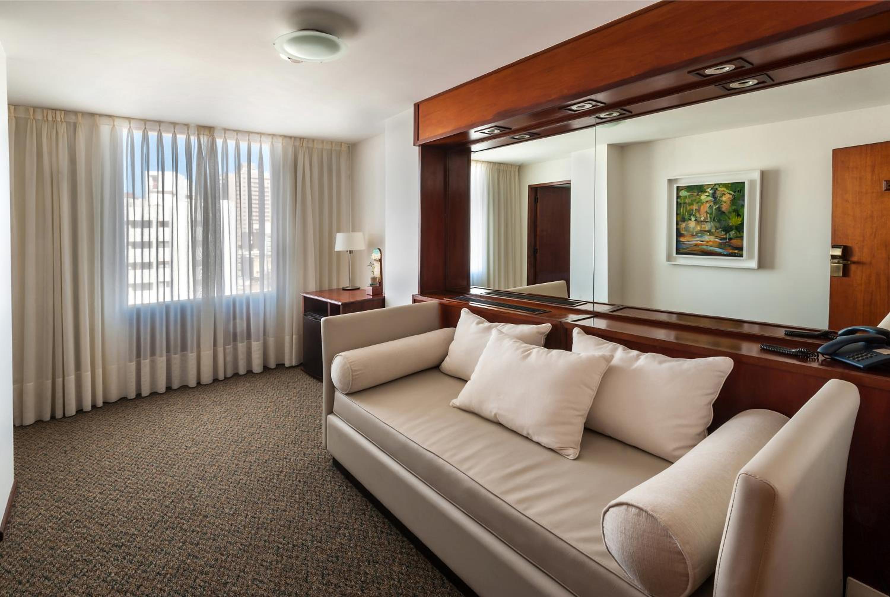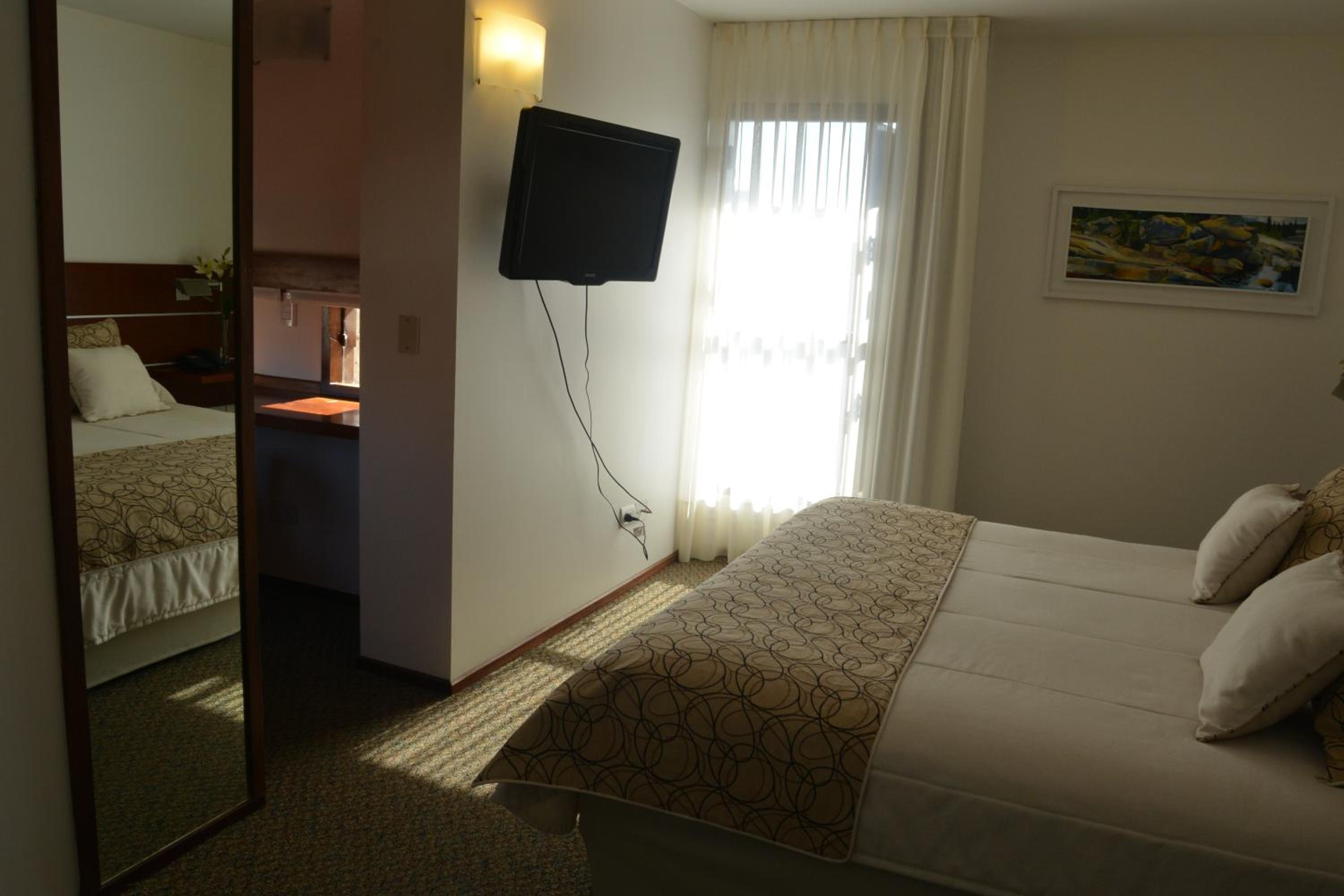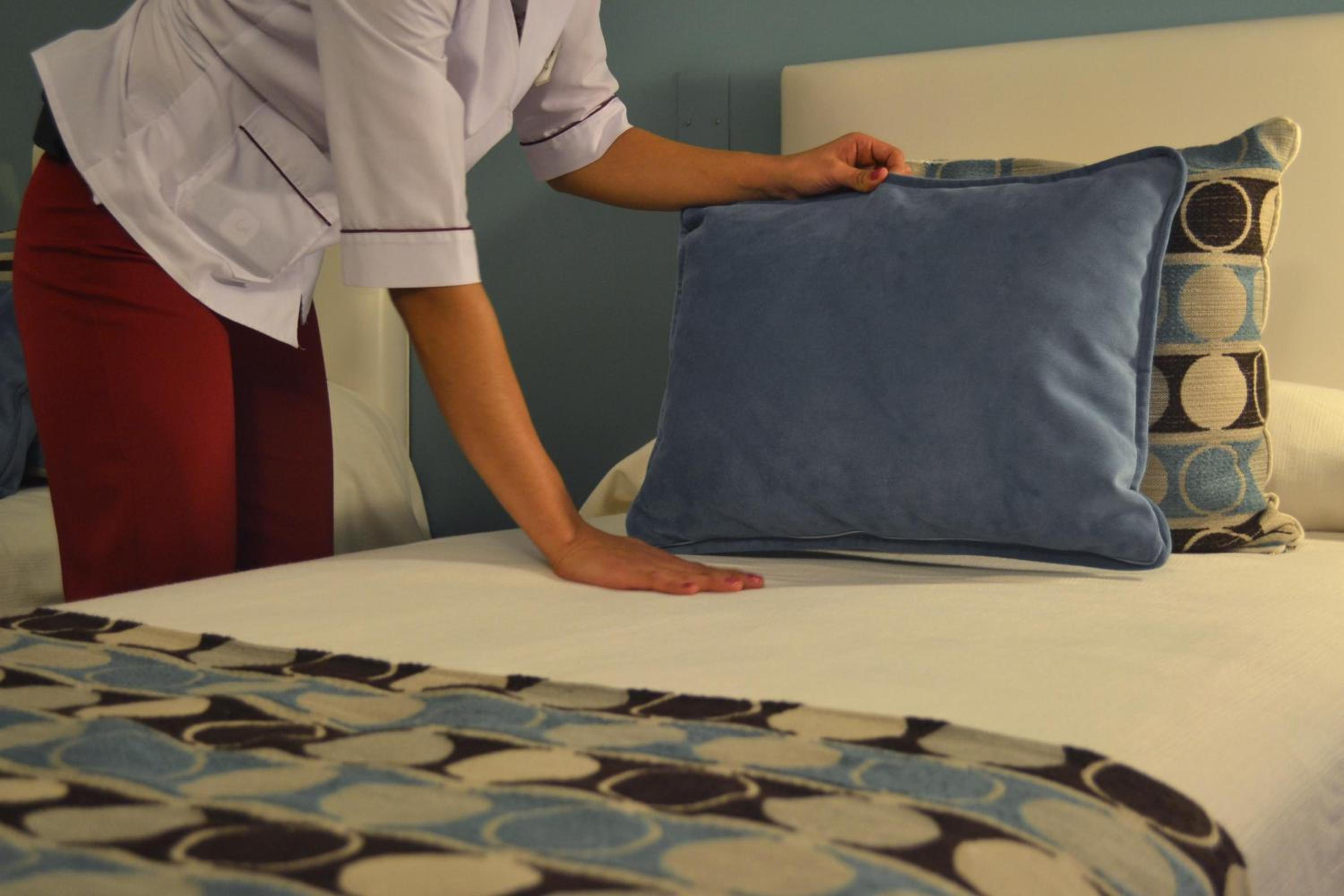 buena cama y almohadas. Excelente limpieza y baño amplio. Quizás eliminaría las cortinas del baño por vidrio o similar.