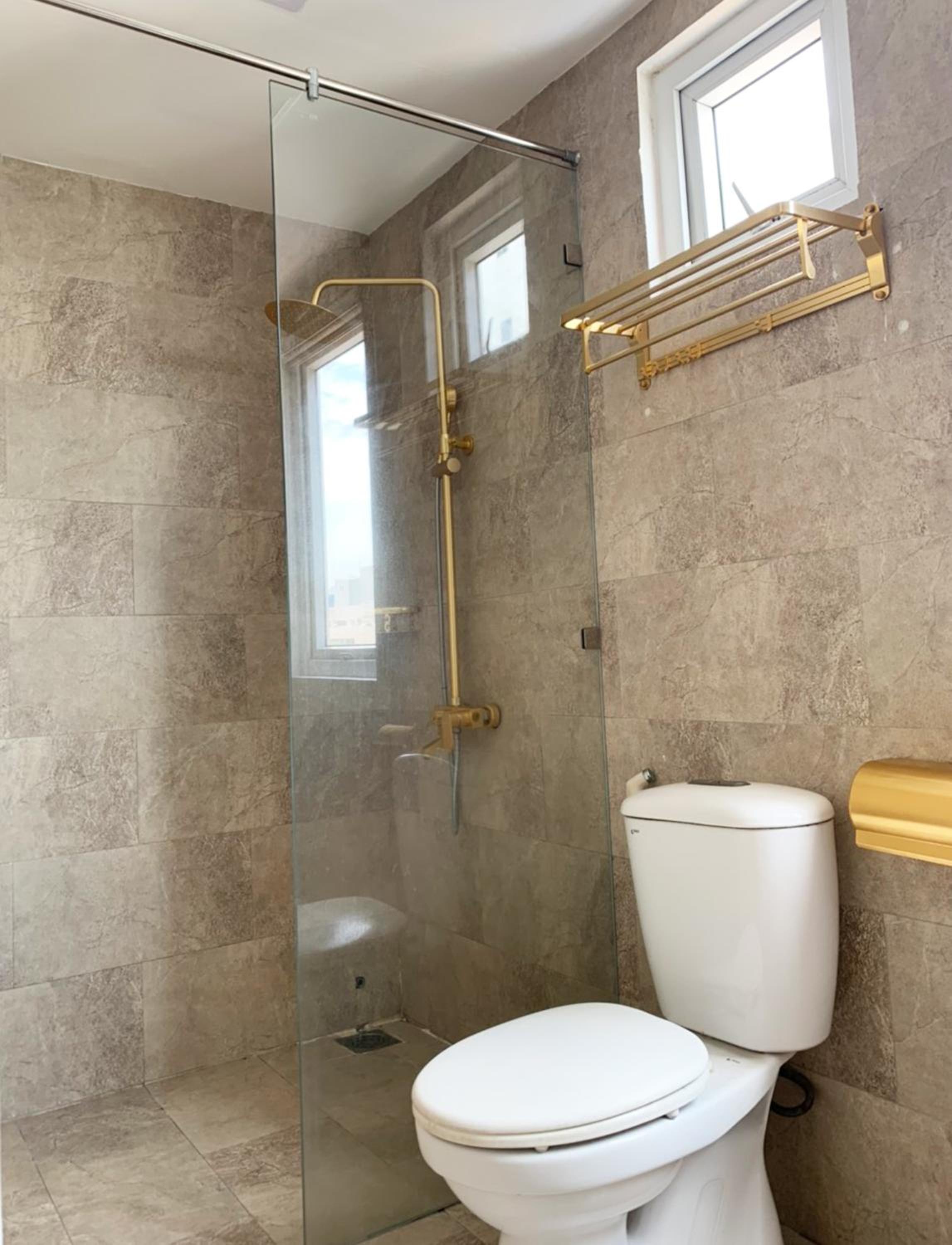 In the room you have all facilities like at 5 star room hotel: towels, bathrobes, slipers, shampoo, shower gell, soap, brushteeth, toothpaste, comb, hairdryer.