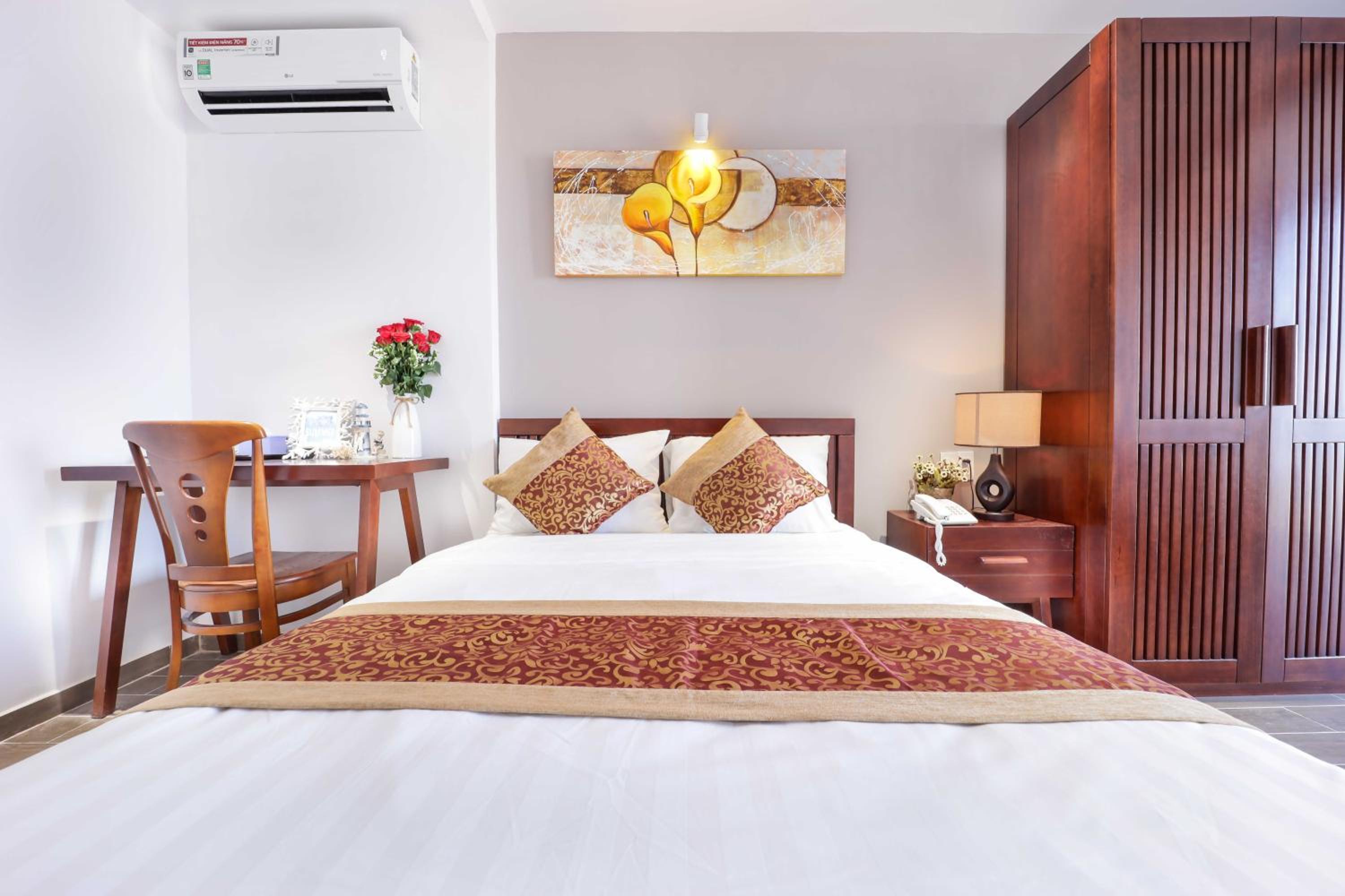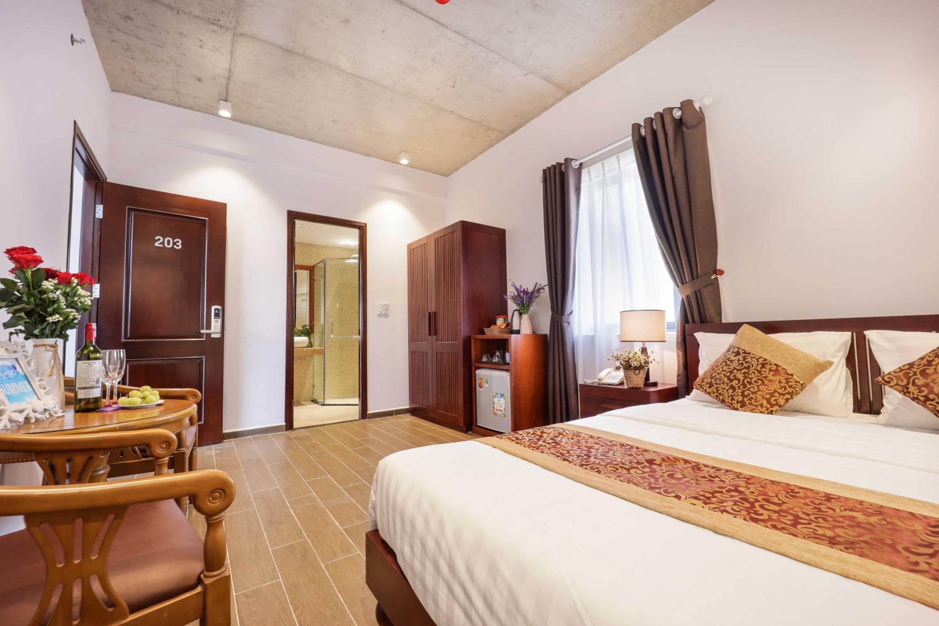 Indulge in the modern comforts of the air-conditioned rooms equipped with free WiFi, flat-screen TV, and a minibar. With attentive room service and a 24-hour front desk, your stay at The Shine Hotel Da Nang will be nothing short of luxurious.