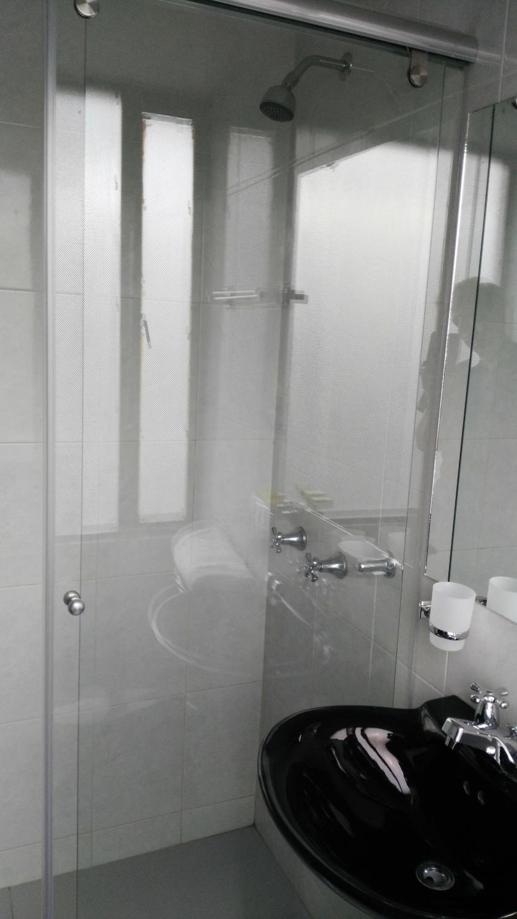La organizacion de la habitacion, el cabecero de la cama contra la ventana, entra todo el ruido de la calle, la regadera de la ducha dañada, la puerta hacia las areas comunes no aisla la luz fria entre los dos espacios
