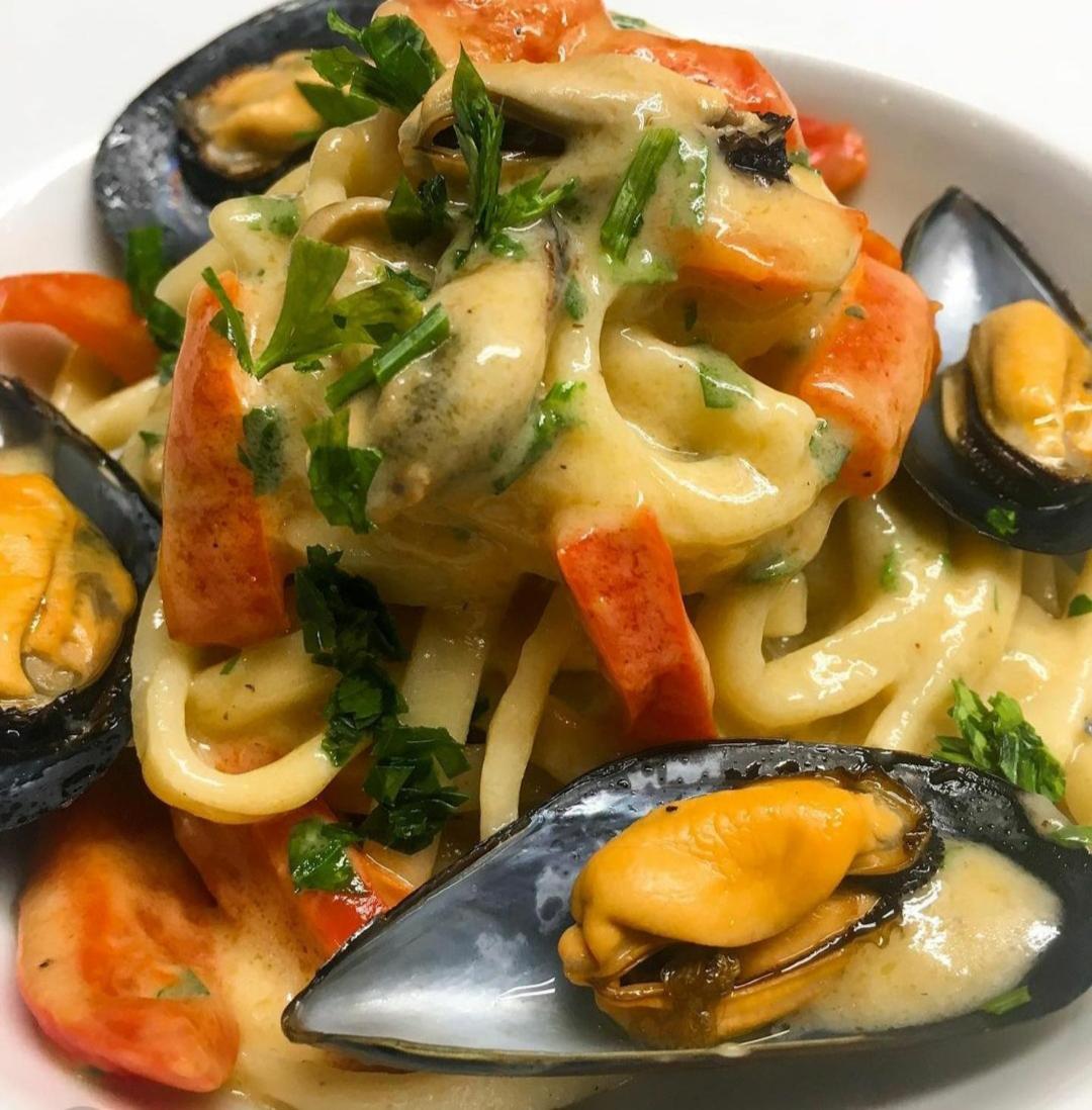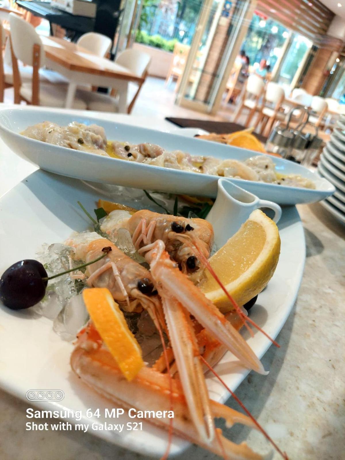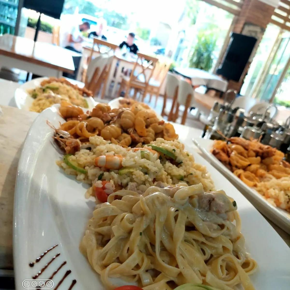 Ужин по меню - салат на выбор, основное блюдо (паста, морепродукты, пицца, мясо и т.д.). Порции огромные и очень вкусные.