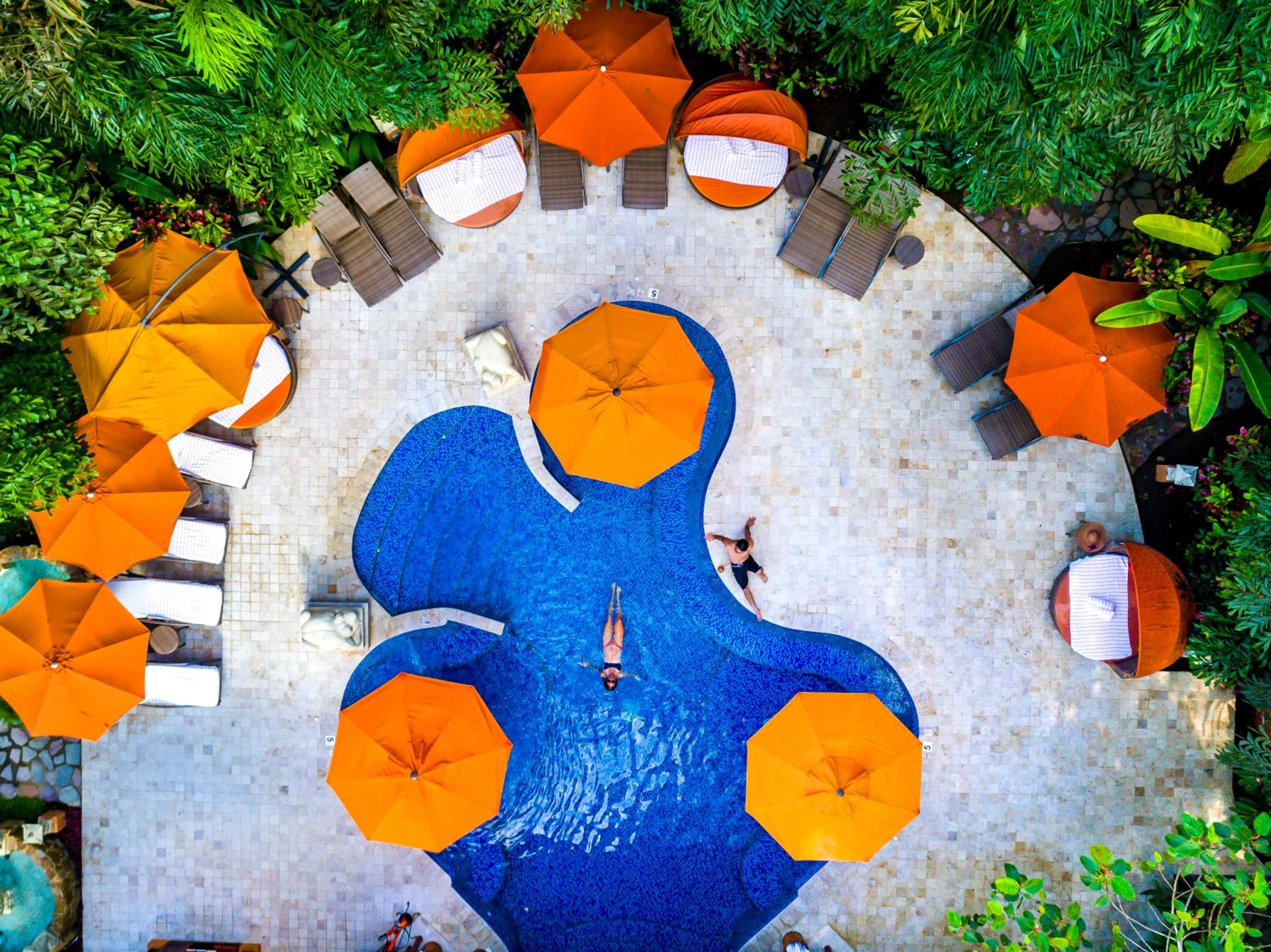 Private Bungalows with Plunge Pools: Enjoy the privacy and luxury of private bungalows with hand-woven fabrics, wood furniture, internet, and flower gardens.
