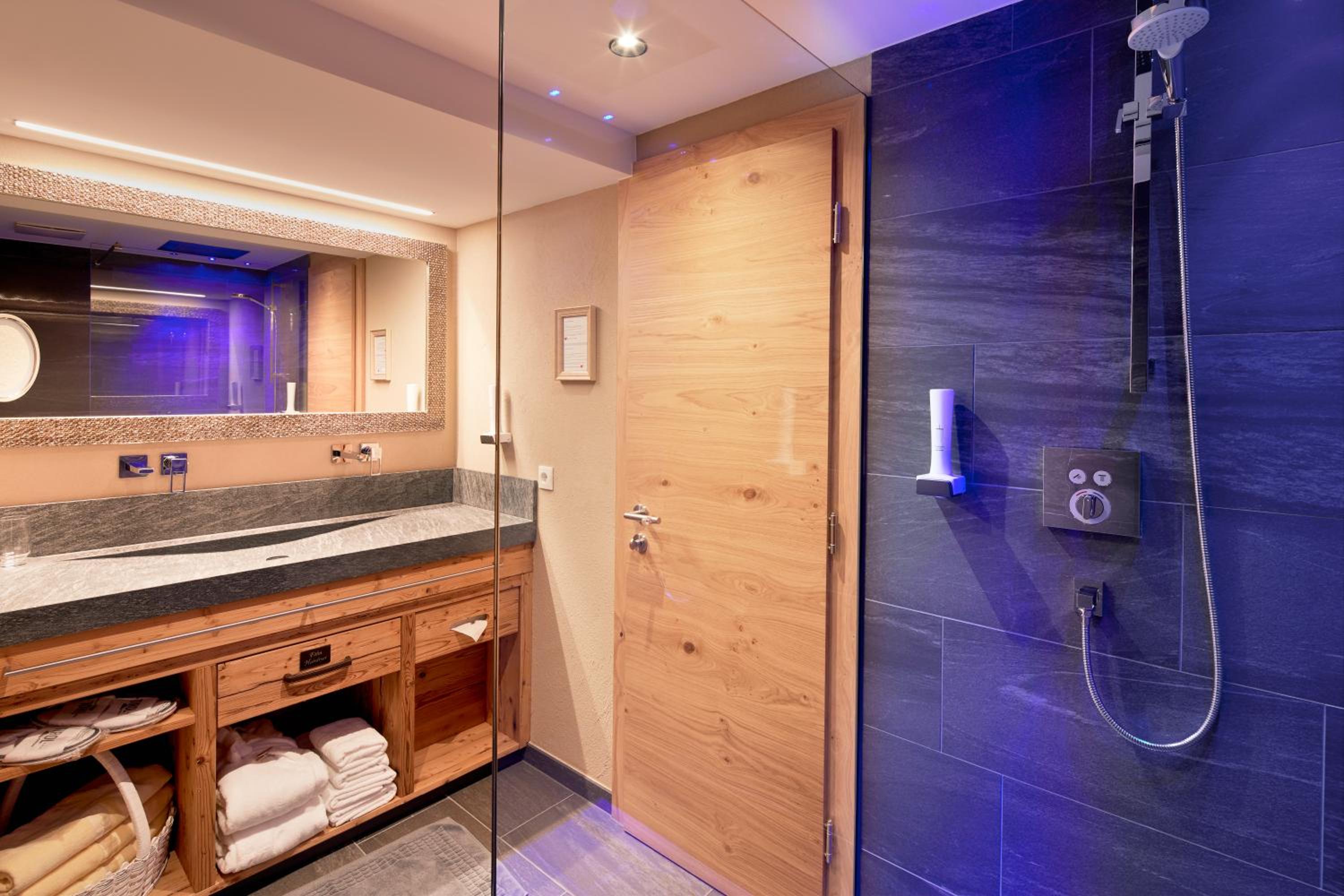 Stylish Spa Area: Indulge in relaxation with an indoor pool, hot tub, gym with mountain views, and various saunas and steam baths.