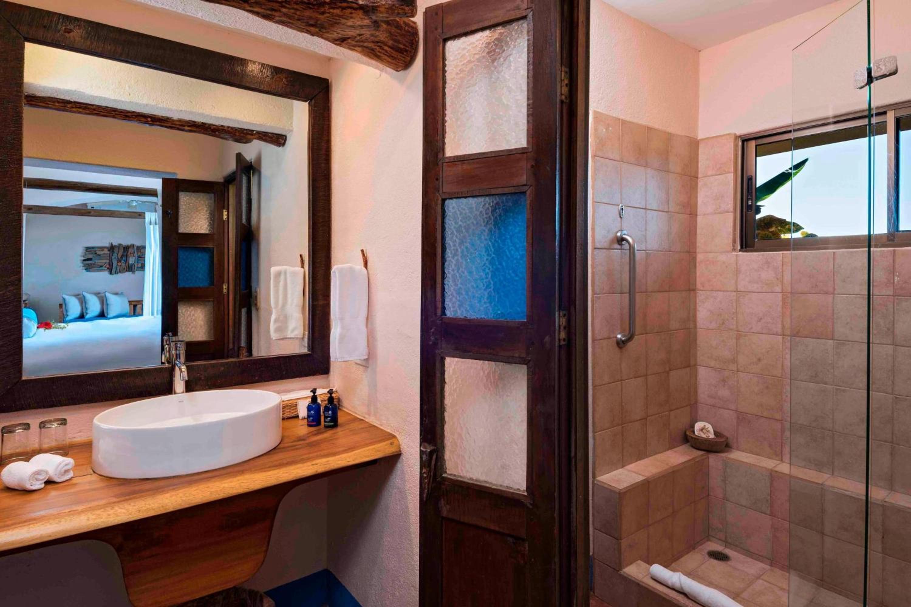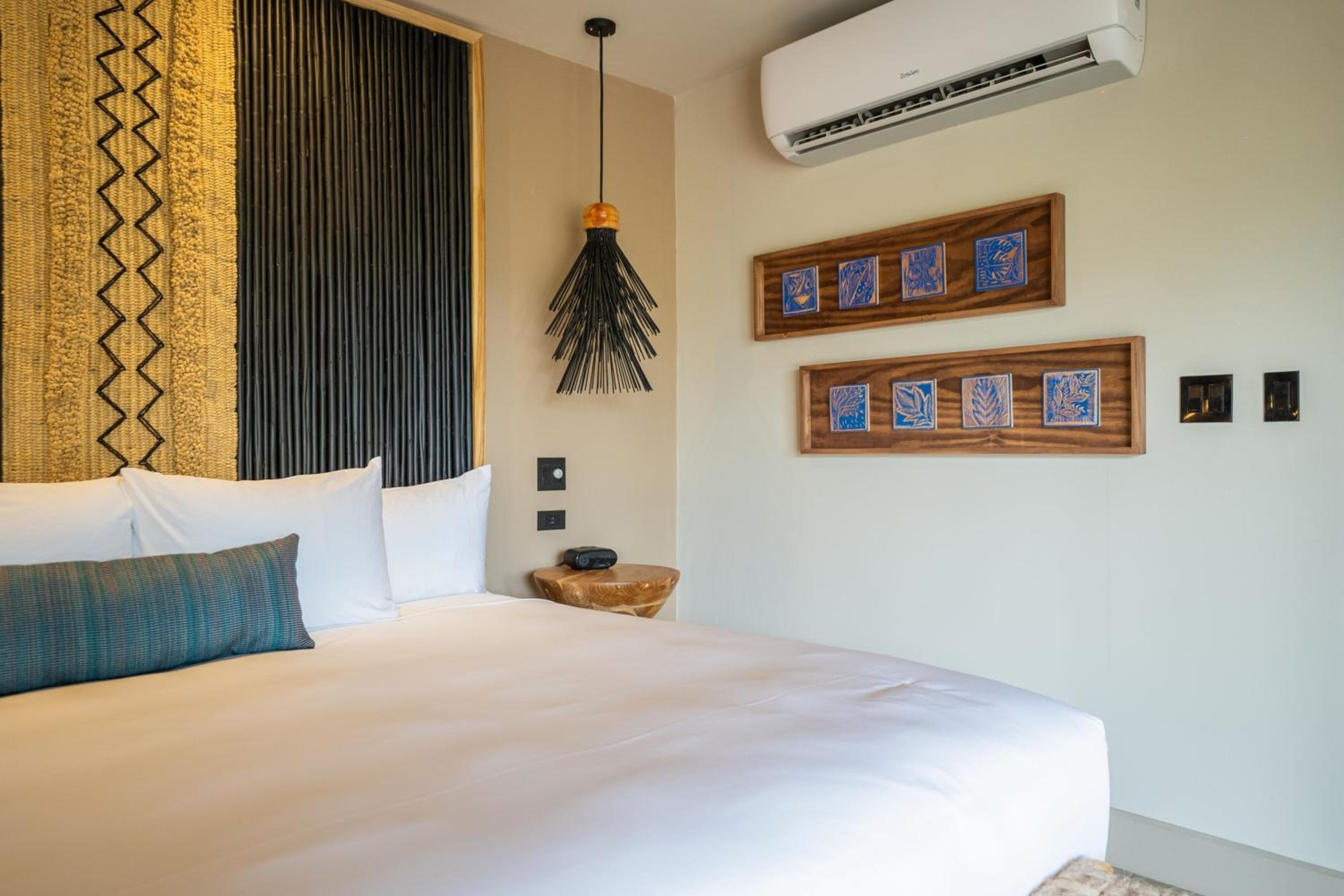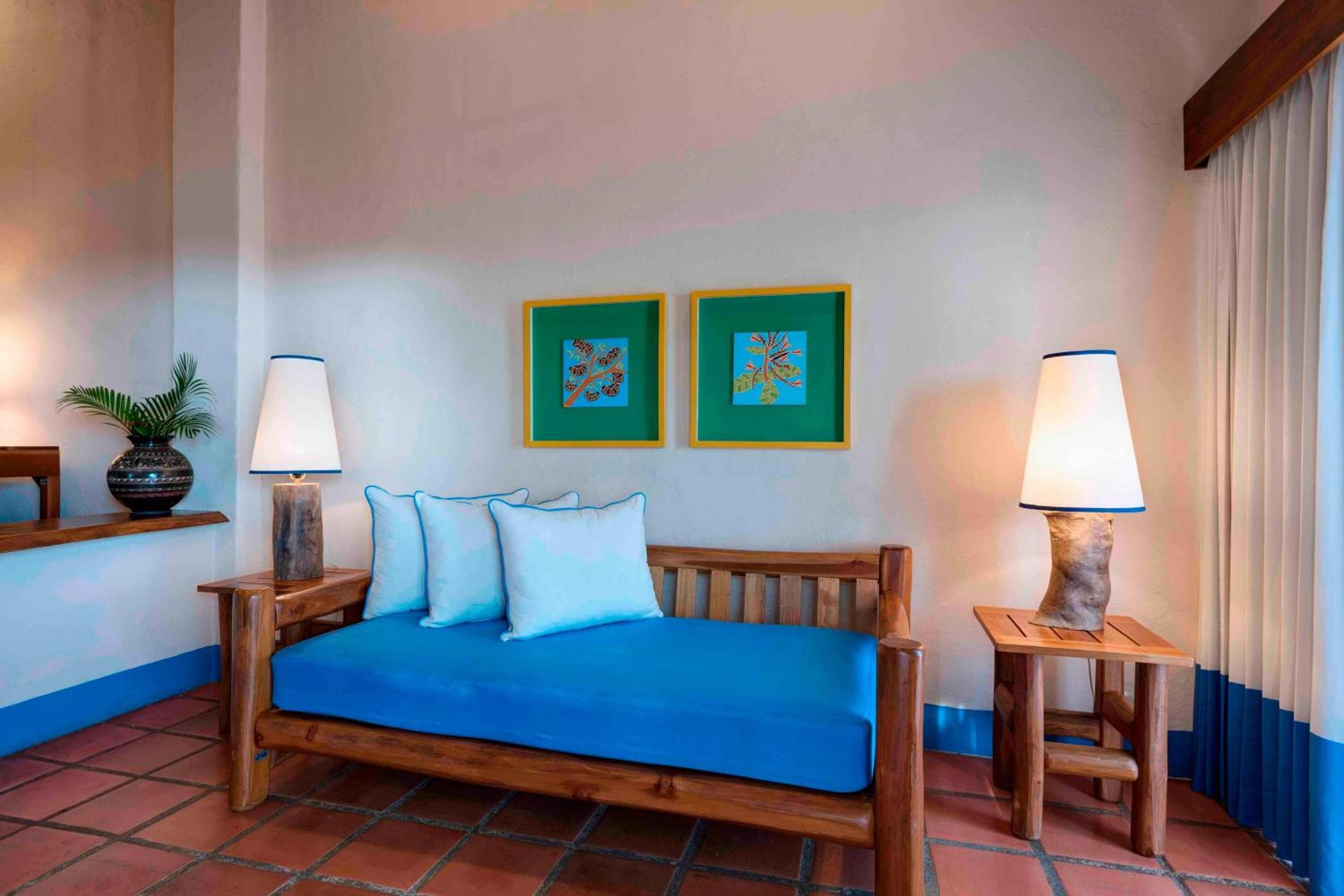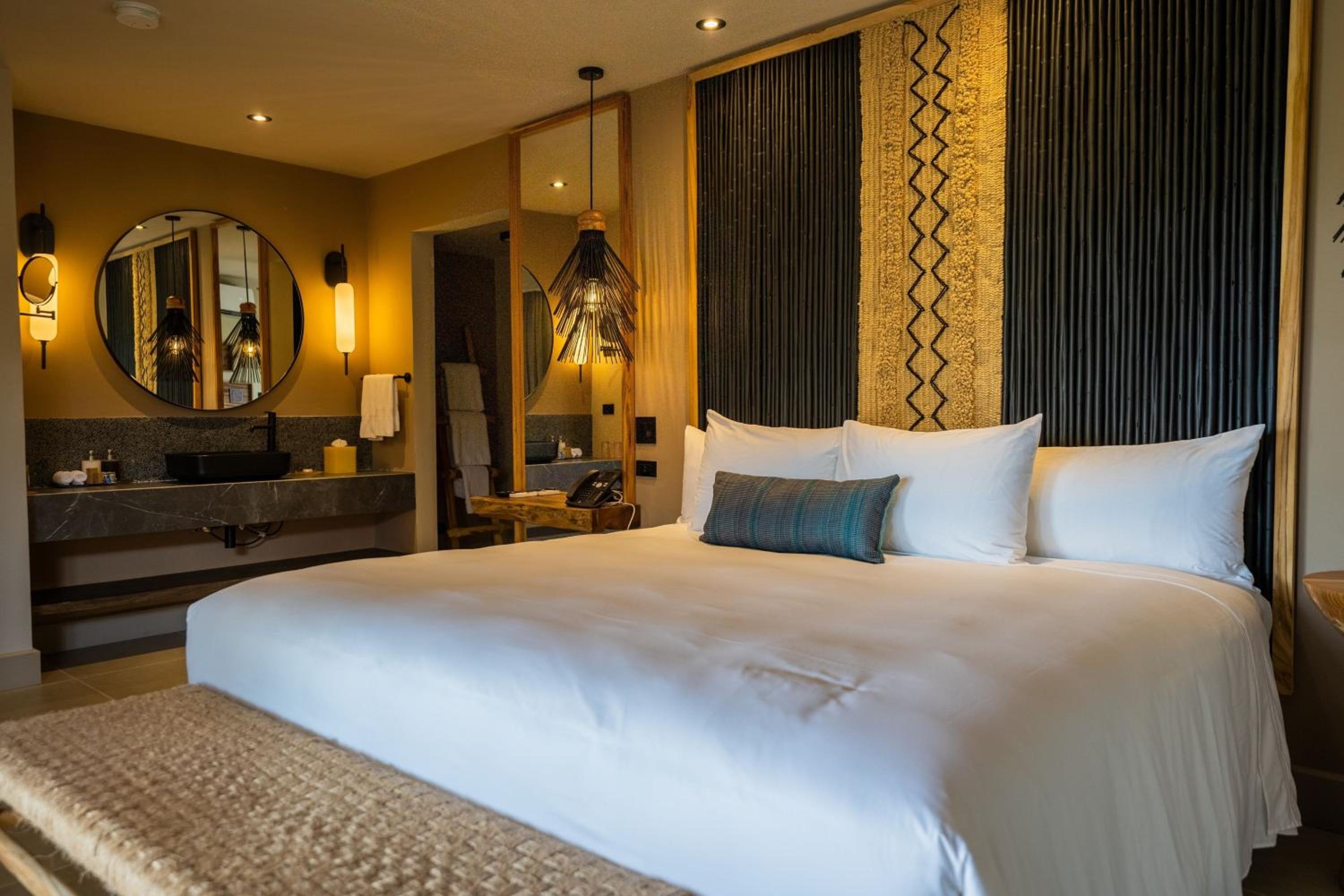 Hotel Punta Islita Autograph Collection offers elegantly decorated rooms and suites with modern amenities including satellite/cable TV, minibar, and coffee maker. The wooden décor and tiled floors create a warm and inviting atmosphere for guests to relax and unwind.