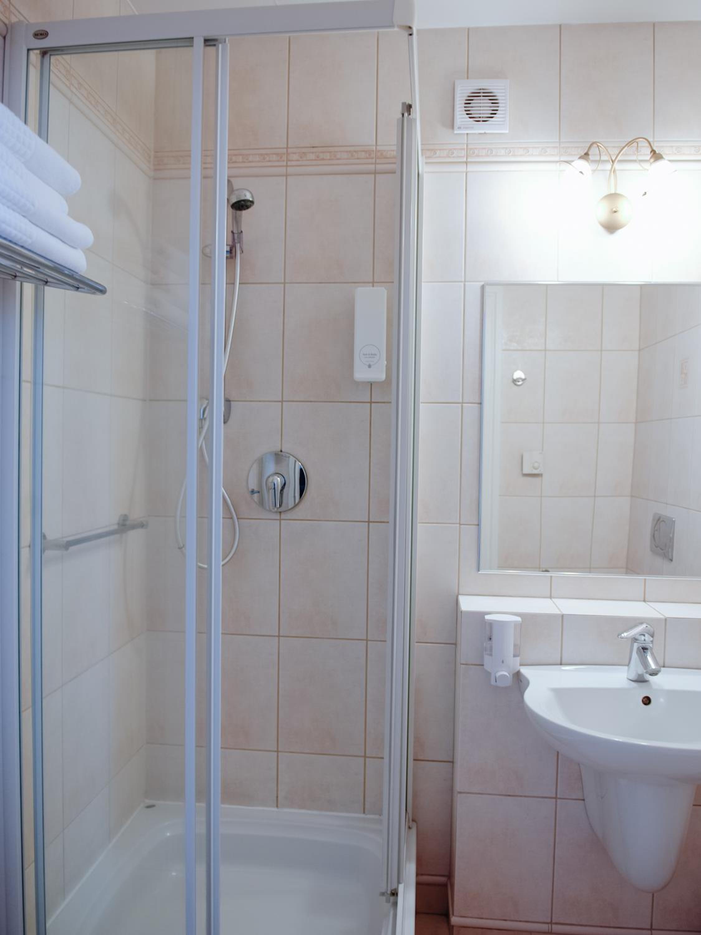 czysto i duża łazienka, a do tego bardzo uprzejmy personel.