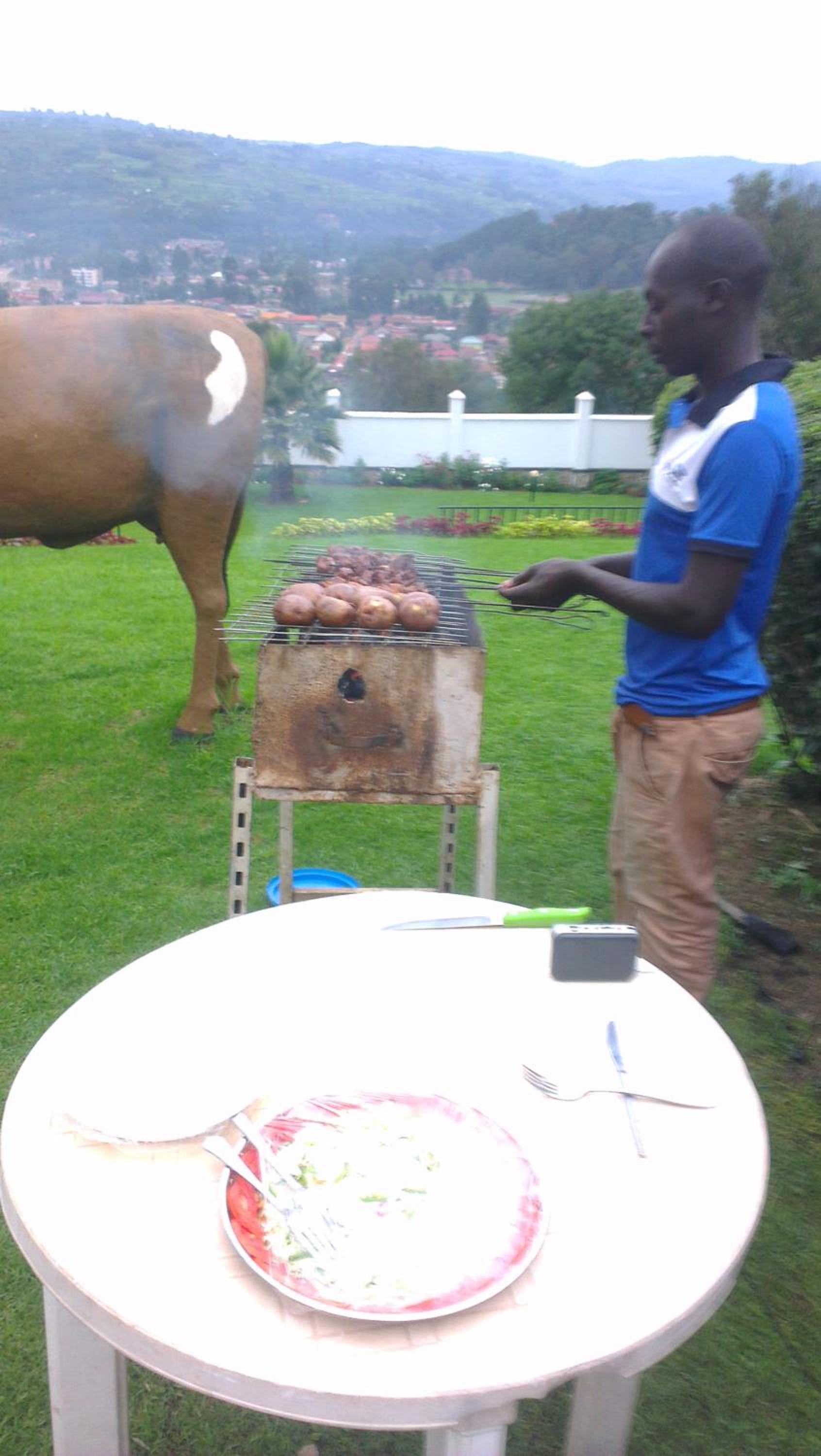The Kigezi Garden Inn is situated on a hill, overlooking the town of Kabale, surrounded by tea fields. The view and gardens within the grounds are beautiful and well worth staying the night. The staff are friendly and helpful. Breakfast and dinner was simple but delicious. Town is a short walk down the hill, or you can hail a motorbike.