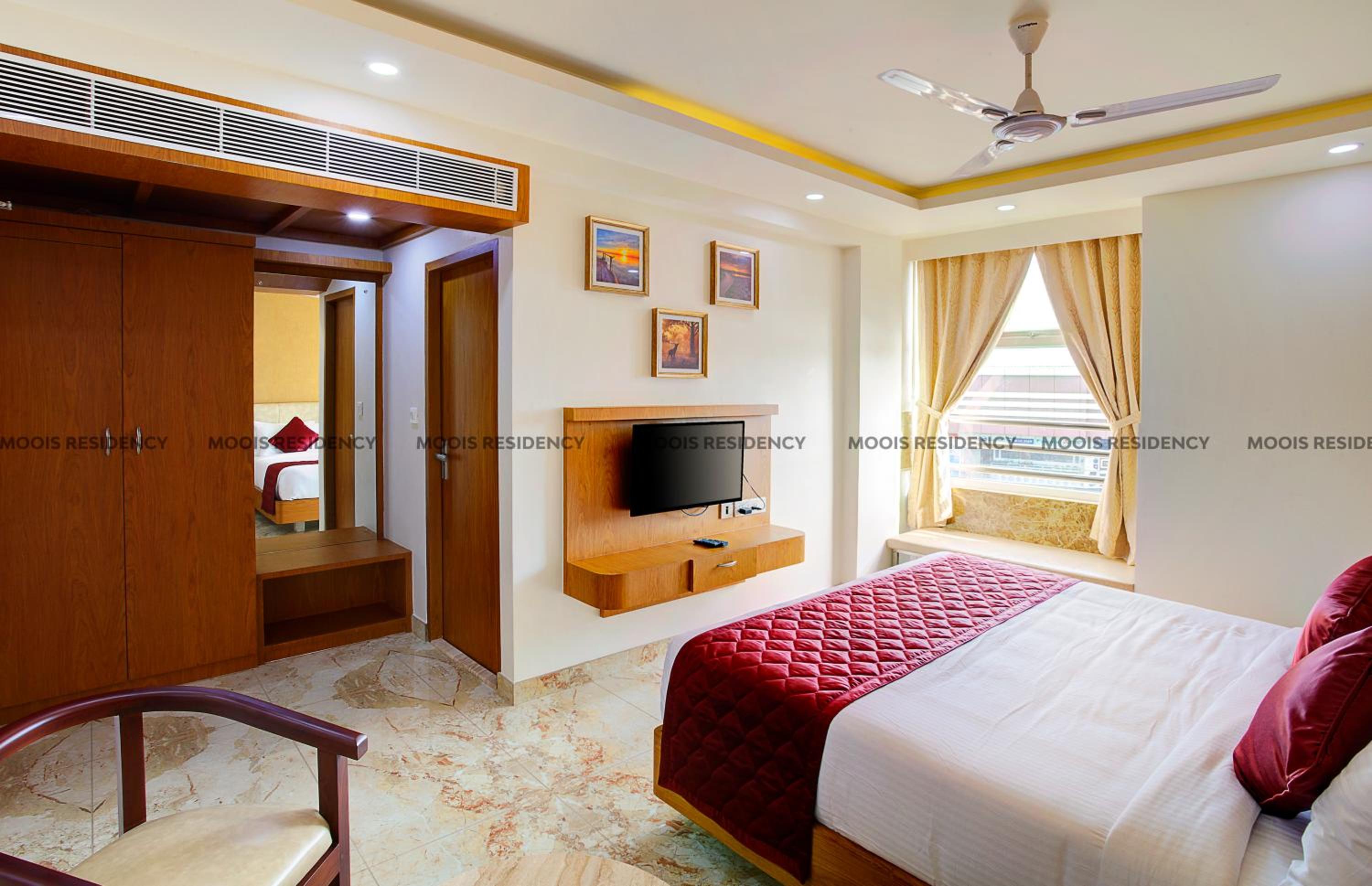 Located just 2.9 km from Payyambalam Beach, Moois Residency in Kannur offers free WiFi and parking. Comfortable Rooms with Essential Amenities Each room features a flat-screen TV, air conditioning, and a private bathroom. Convenient Services for Guests Enjoy room service and a 24-hour front desk. Book your stay at Moois Residency for a memorable experience in Kannur.