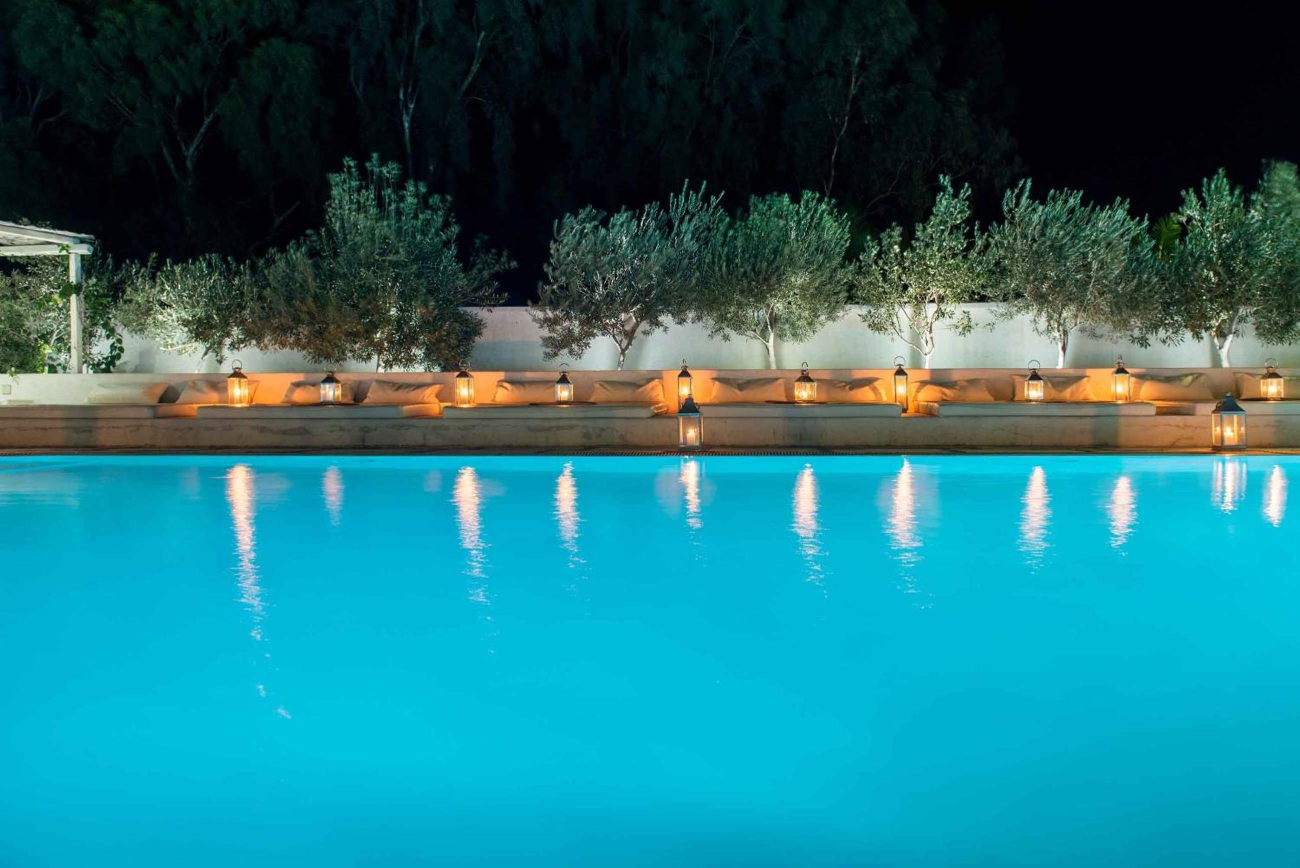 Guests can unwind at the hotel's swimming pool area featuring built sun beds, large cushions, and a poolside cocktail bar. For added relaxation, a hot tub is also available.