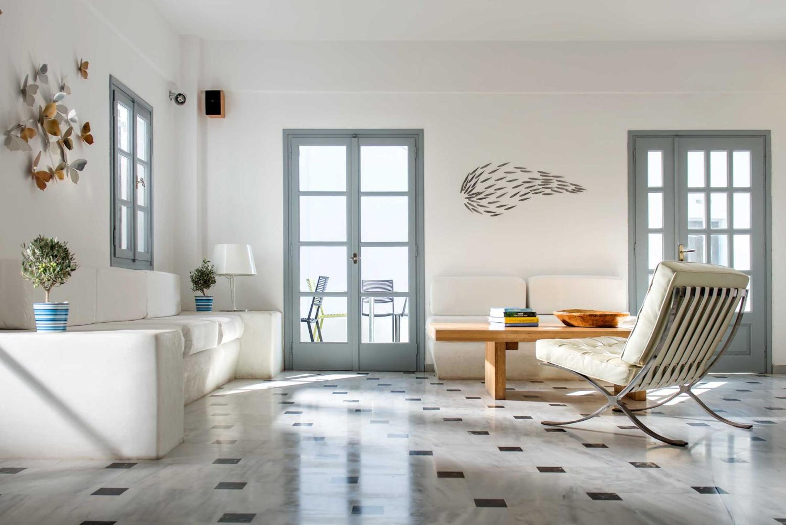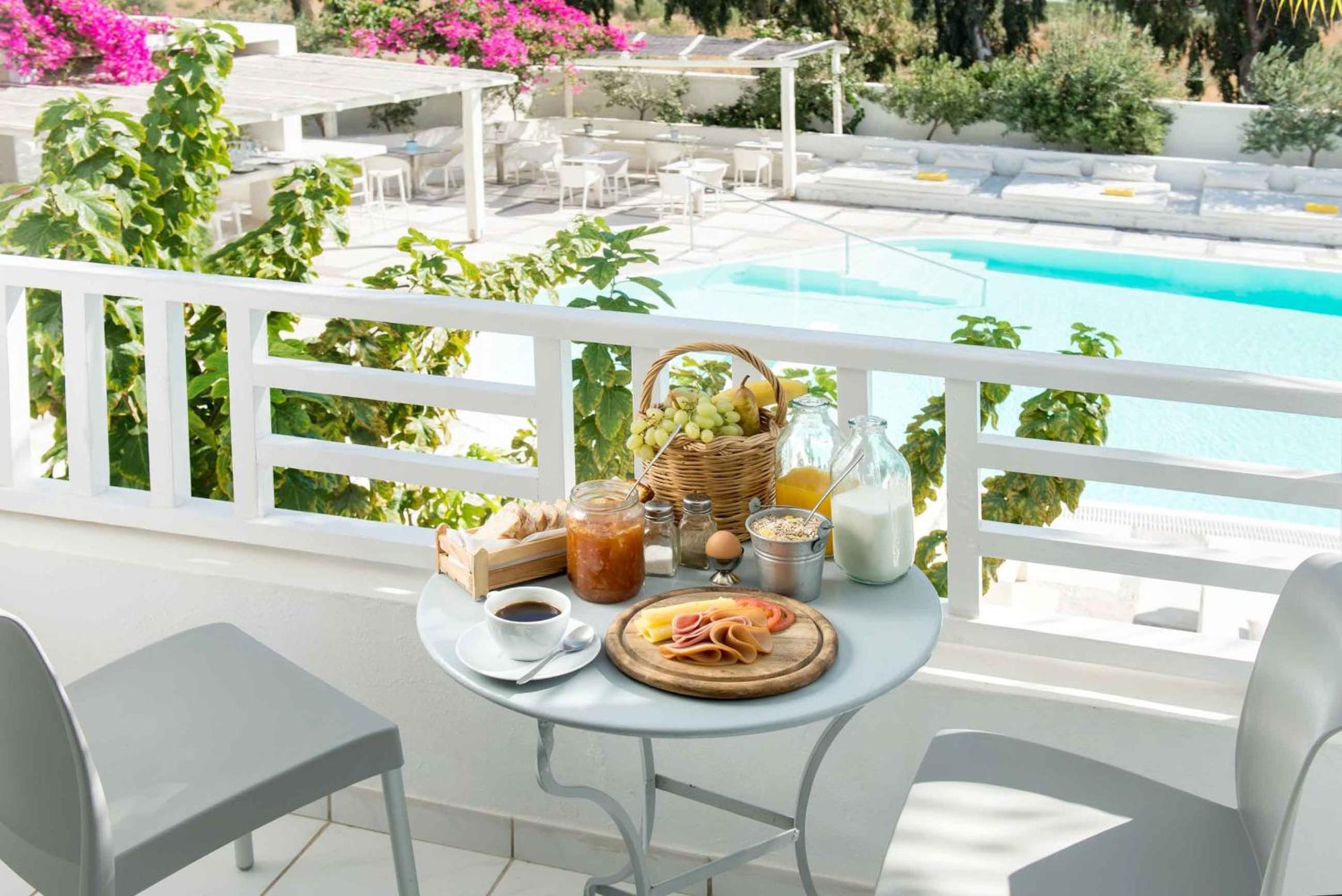 The boutique Hotel 28 in Kamari offers stylish en suite rooms equipped with 21’’ flat screen TVs and i-Pod speakers, ensuring a comfortable stay for guests.