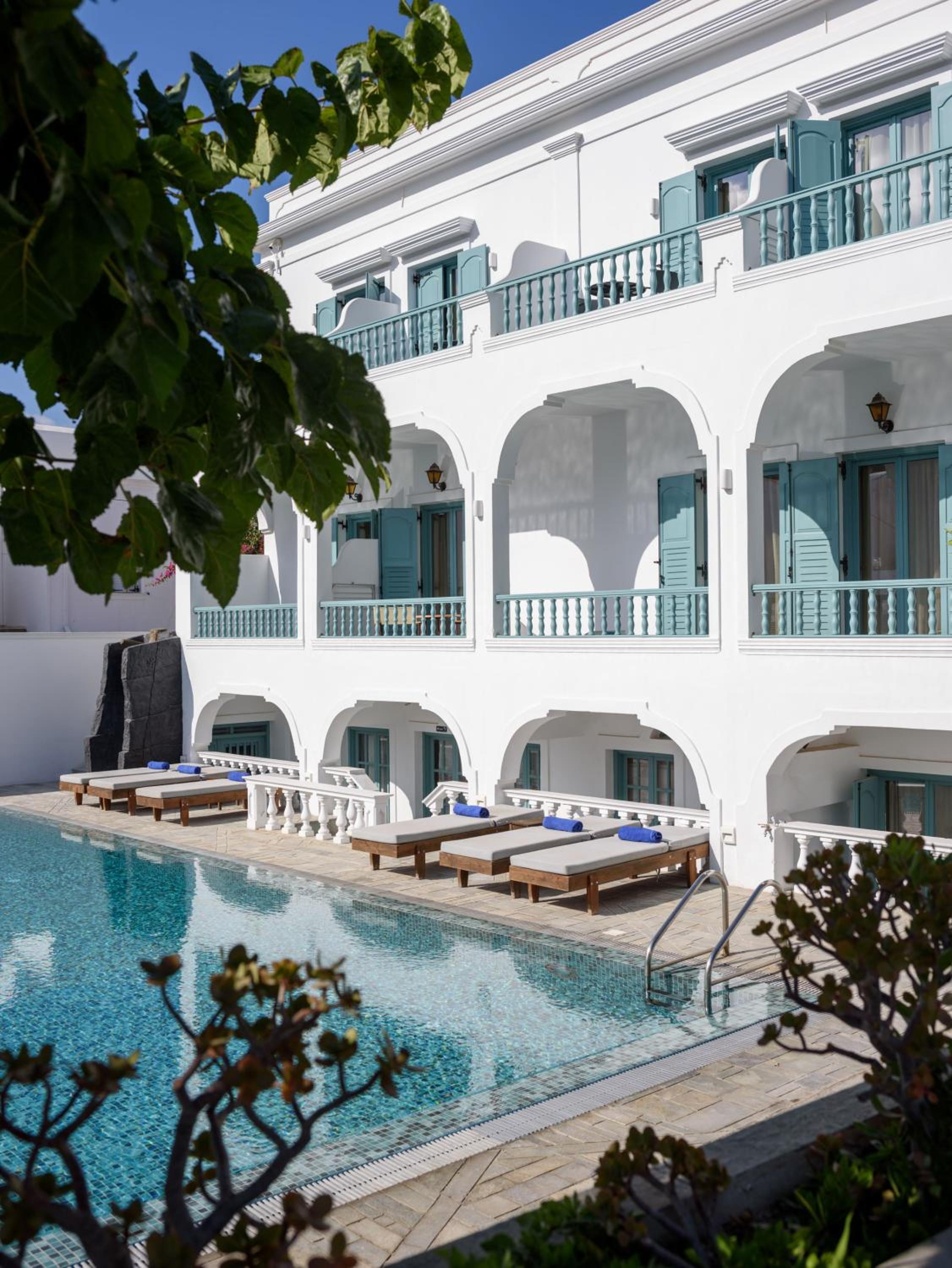 Excellent hotel. Extremely helpful staff, friendly, desk staffed most hours, made all arrangements for transports to port, scooter & car rental, any other arrangements we wanted help with. Lovely hotel, nice pool, good breakfasts in lovely porch area. Centrally located in Kamari, close walking to restaurants, shops, markets. Best hotel experience of our entire trip!