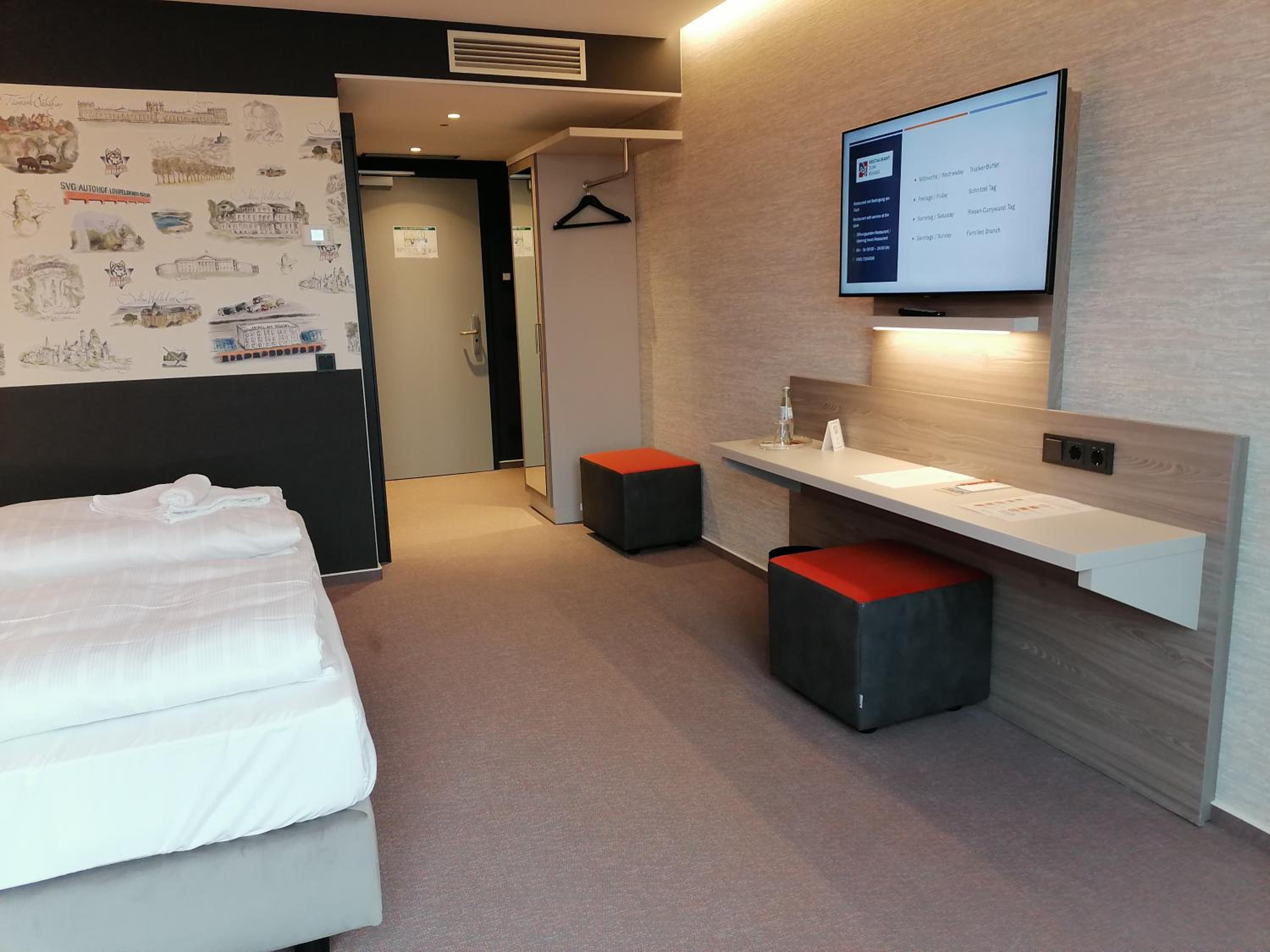 Die Lage direkt an der Autobahn ist perfekt für die Durchreise. Die Zimmer sind sehr groß und die Fenster erstaunlich schalldicht.