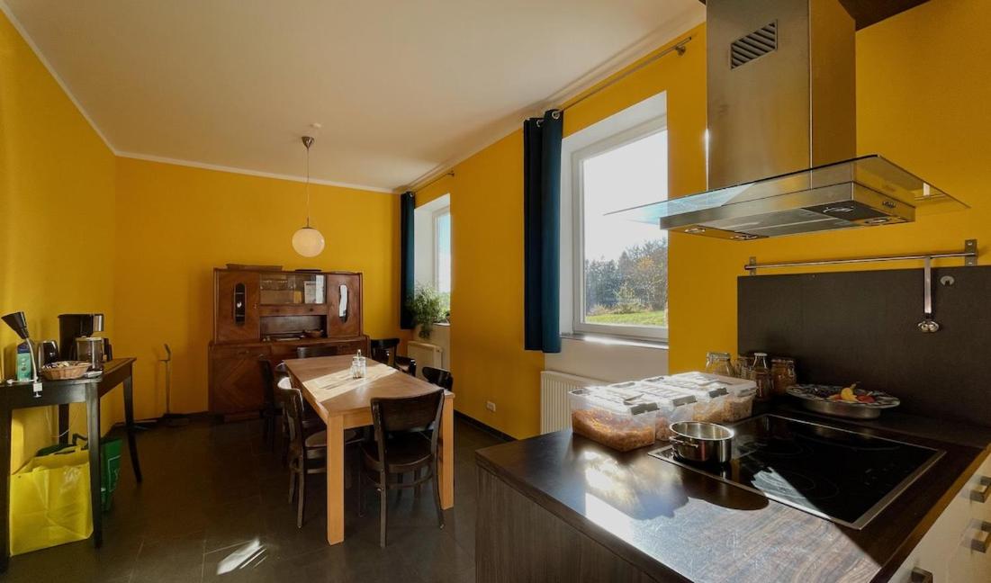 The friendly atmosphere , the fresh and rich breakfast and the fact that it is situated on the Eifelsteig . If you want you van use their kitchen to make your own food.