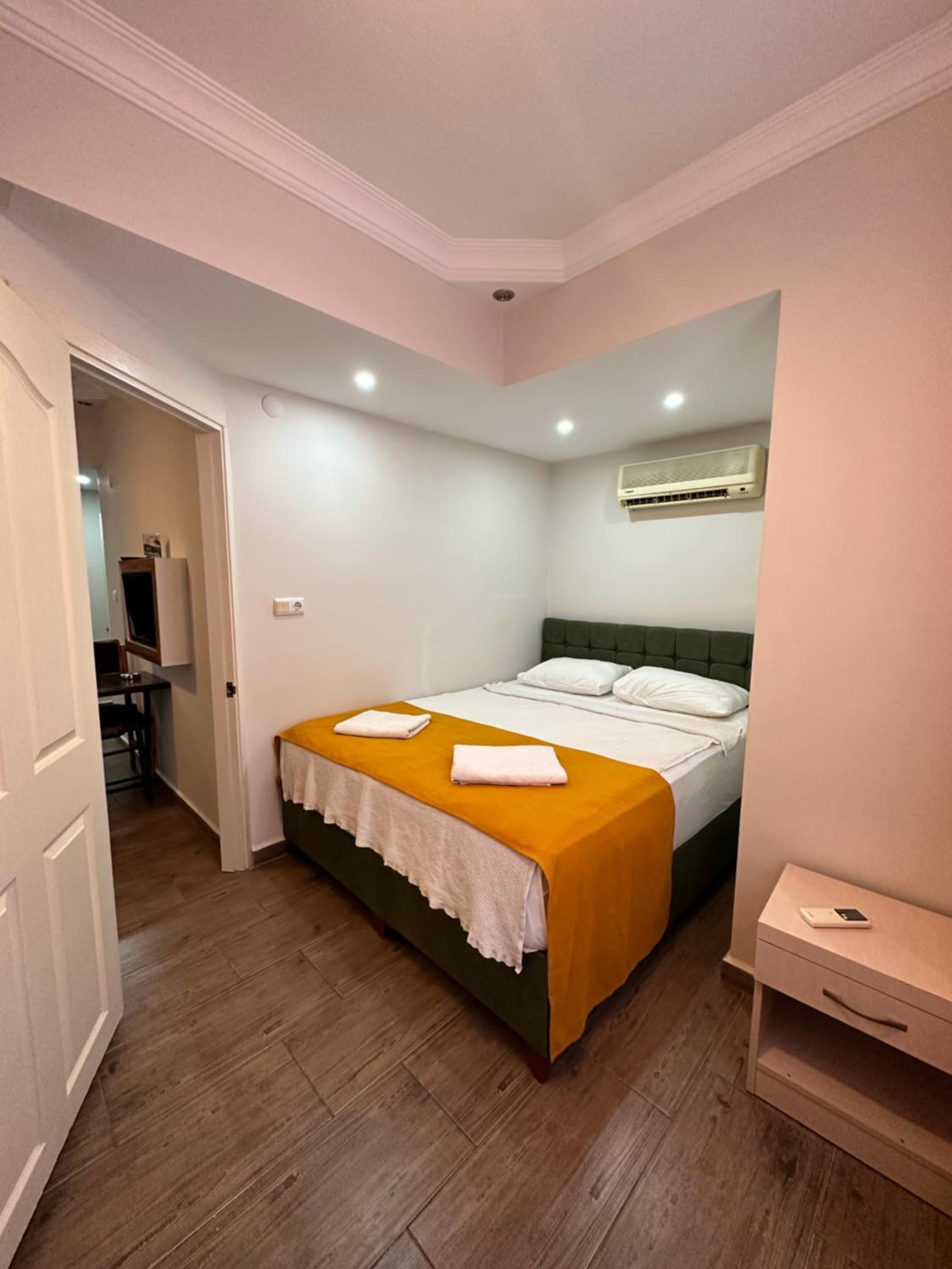 Alanya Queen Apart Otel offers elegant rooms equipped with modern amenities like air conditioning, flat-screen TV, and kitchenette. Some rooms even boast stunning city views and a private balcony for a truly upscale experience.