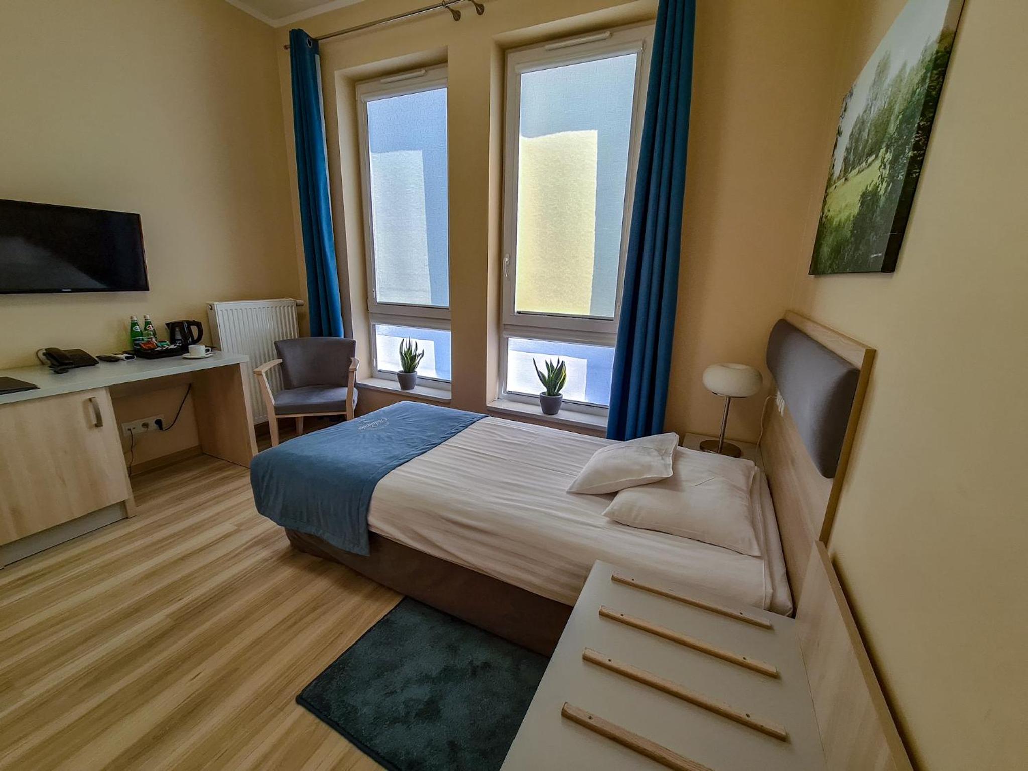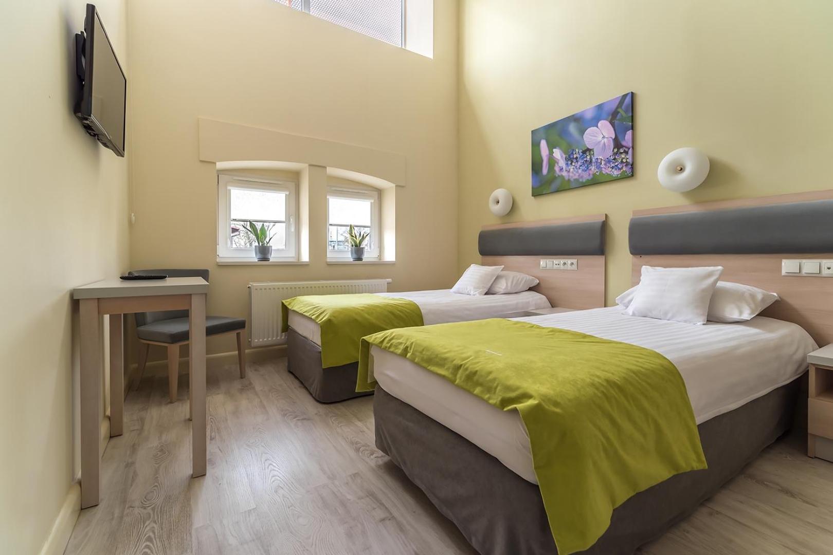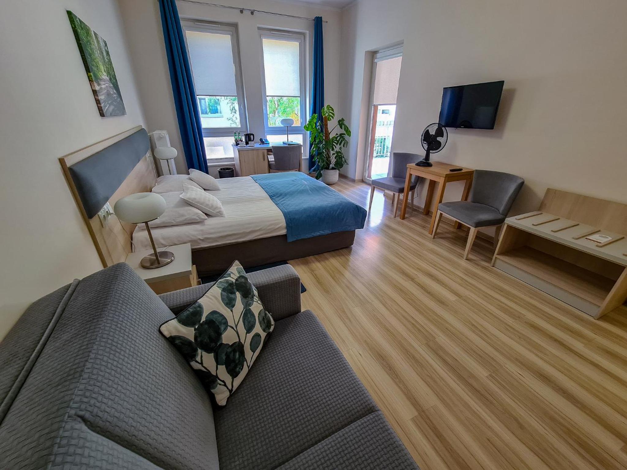Antonińska Hotel & Apartamenty in Leszno offers elegantly designed rooms with modern amenities, including private bathrooms and balconies in some rooms.