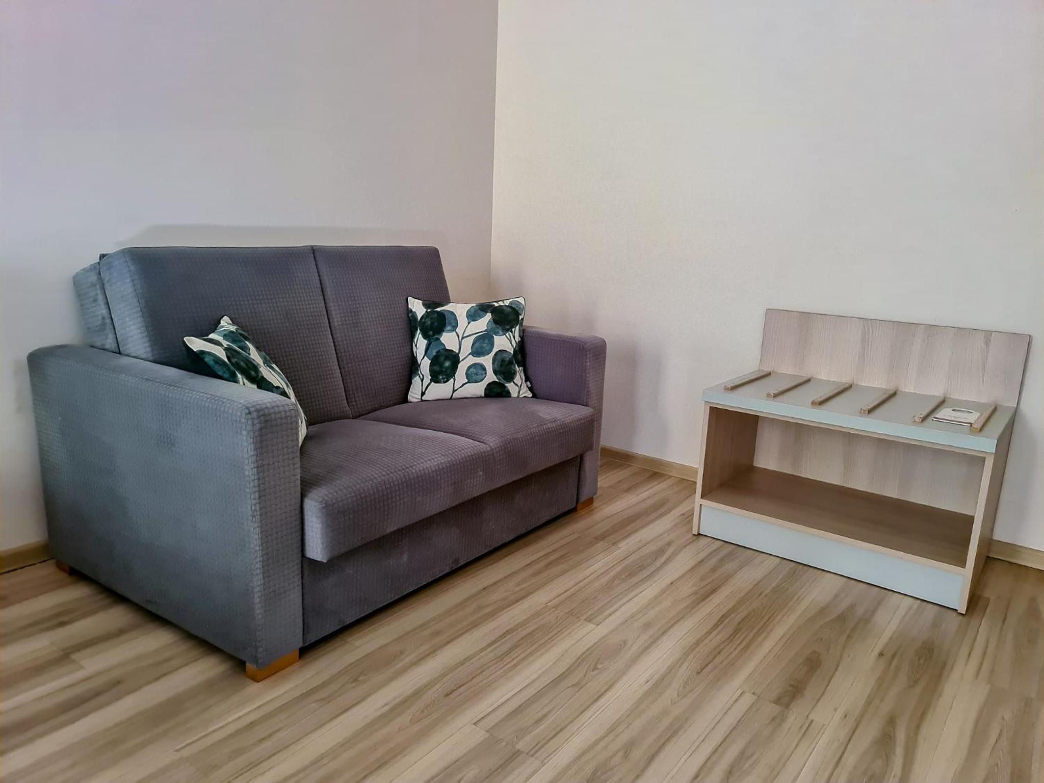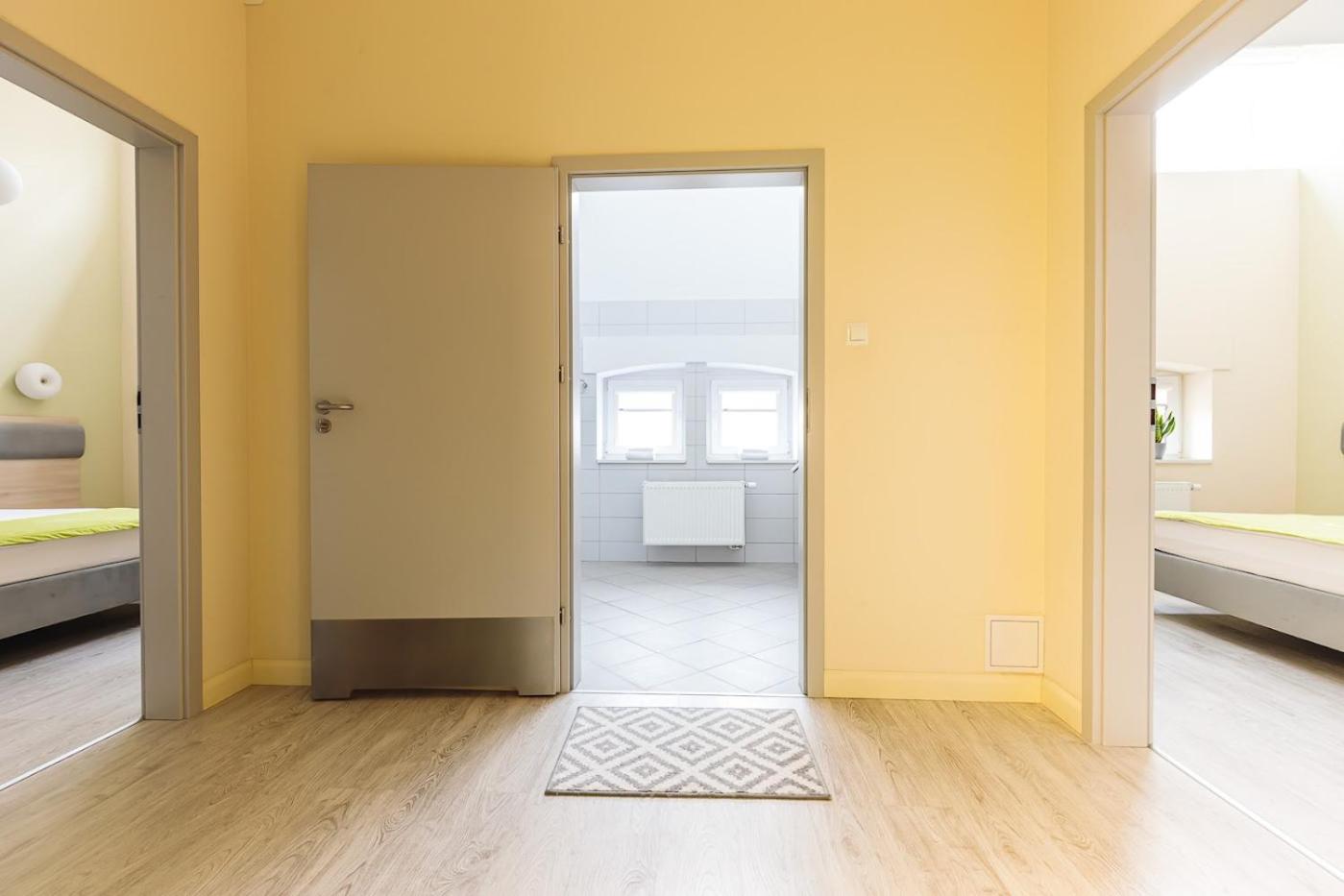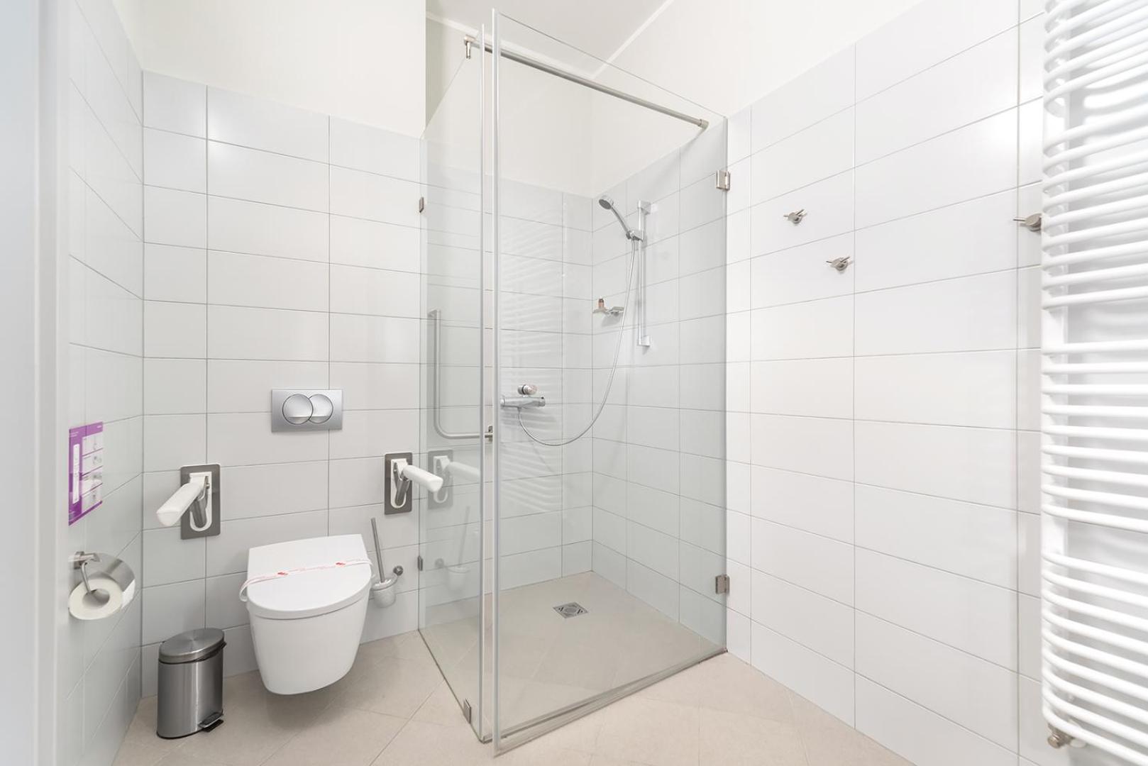 Det blev til et apparemment med 2 separate soveværelser, kæmpe badeværelse og gang. Alt forberedet til at have handicappede gæster.