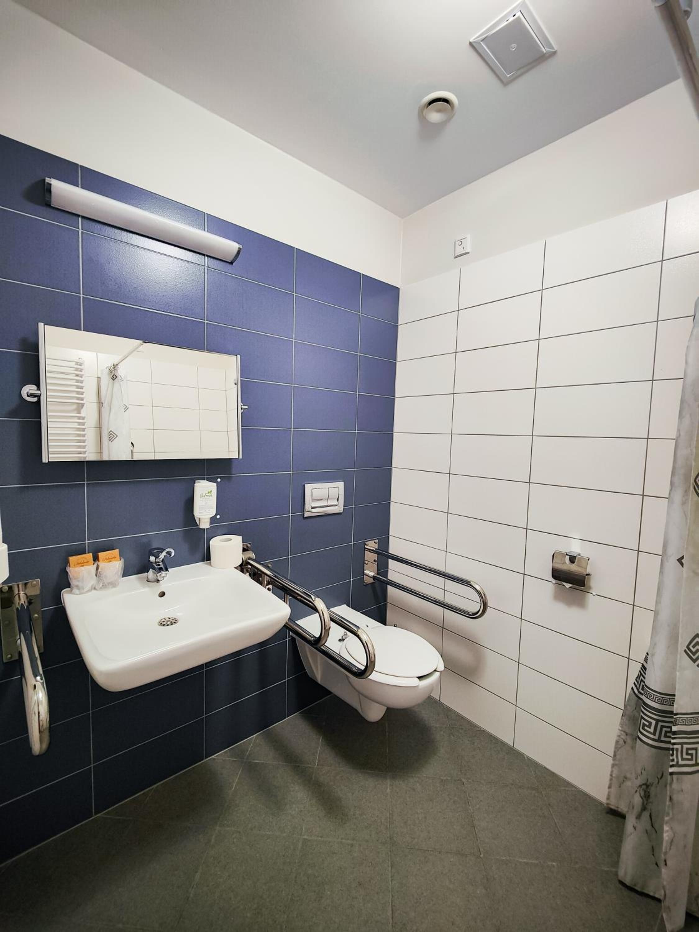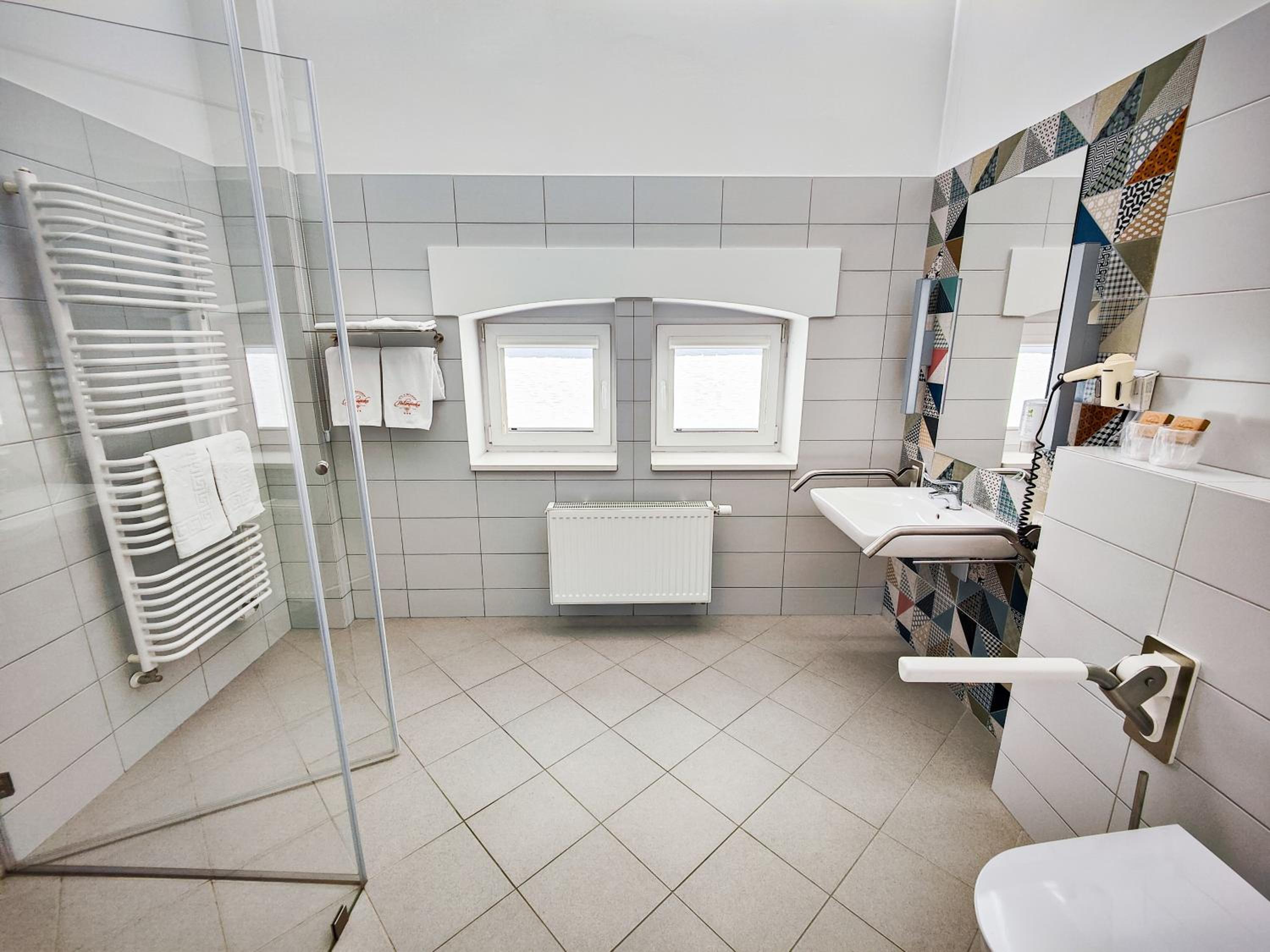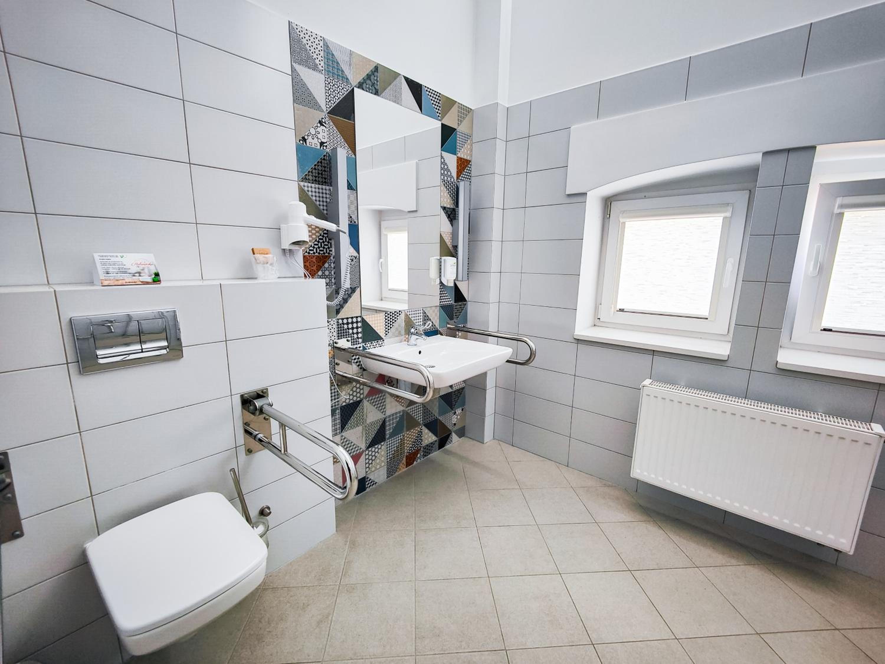 Dla mnie uczestnika zawodów jeździeckich, lakalizacja była najdogodniejsza. Przyjmują także zwierzęta. Łazienka duża i funkcjonalna. Śniadania są bardzo urozmaicone, świeżutkie i smaczne. W jadalni czyściutko a personel natychmiast reaguje na zmiany.