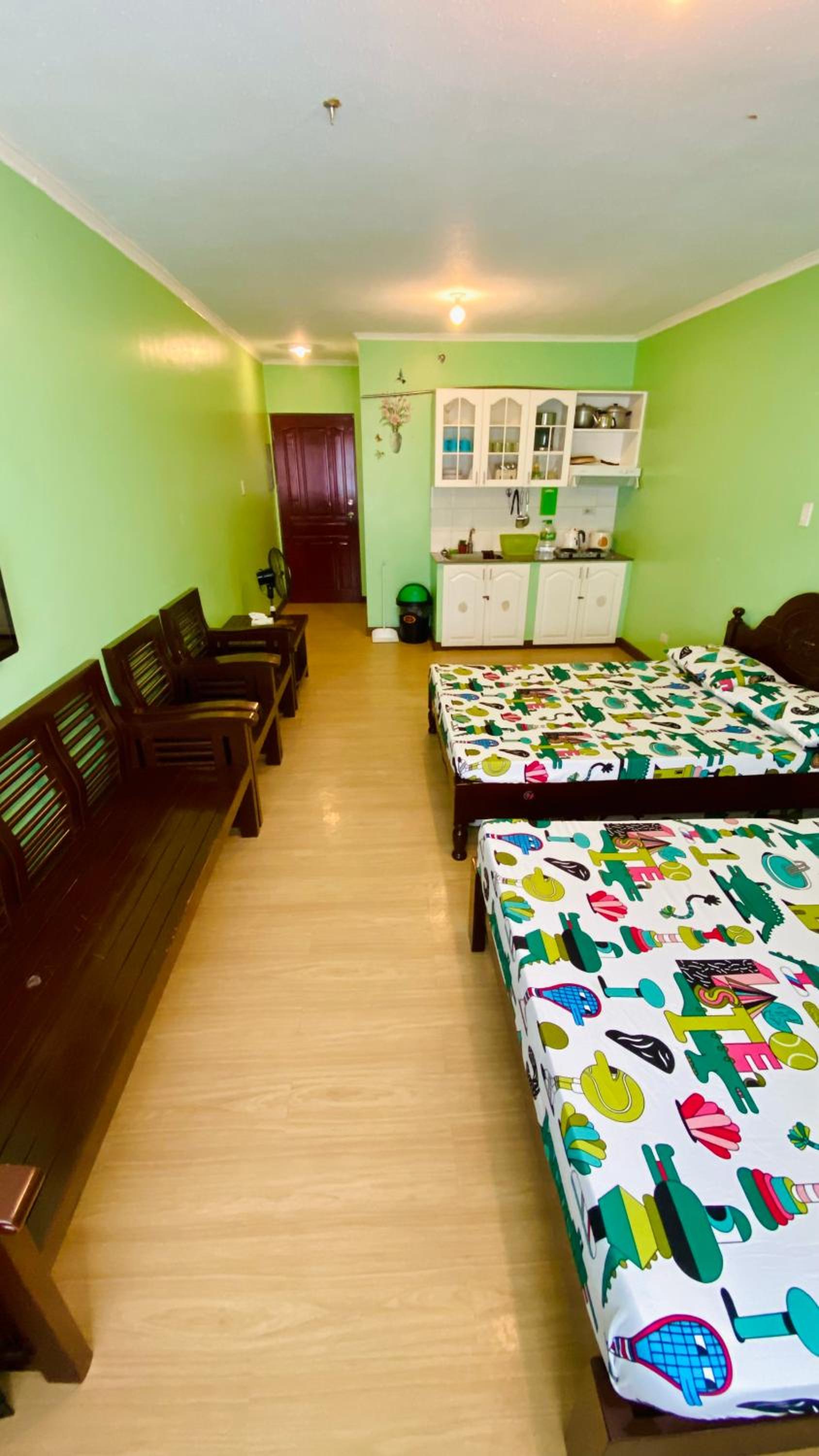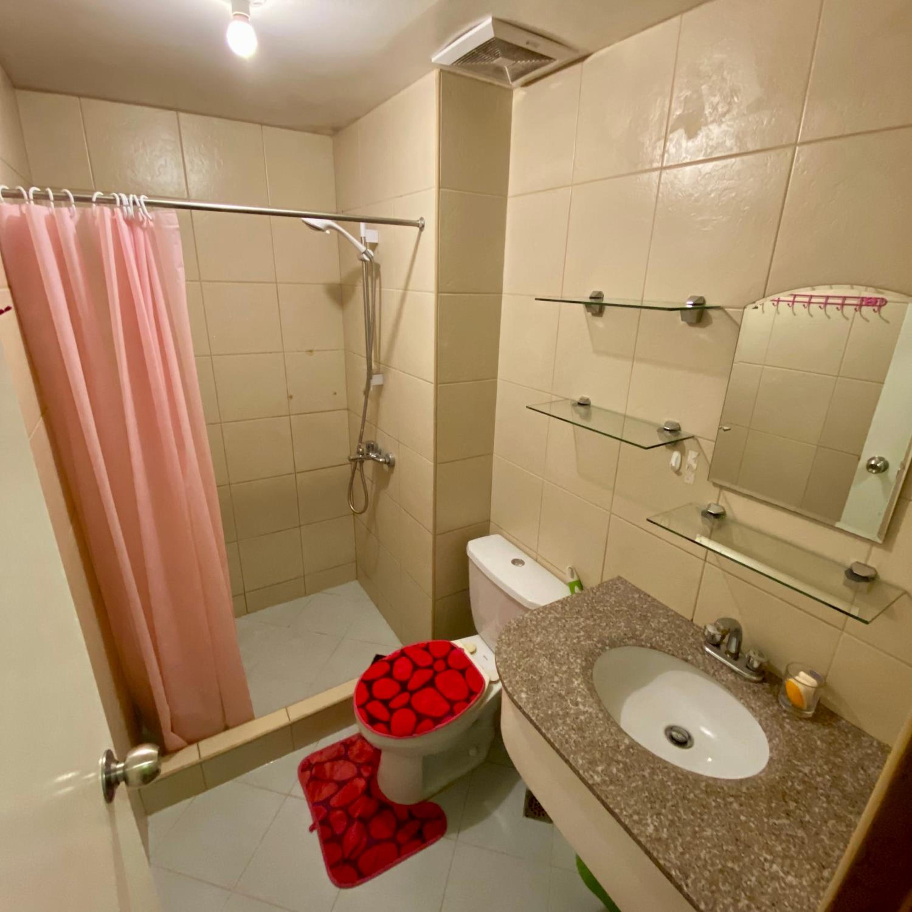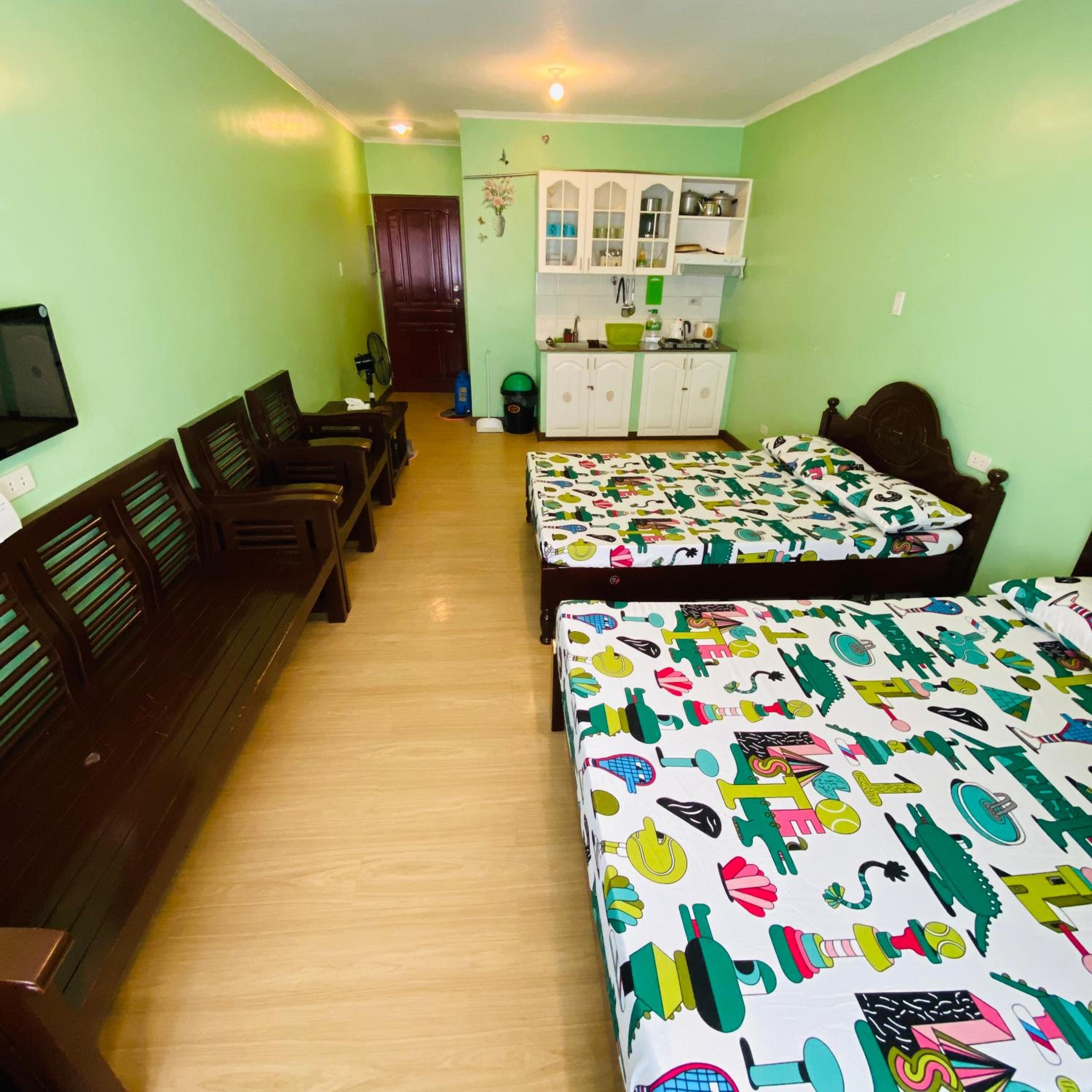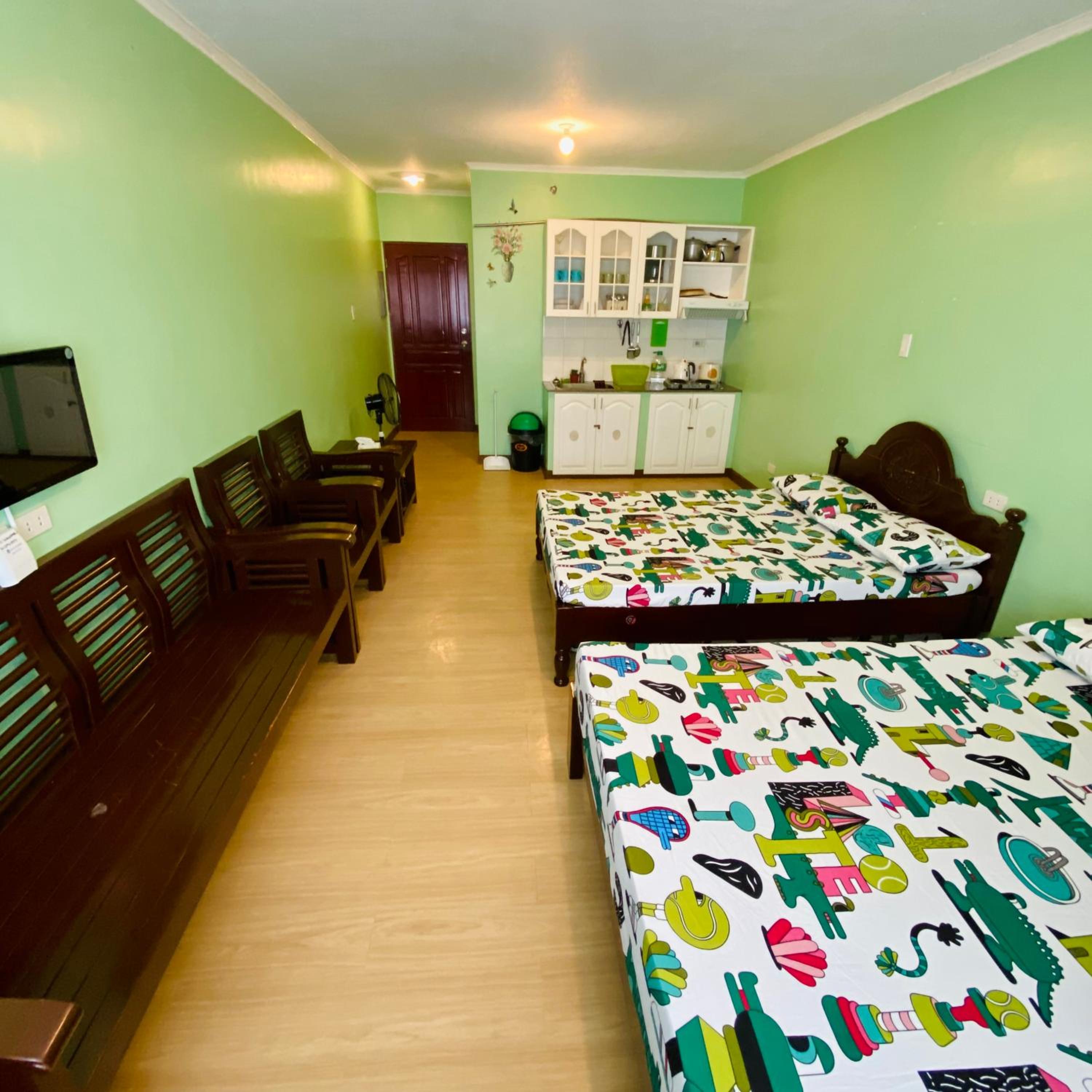 No shower curtain. Thats why when you take a bath water will spill at the floor. No bathroom tissue, just a 1 medium pack of normal tissue. Handsoap was almost empty. Kitchen utensils, rice cooker, electric stove are too old and looks dirty, you can easily notice that it was already use for (a long time?). A jag of water (the blue one from water refilling station) was given and it should be paid for 60pesos. I dont know but it tastes so weird that even my other siblings noticed it. After 2 days (check out day), i had diarrhea and vomiting. We still planned to roam around before checking out but i couldnt since i am having diarrhea.