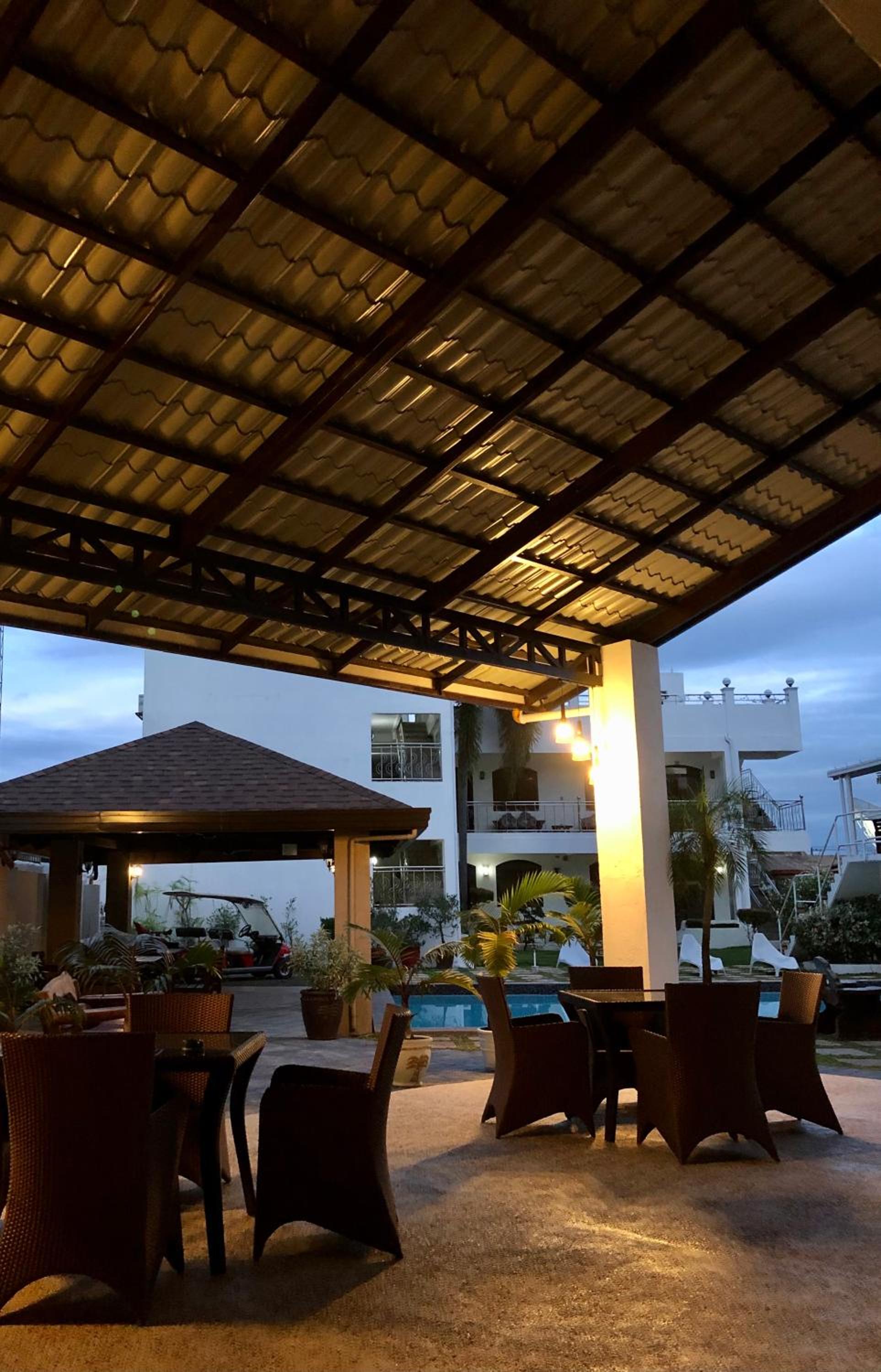 The entire facility was totally unexpectedly nice compared to the steers outside. Location is in Balibago where there's a lot of food options and a shopping mall to go around to. Food was great, portions not so much. There's a pool in the middle of the complex and you have your own jacuzzi in your room. Air conditioning was alright.