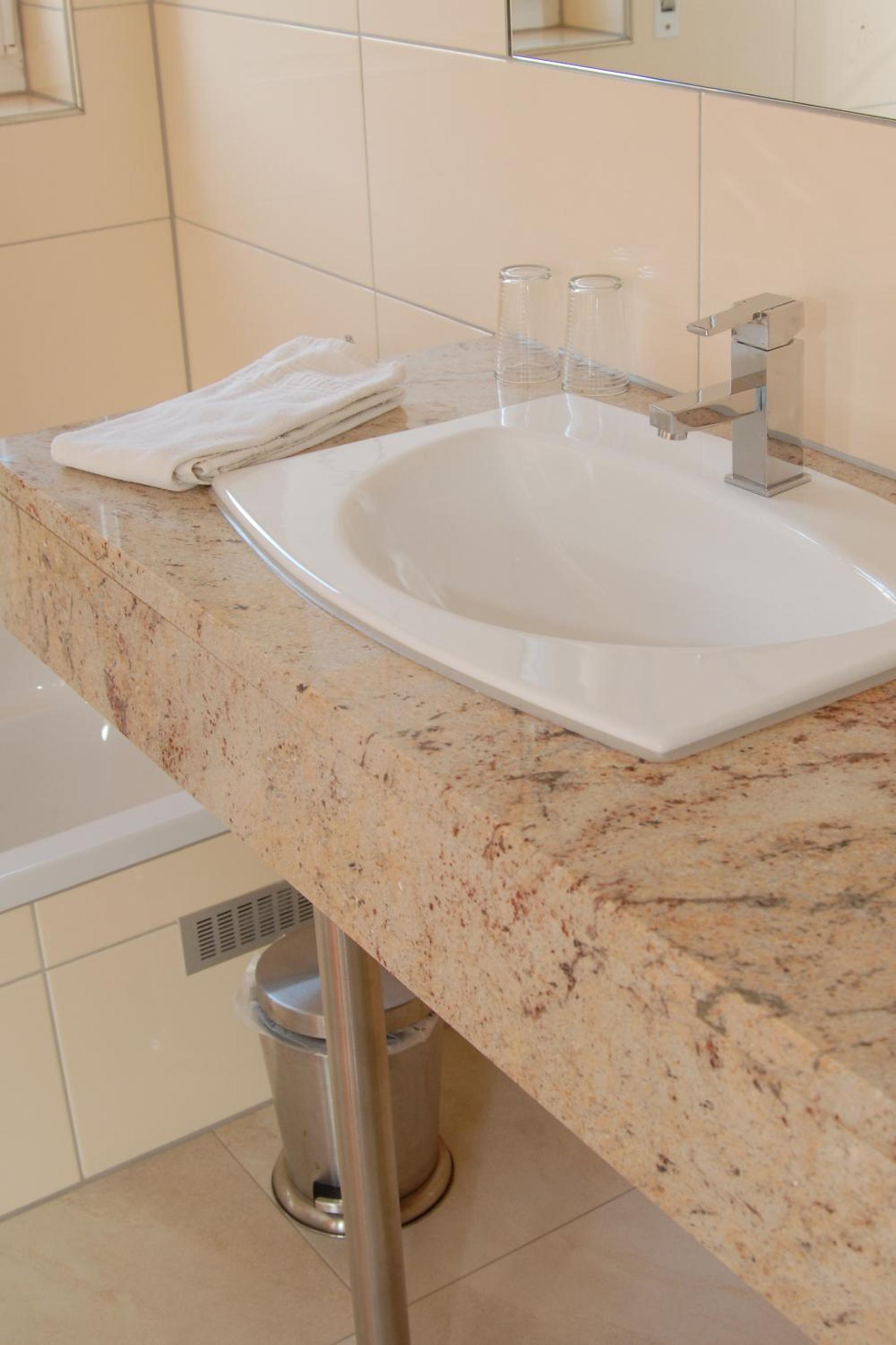 Wir waren im Gästehaus auf der gegenüber liegenden Straßenseite in der per Fahrstuhl erreichbaren 2. Etage in einem angenehm geräumigen Zimmer untergebracht. Wir haben dort sehr gut schlafen können. Abendessen und Frühstück waren schmackhaft.