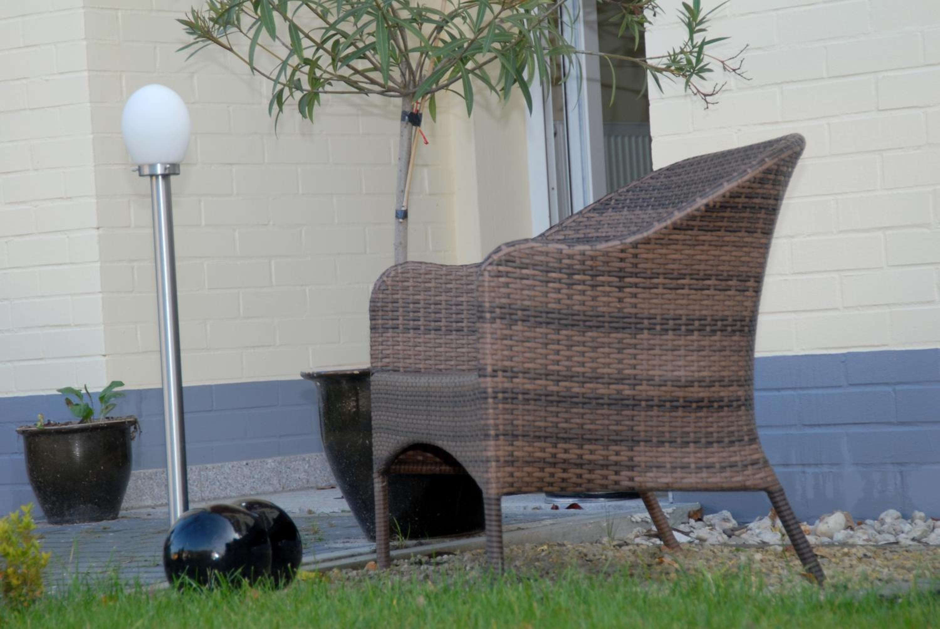 Le petit jardinet, l espace dans la chambre, le buffet petit déjeuner.